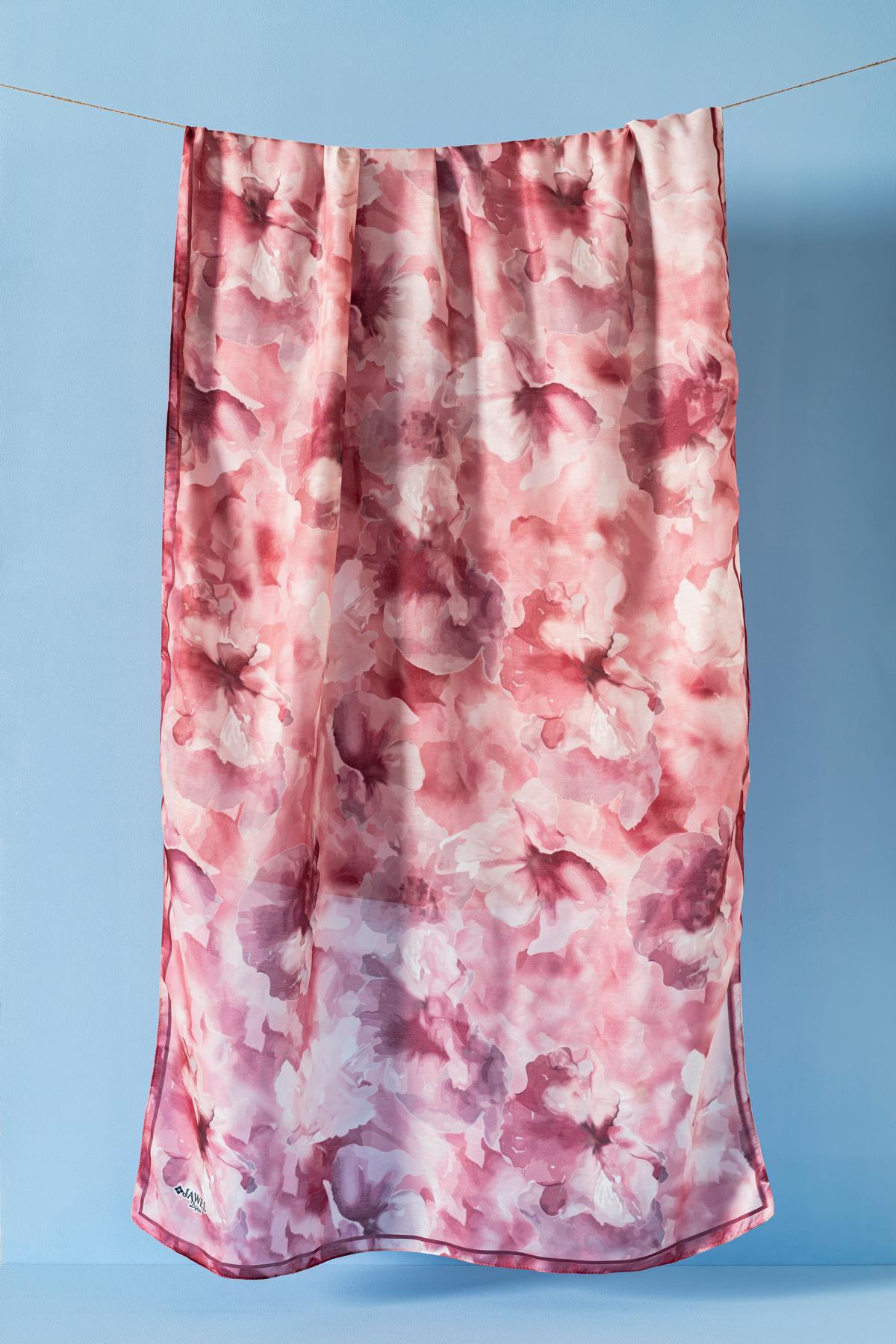 Kadın Desenli Aquarelle Soft Şal KREM BORDO
