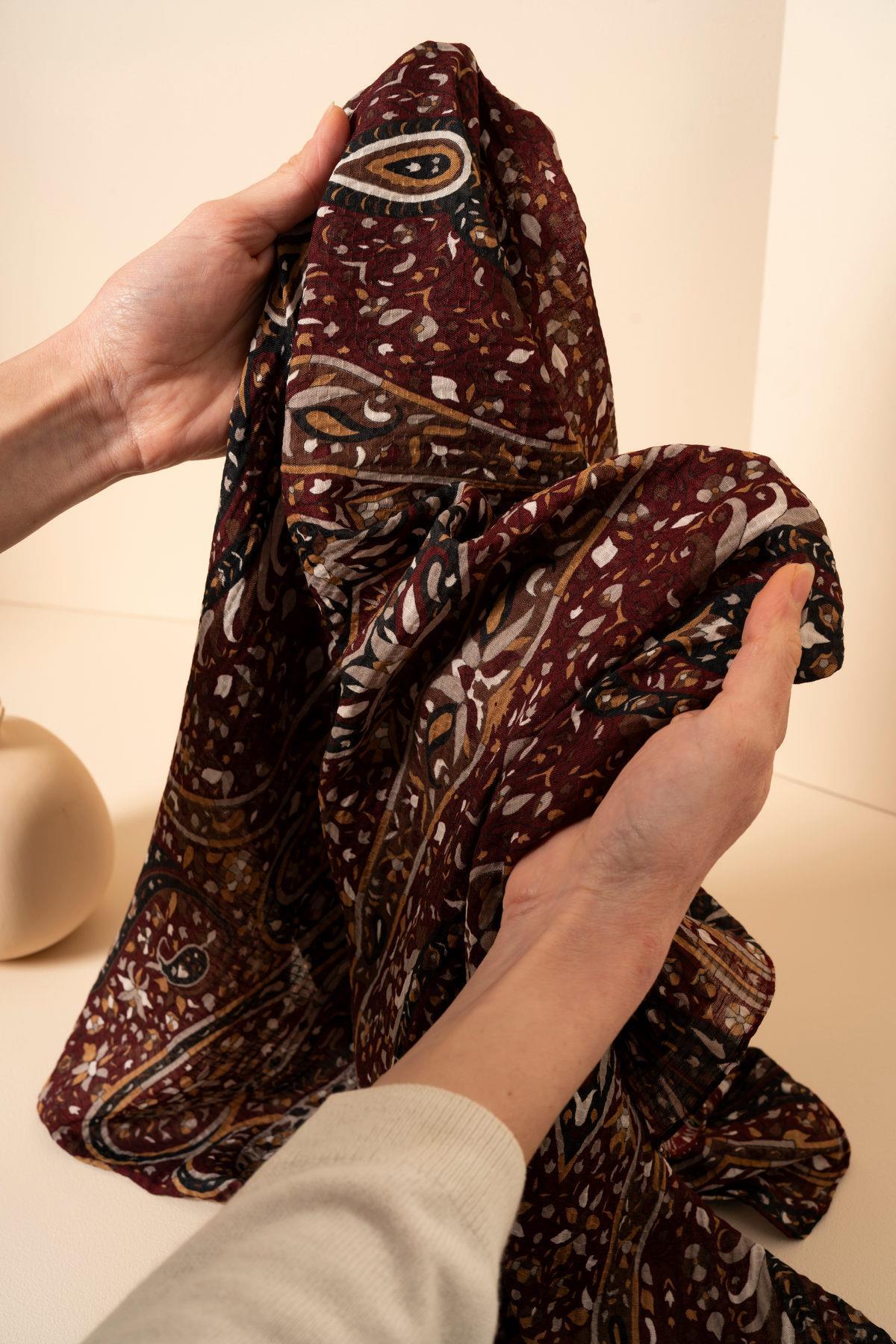 Kadın Etnik Desen Bürümcük Eşarp BORDO