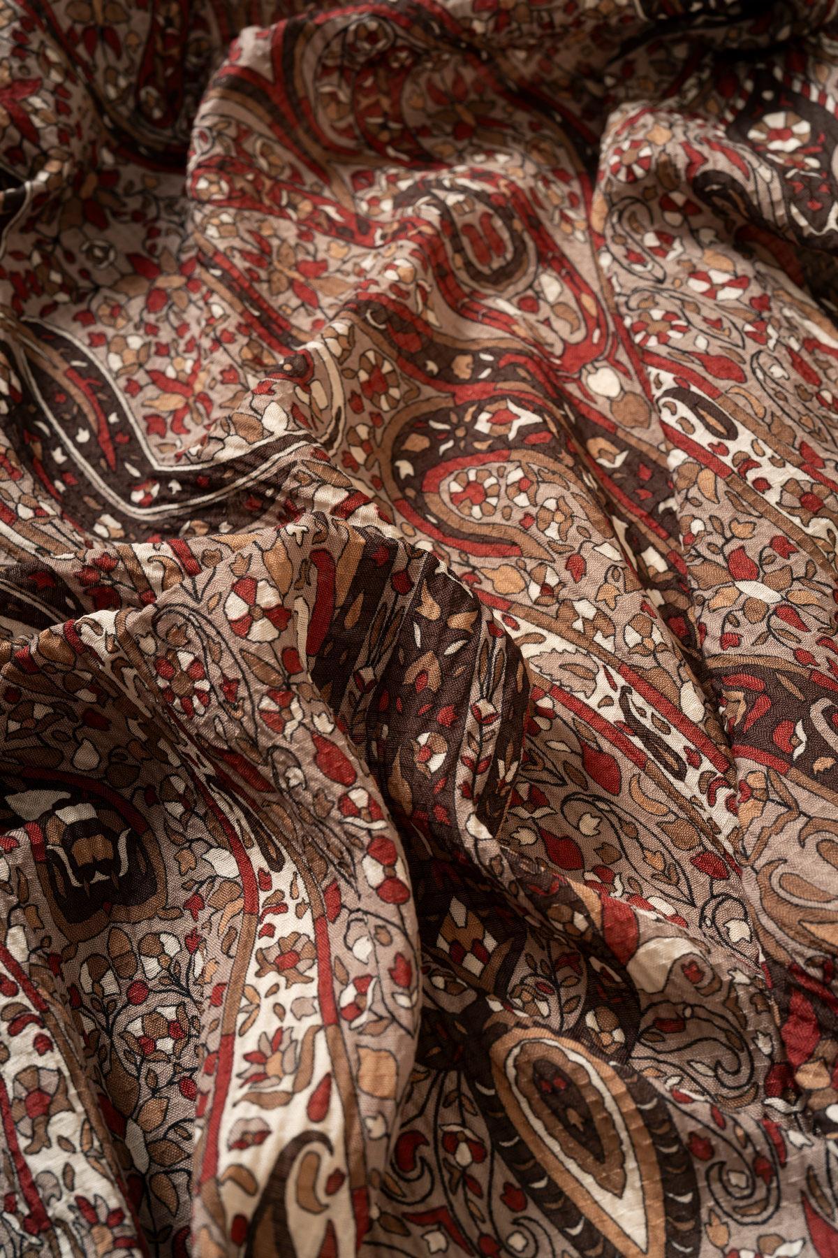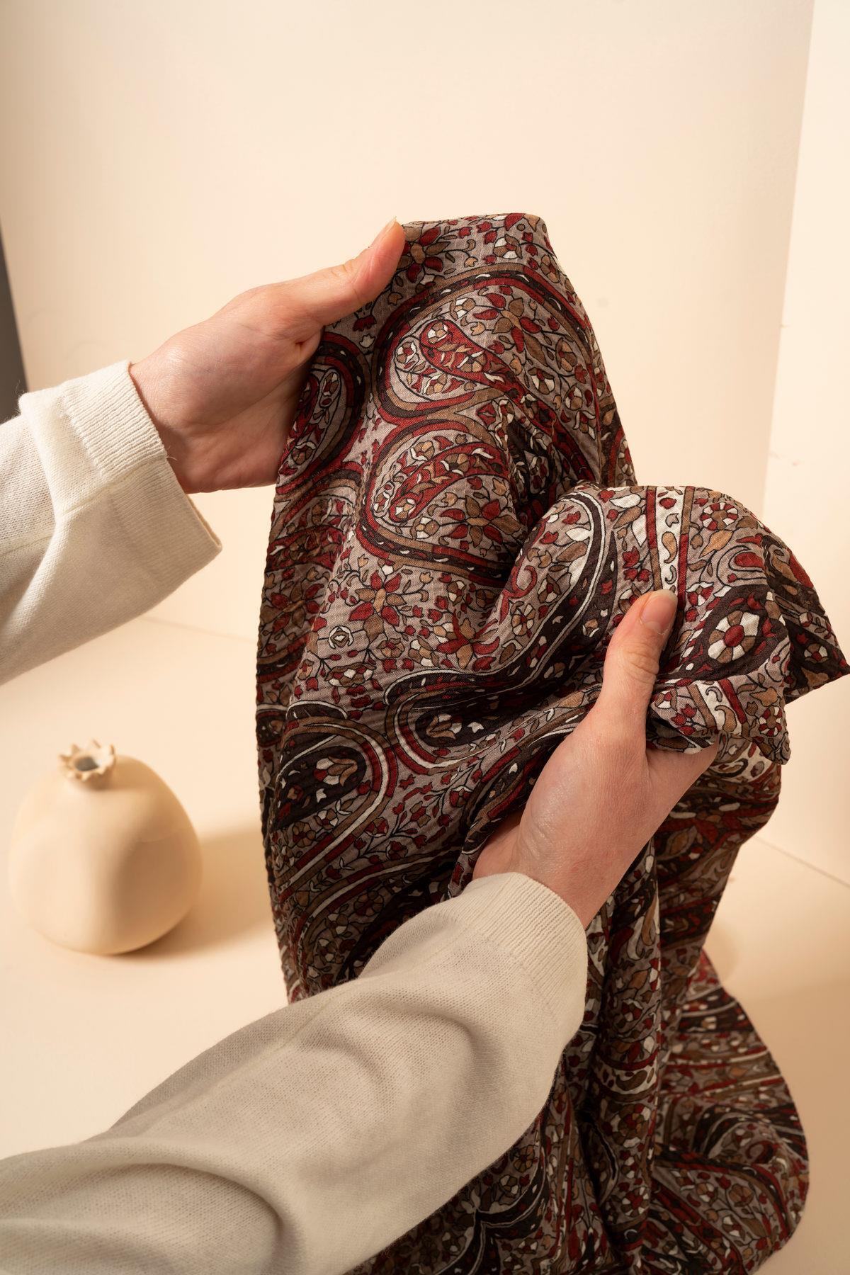 Kadın Etnik Desen Bürümcük Eşarp VİZON
