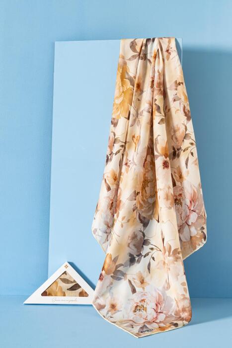 Kadın Çiçek Desenli Ephedra Soft Eşarp KREM BORDO