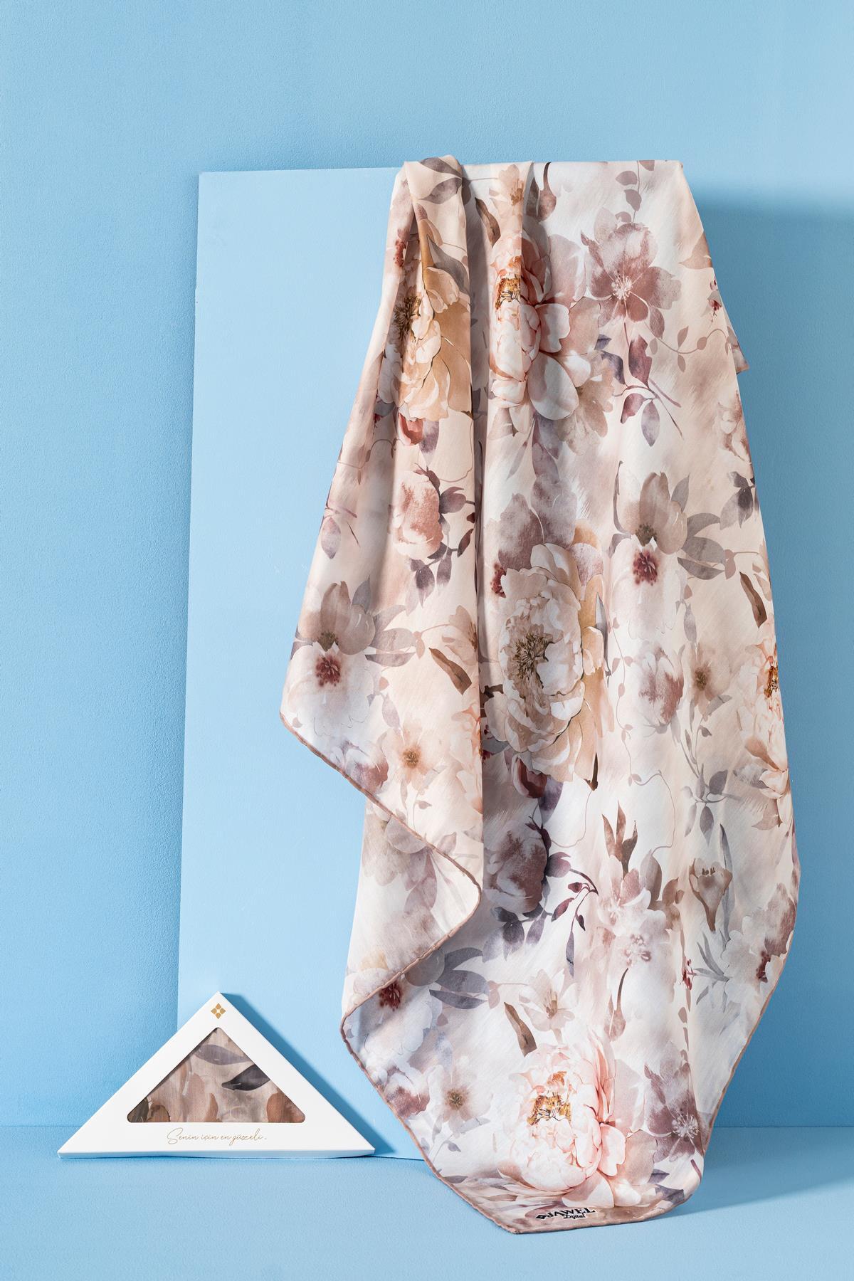 Kadın Çiçek Desenli Ephedra Soft Eşarp KREM BORDO