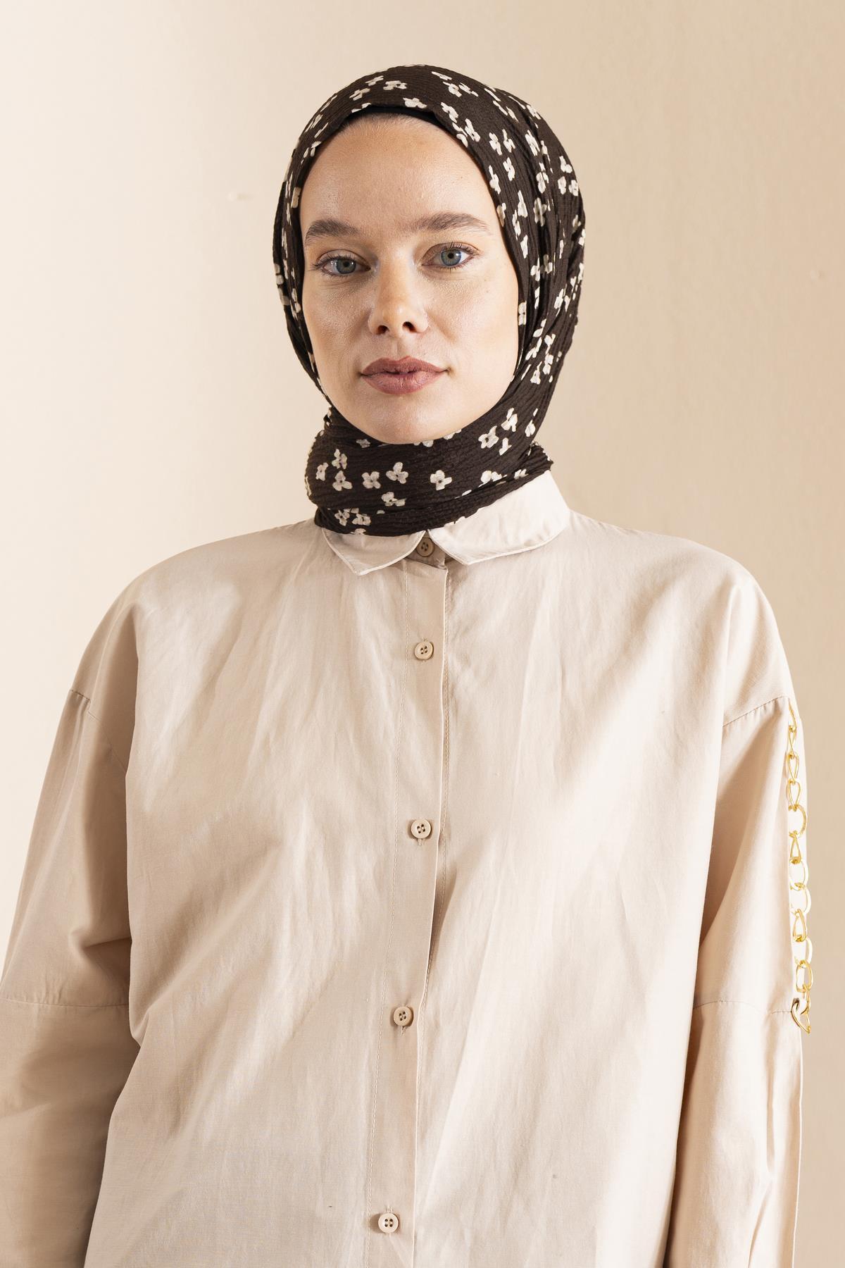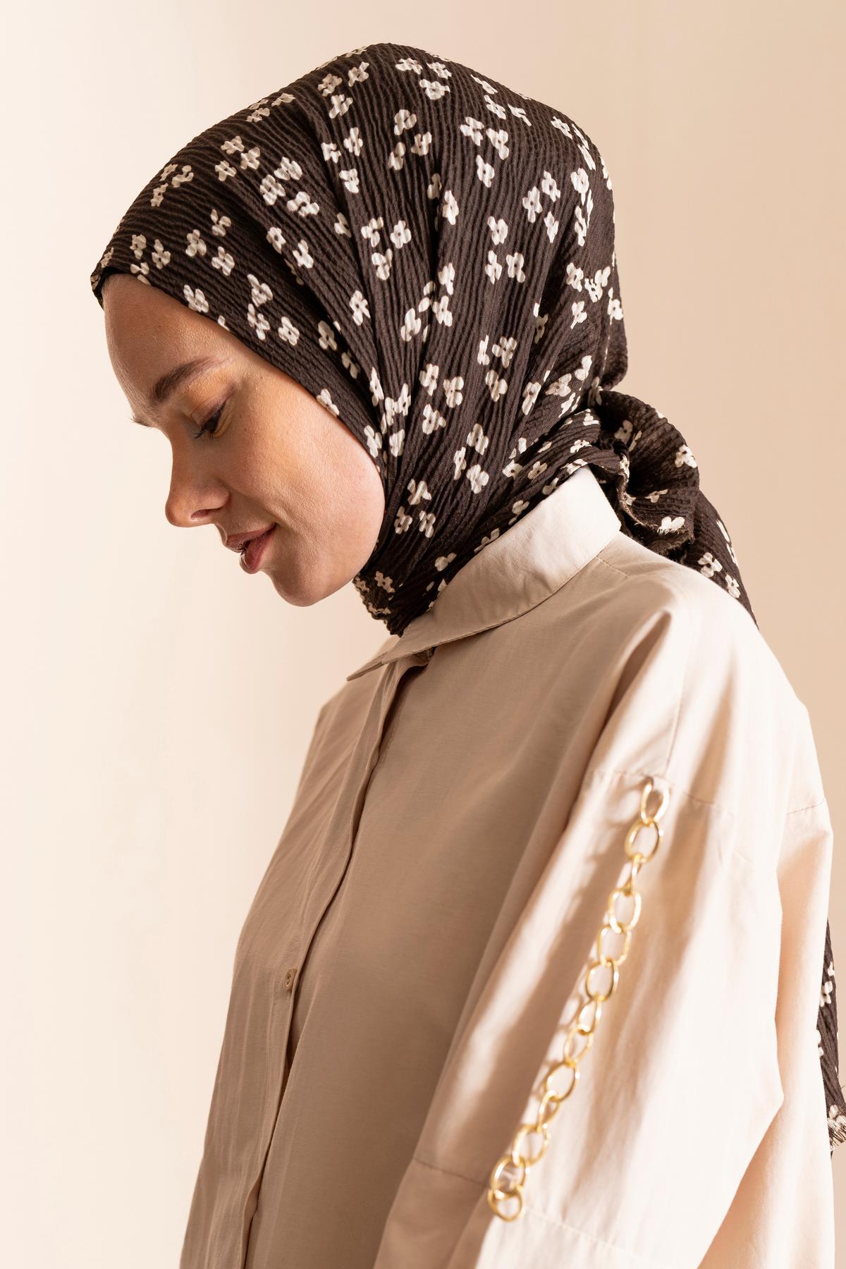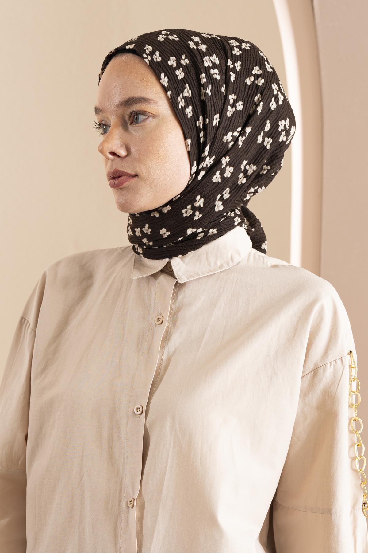 Kadın Çiçek Desenli Kırışmaz Bürümcük Şal 190*80 Cm KAHVE