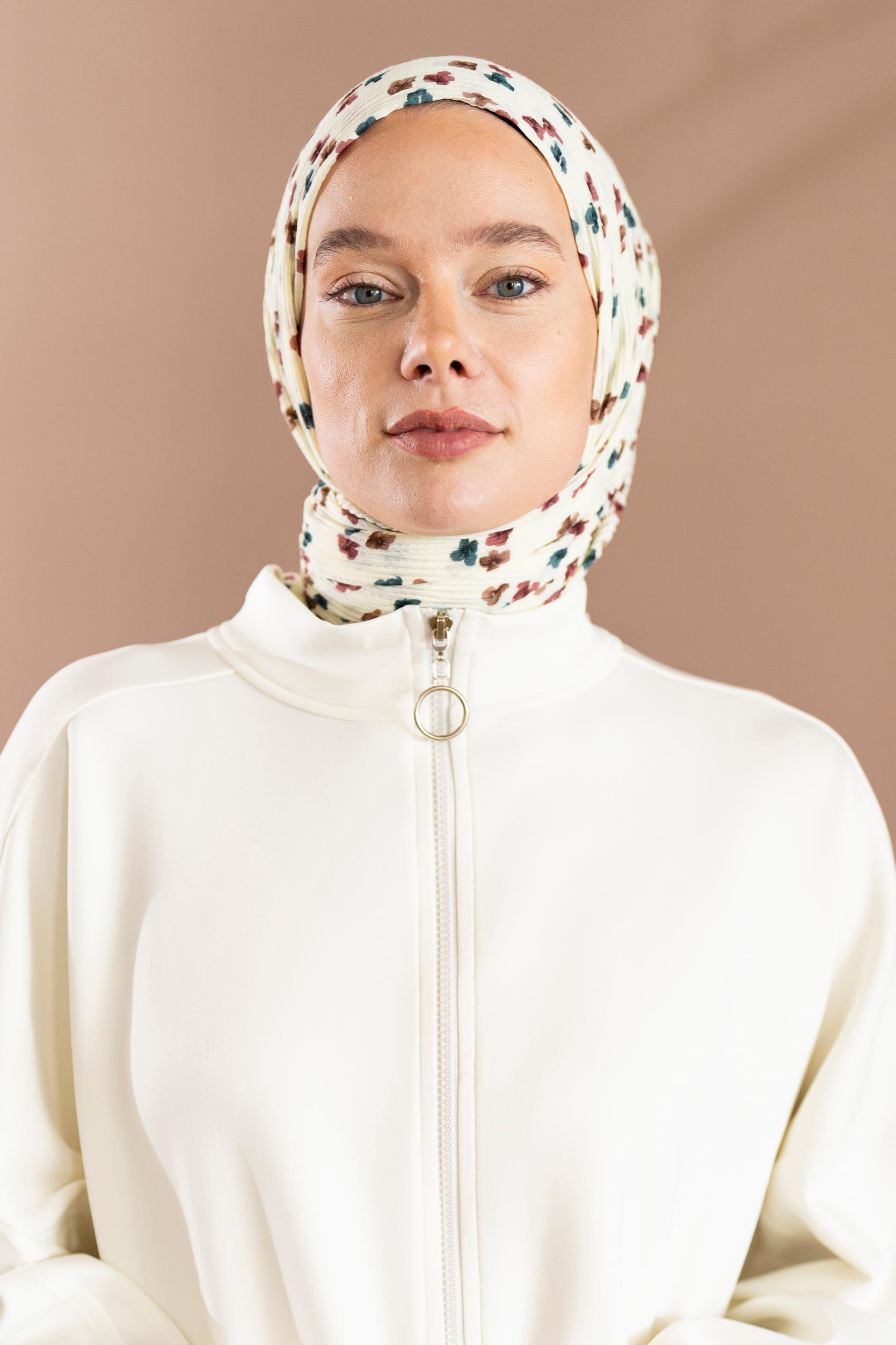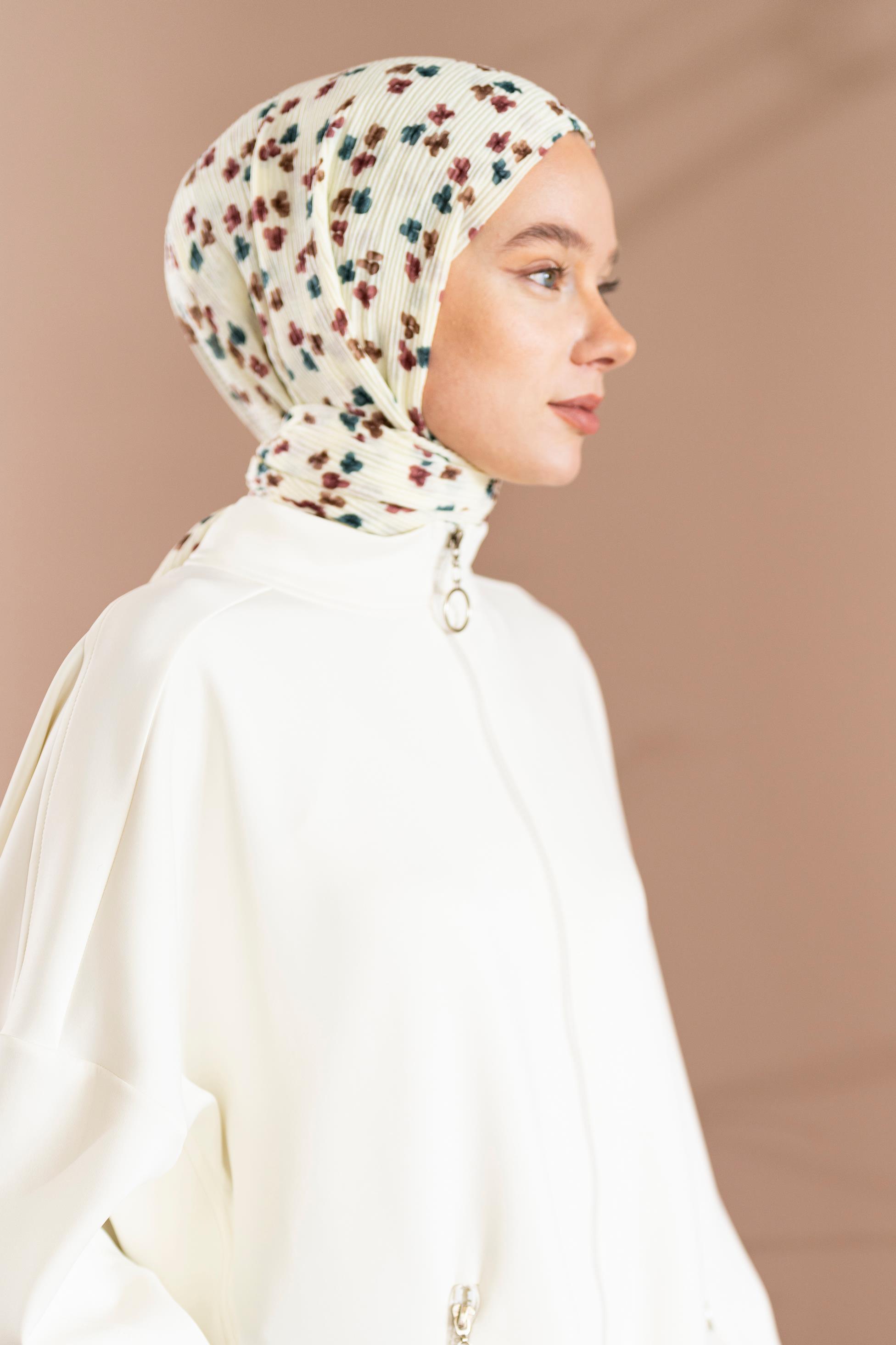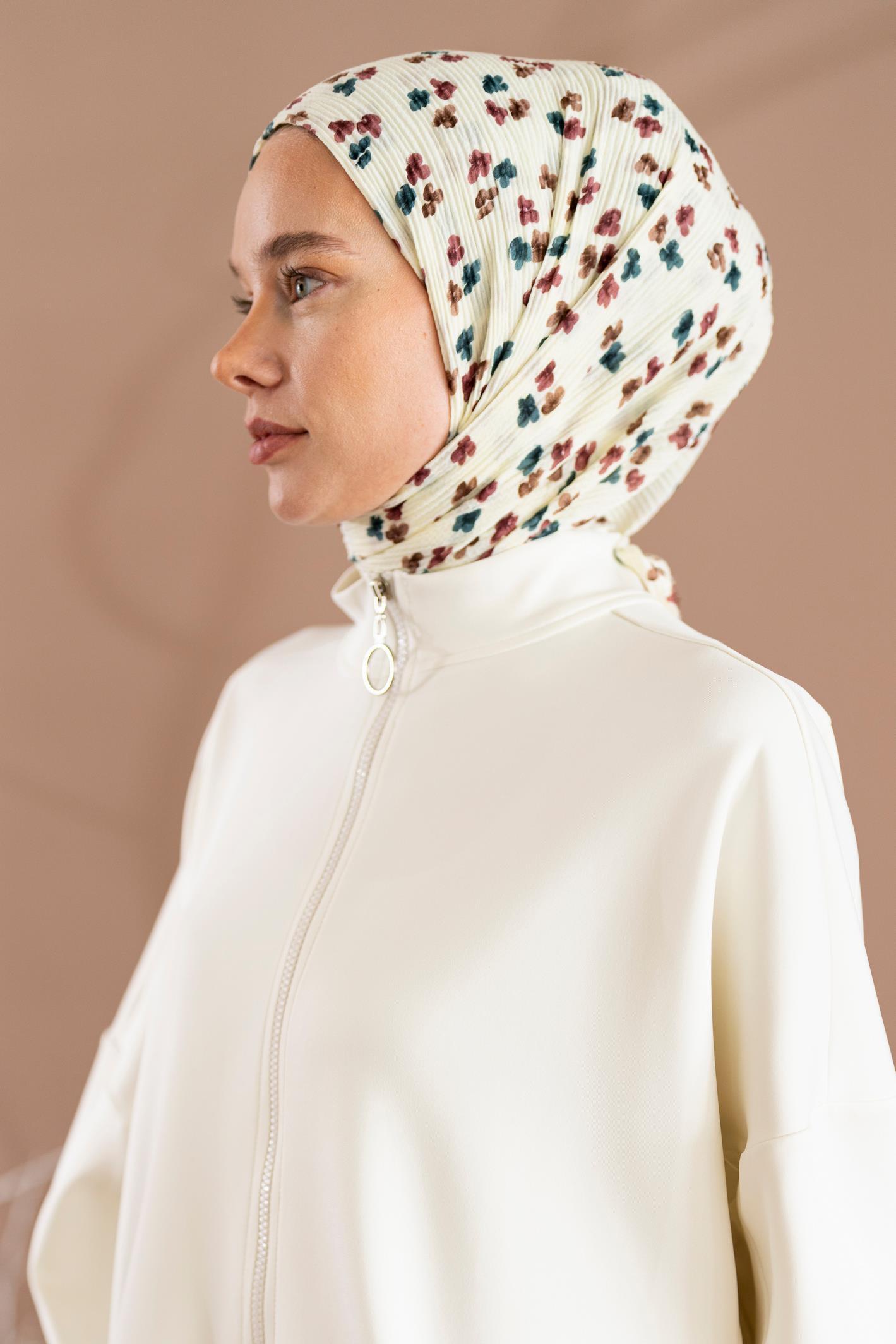 Kadın Çiçek Desenli Kırışmaz Bürümcük Şal 190*80 Cm KREM