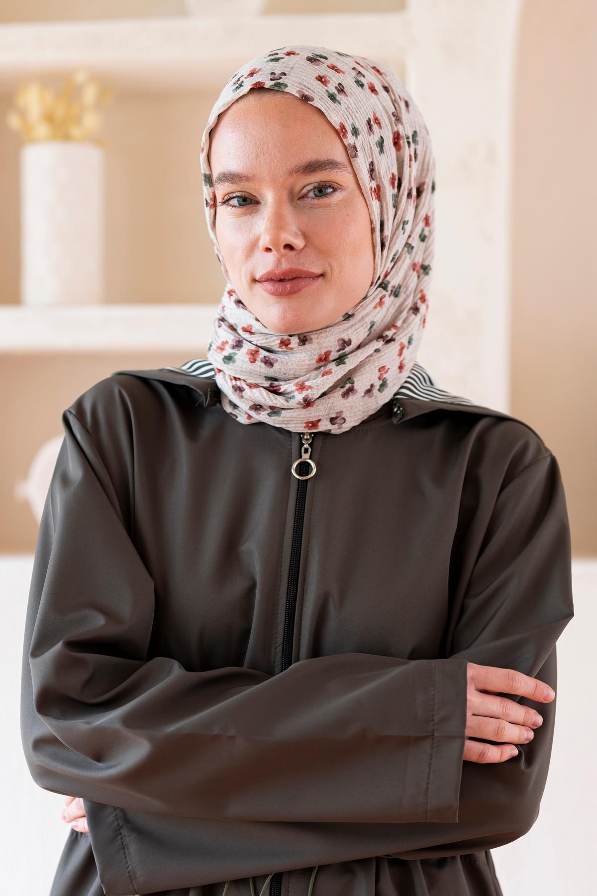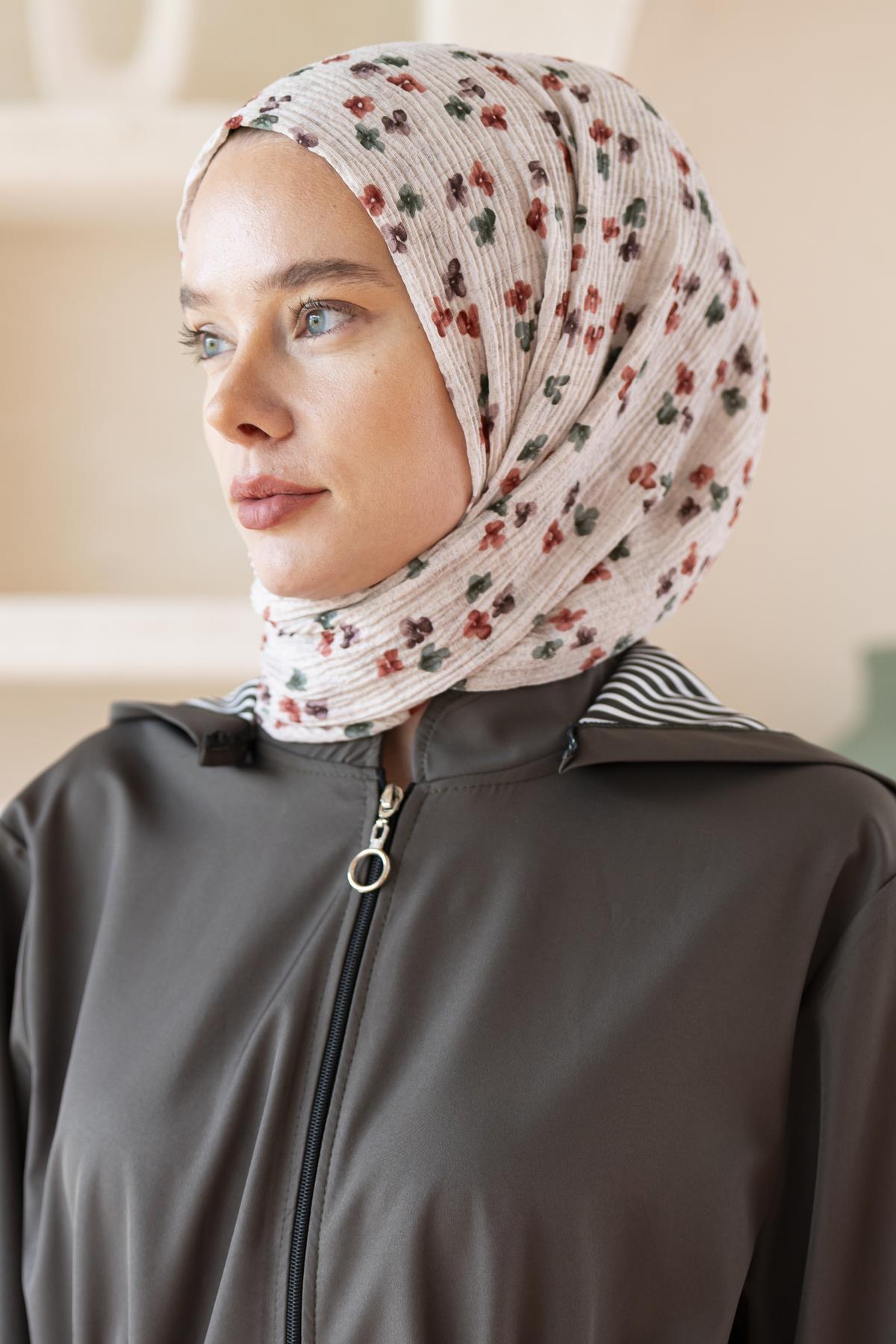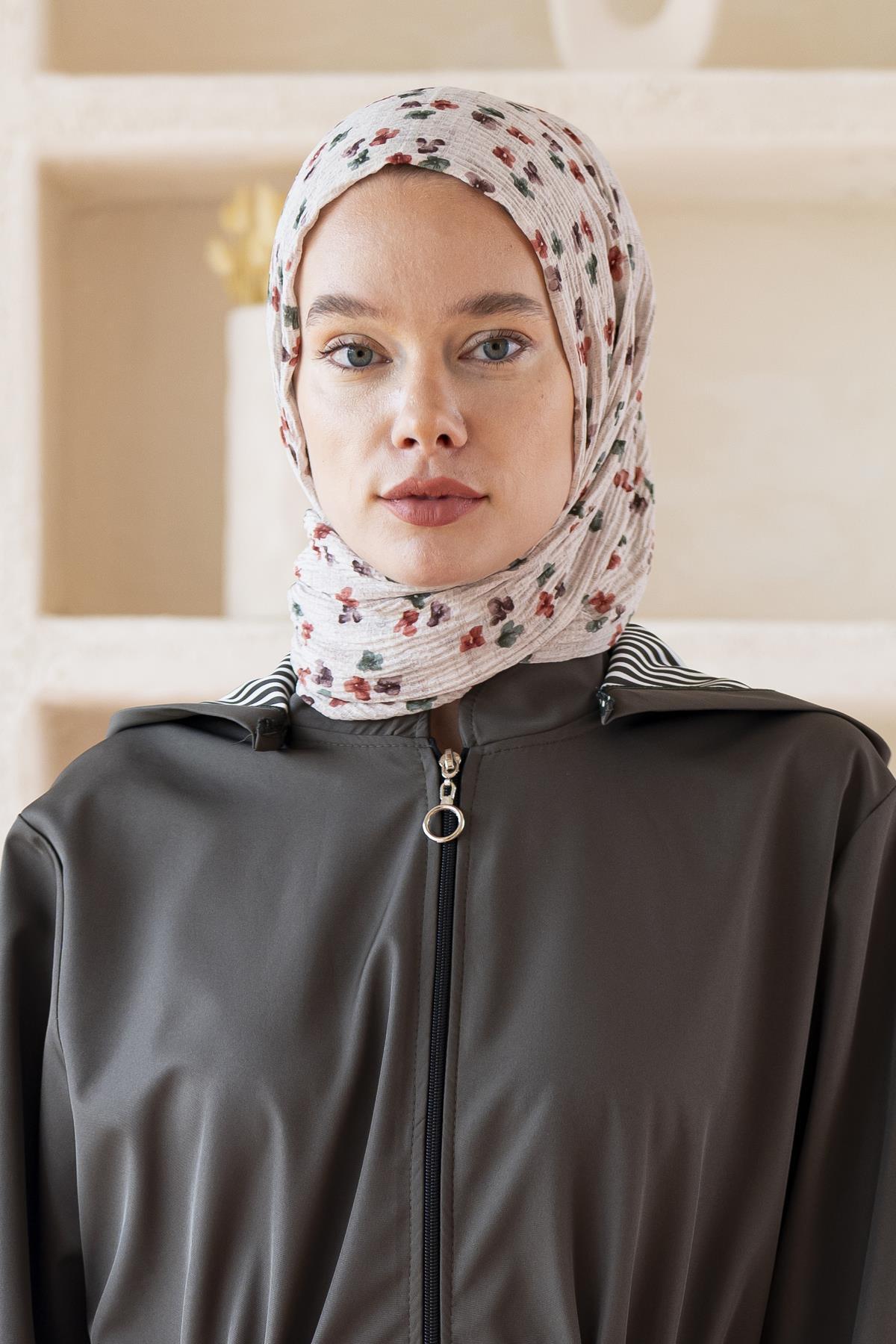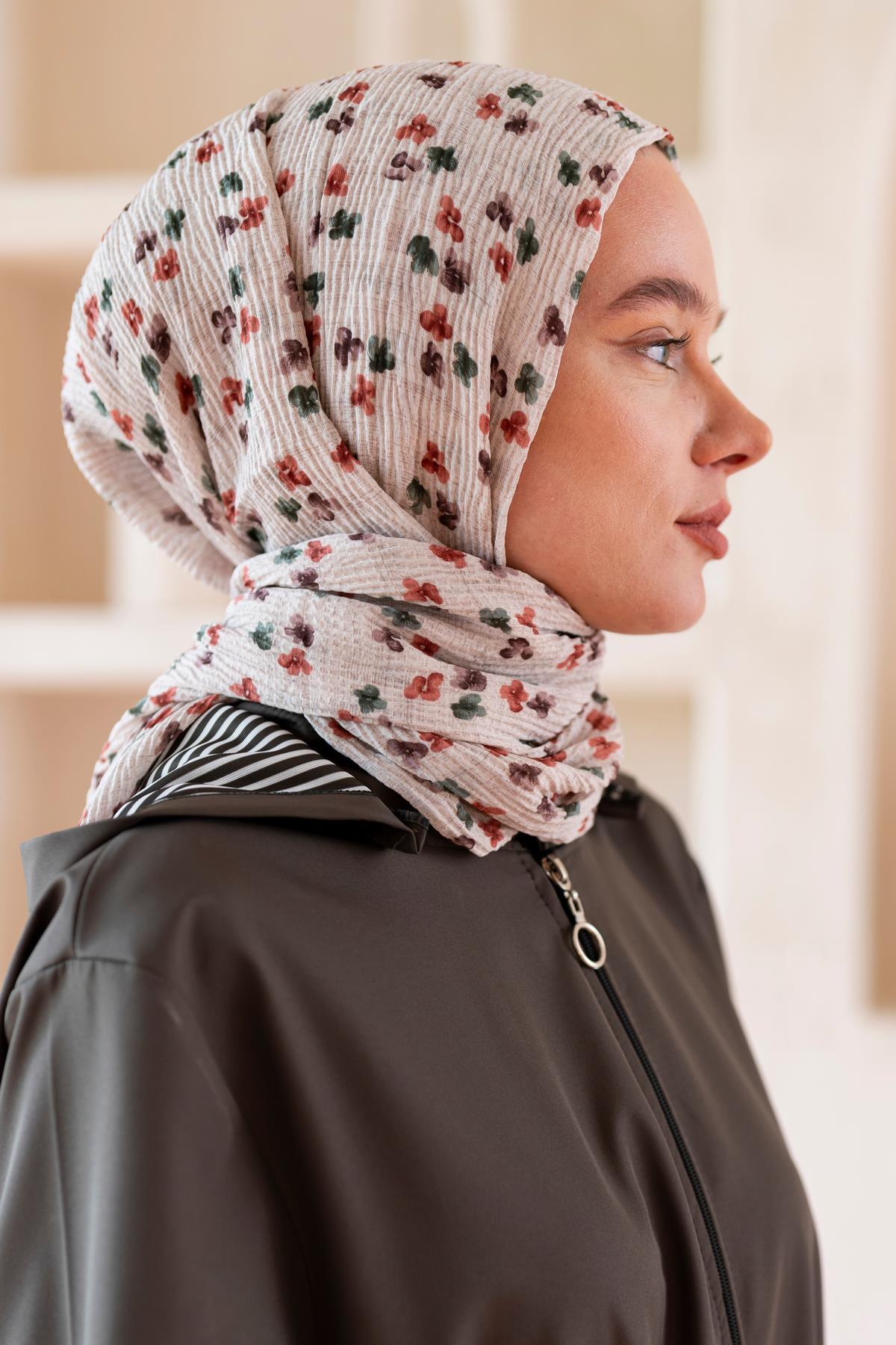Kadın Çiçek Desenli Kırışmaz Bürümcük Şal 190*80 Cm TAŞ