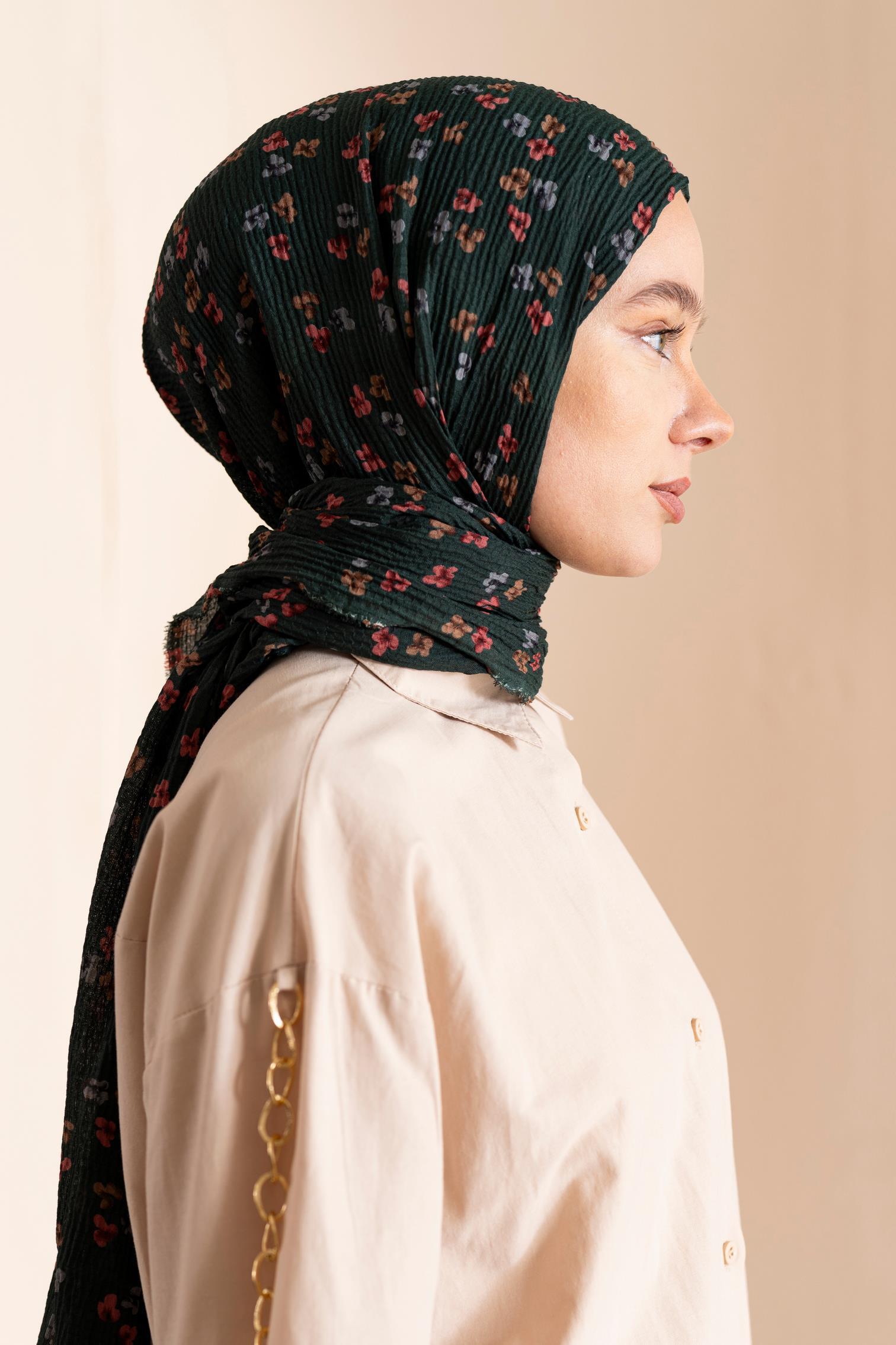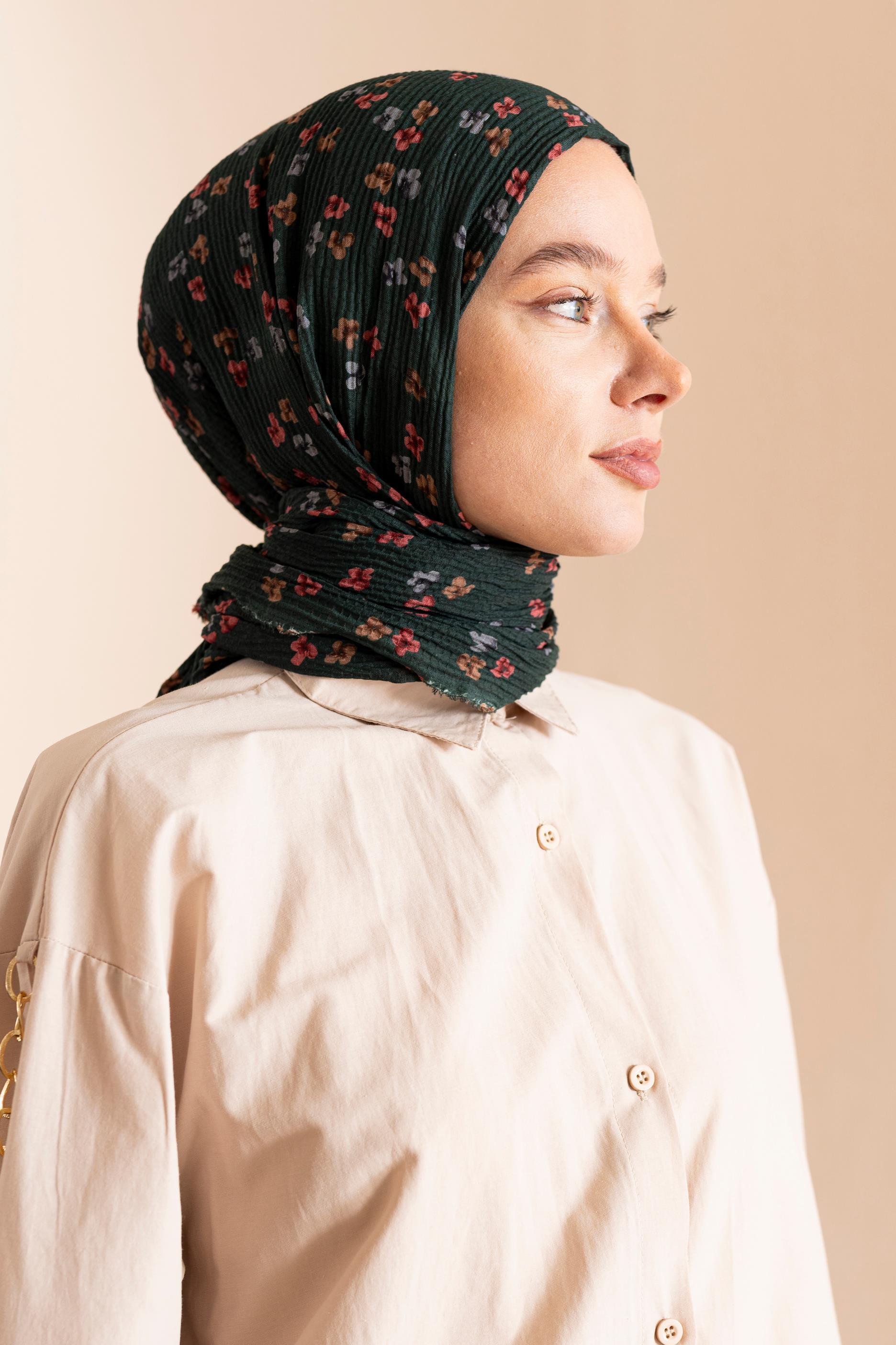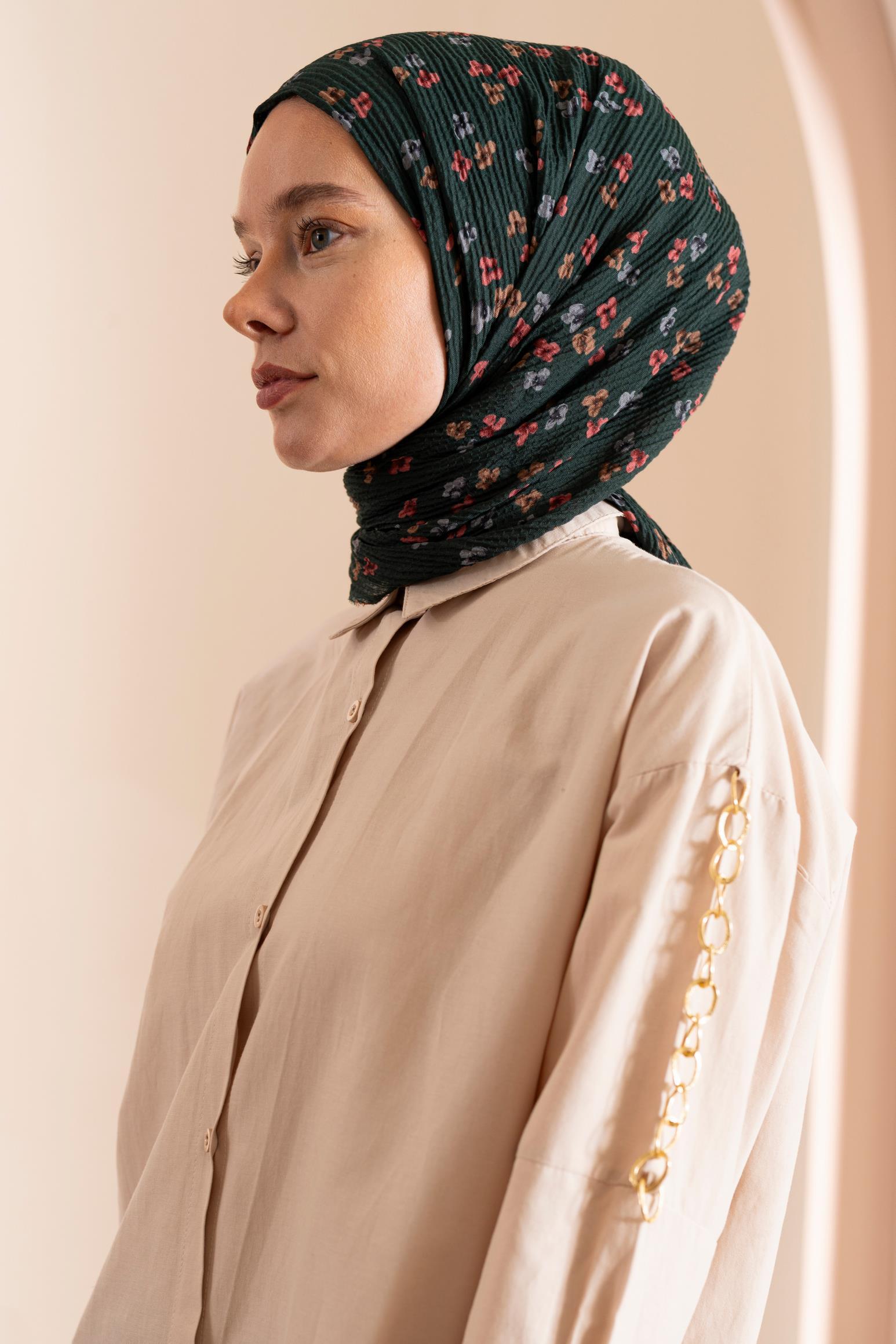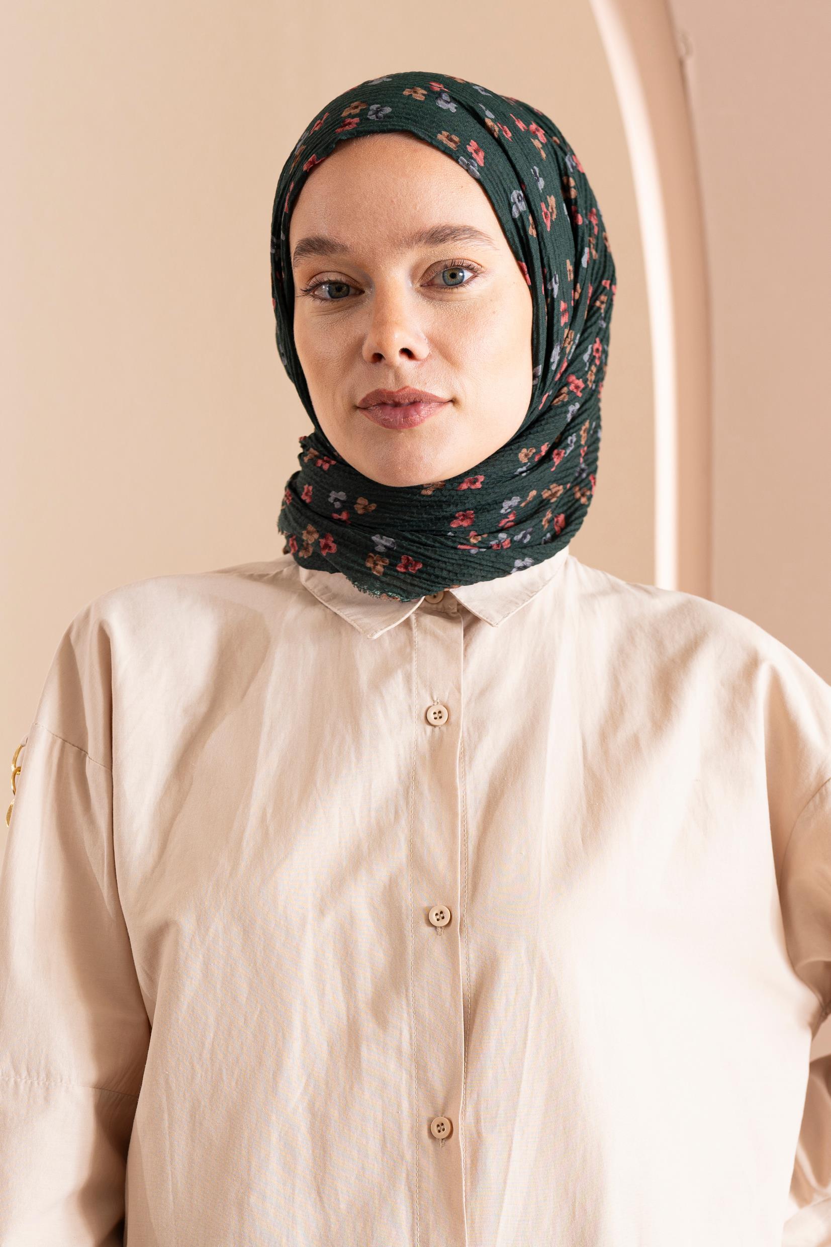 Kadın Çiçek Desenli Kırışmaz Bürümcük Şal 190*80 Cm ZÜMRÜT