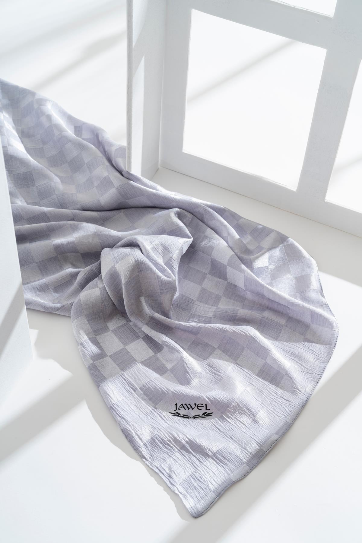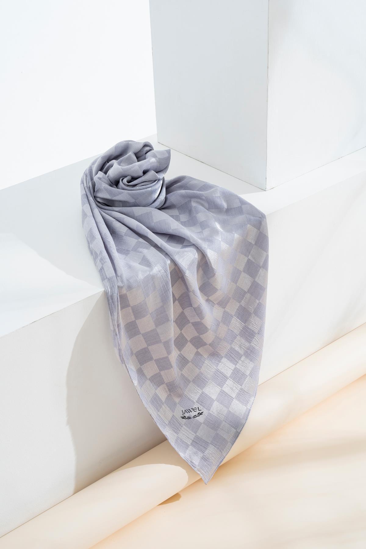 Kadın Dama Desenli Jakarlı Eşarp 100x100 Cm GÜMÜŞ GRİ