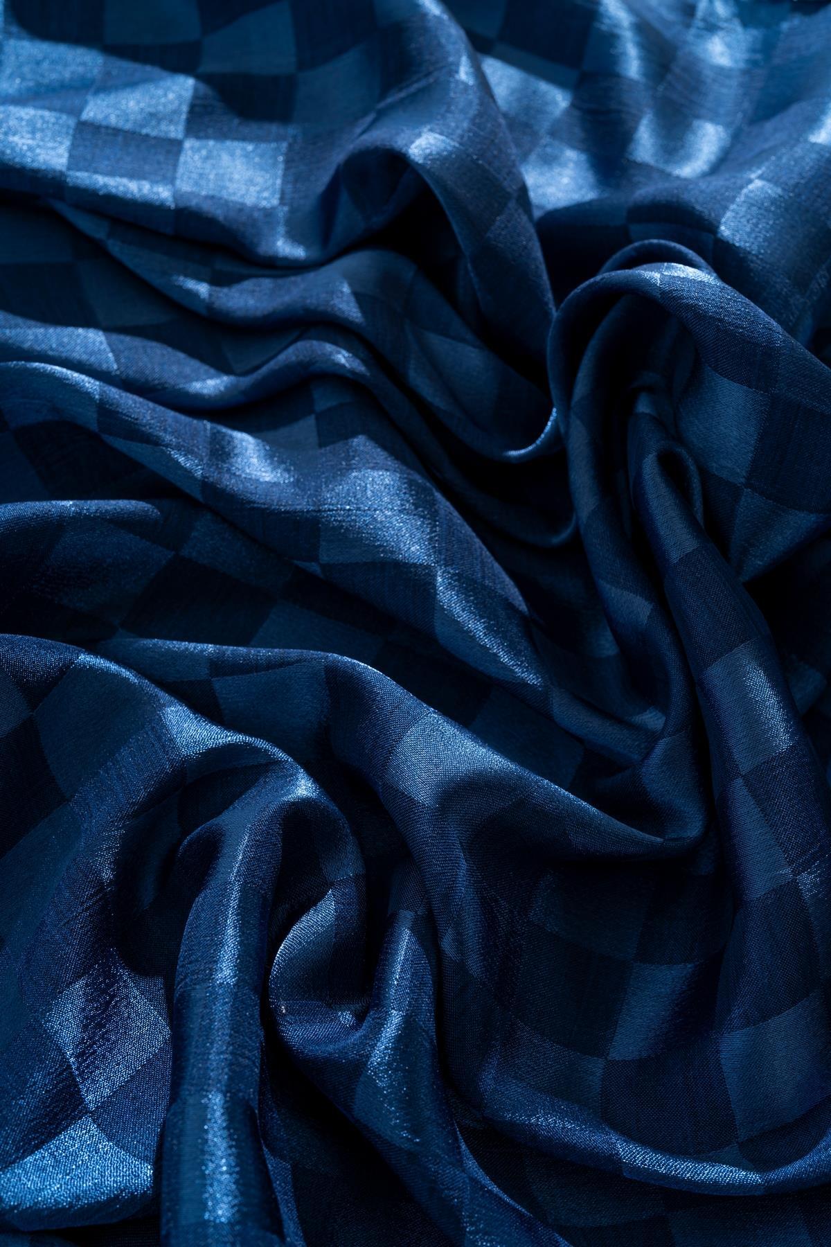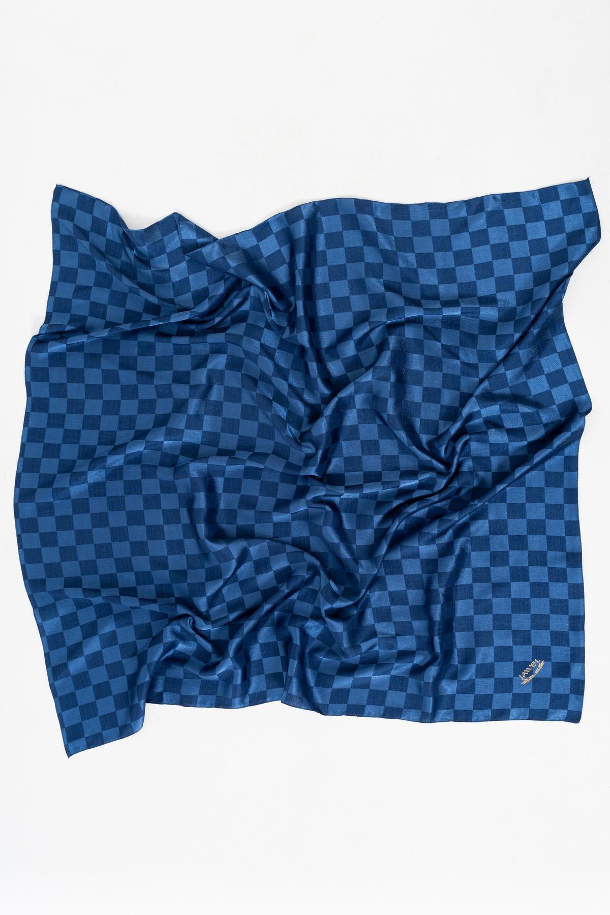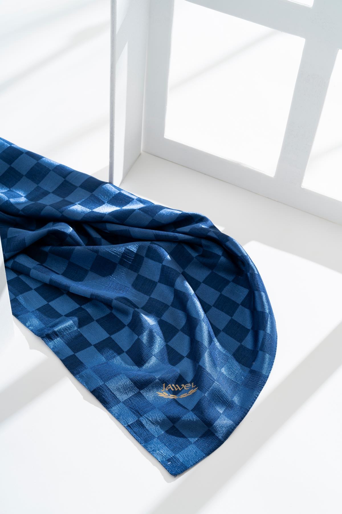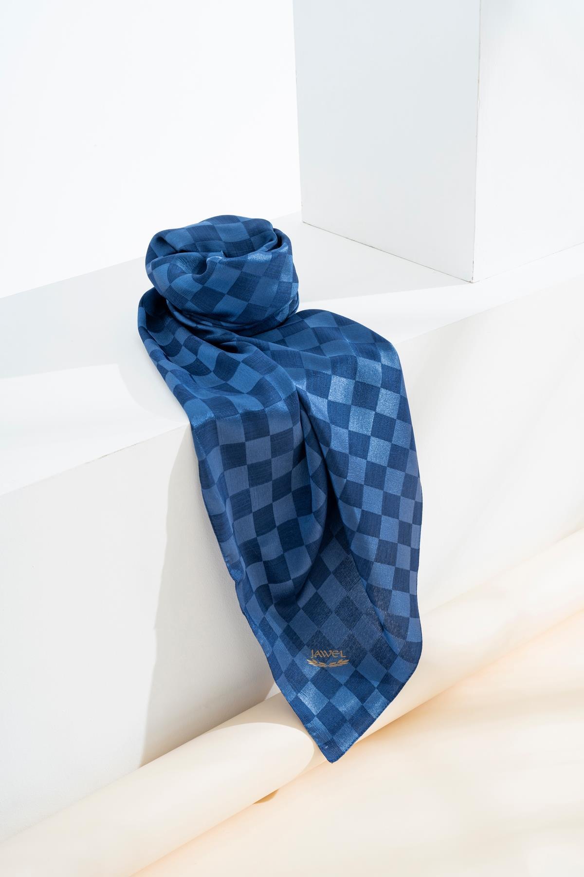 Kadın Dama Desenli Jakarlı Eşarp 100x100 Cm İNDİGO