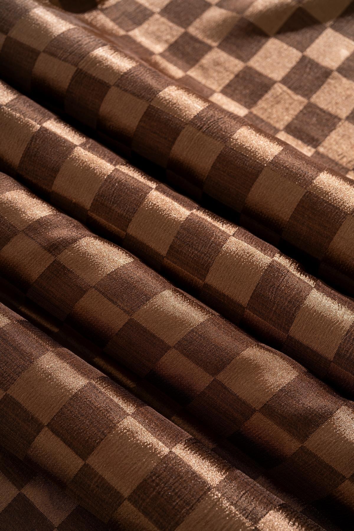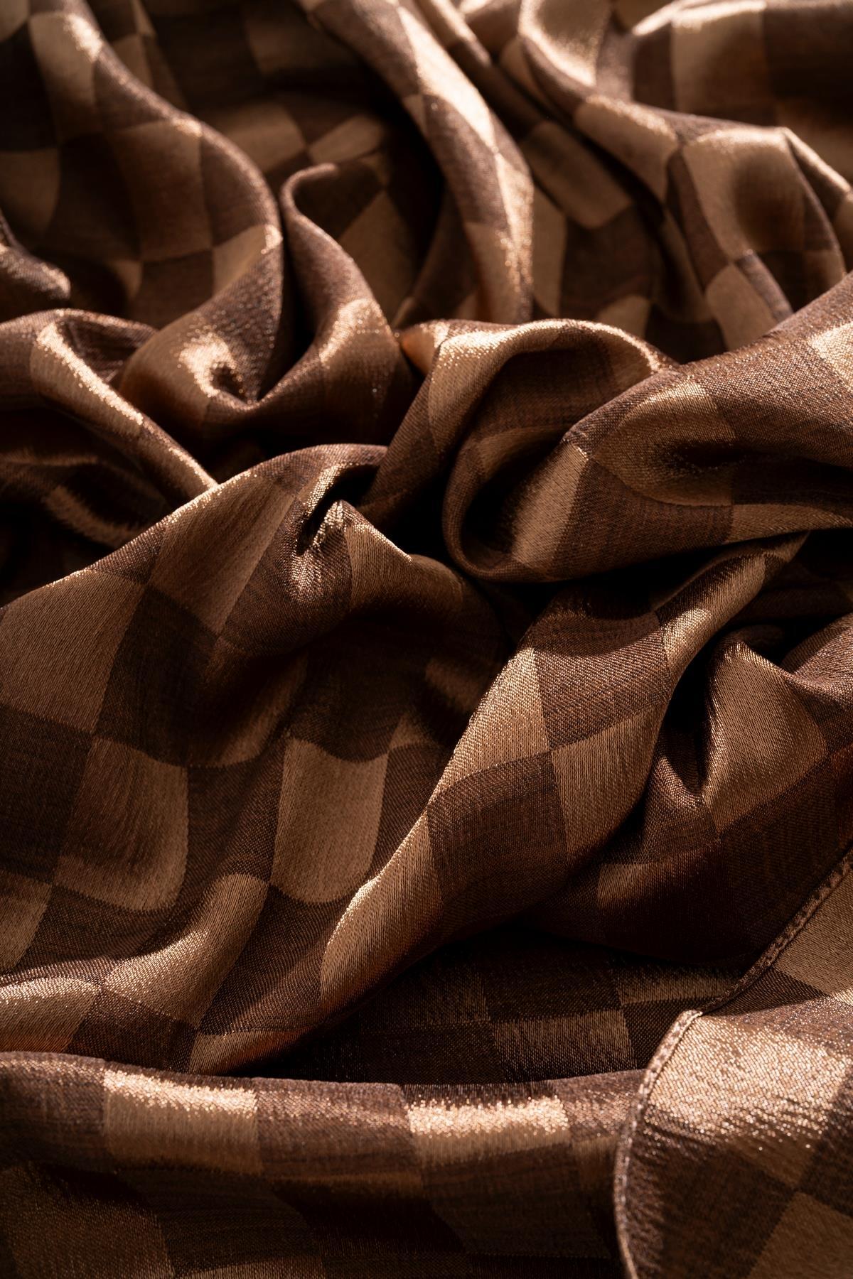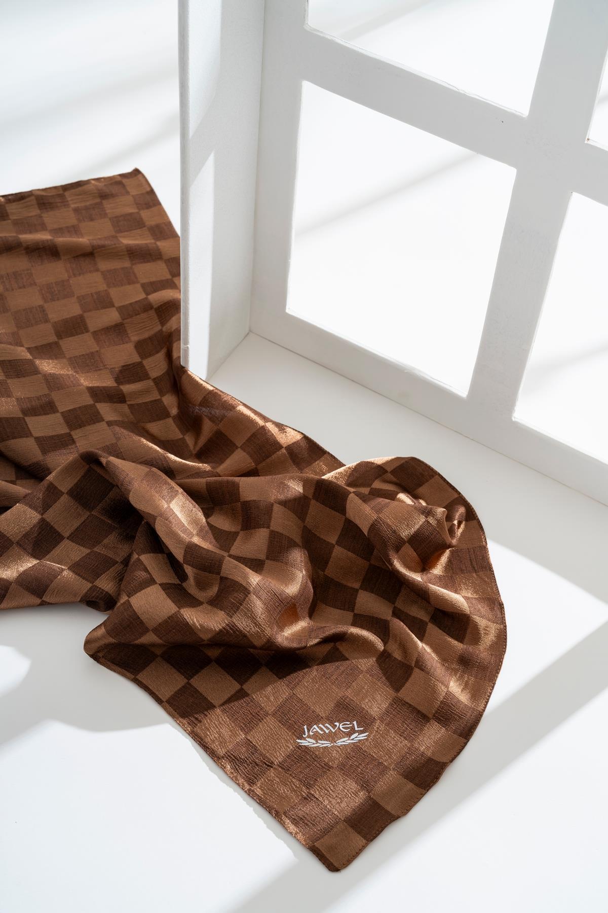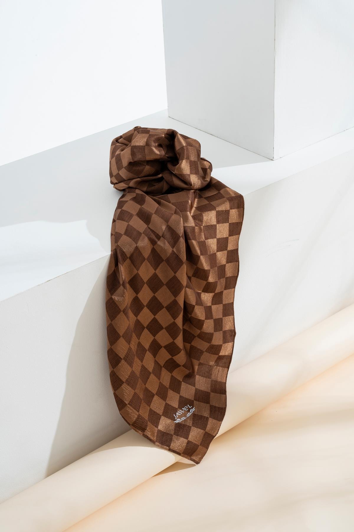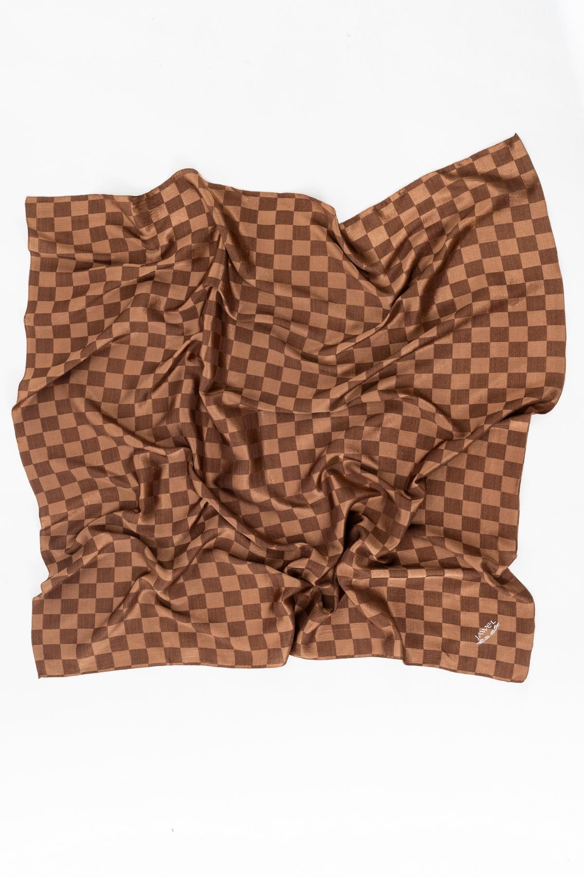 Kadın Dama Desenli Jakarlı Eşarp 100x100 Cm KAHVE