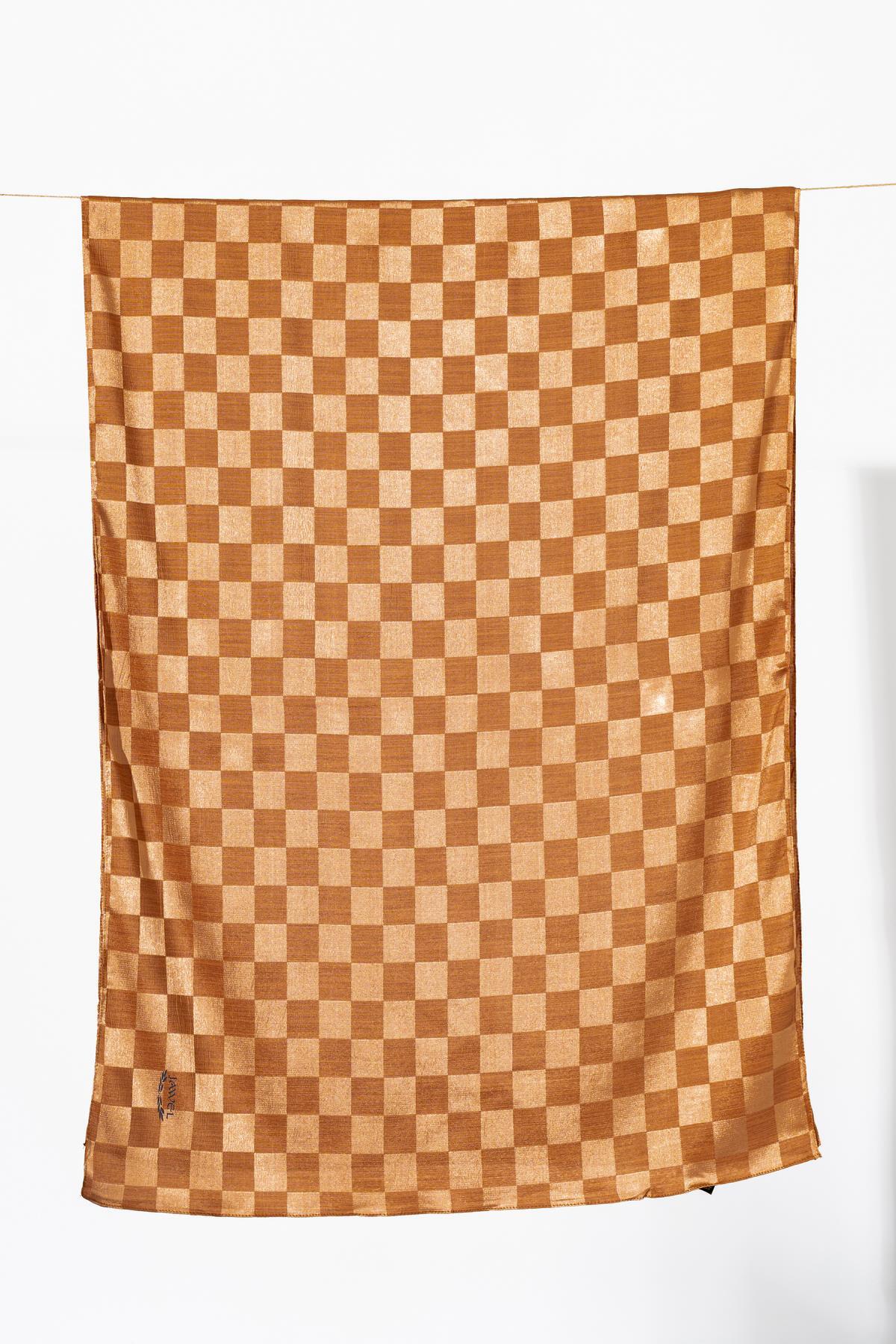 Kadın Dama Desenli Tesettür Jakarlı Şal 185x70 Cm KAHVE