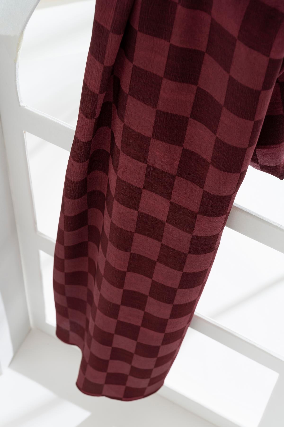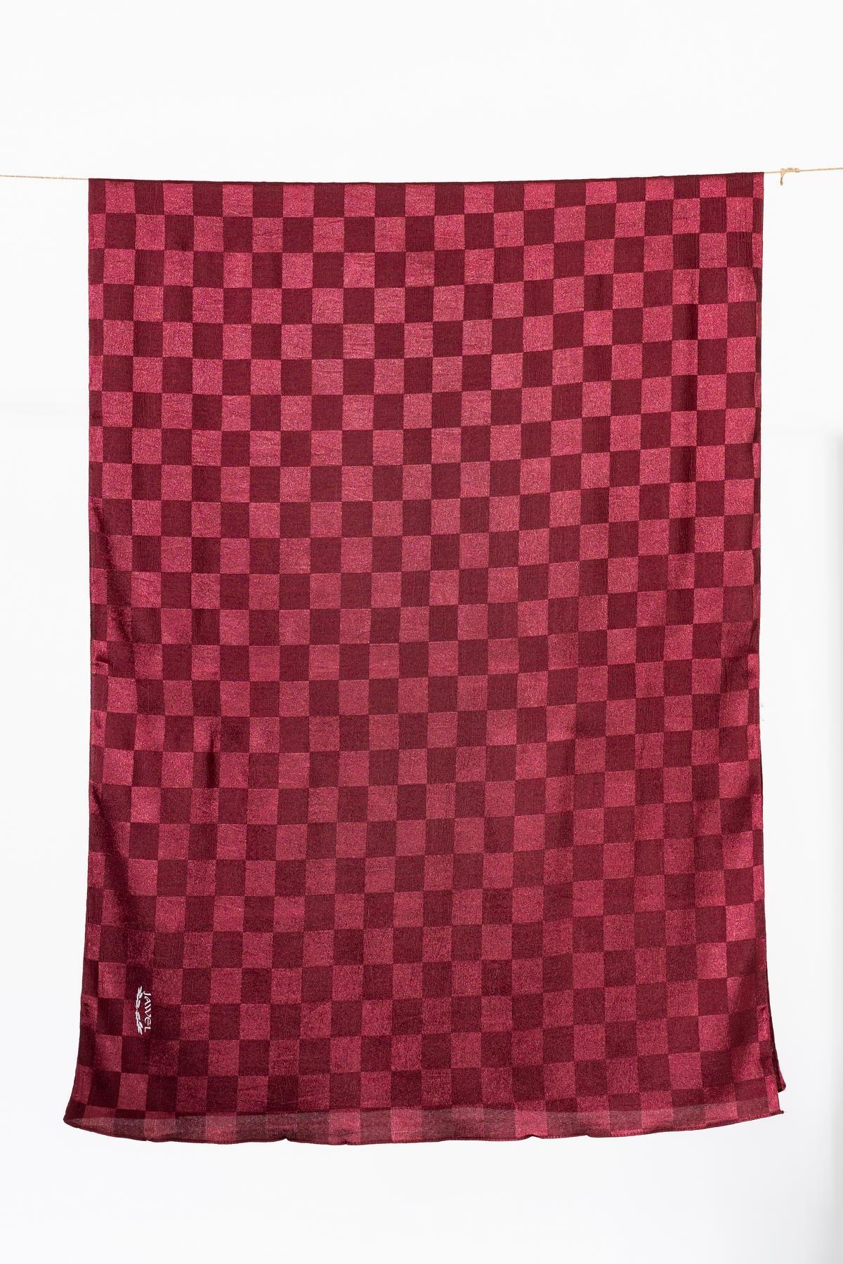 Kadın Dama Desenli Tesettür Jakarlı Şal 185x70 Cm BORDO