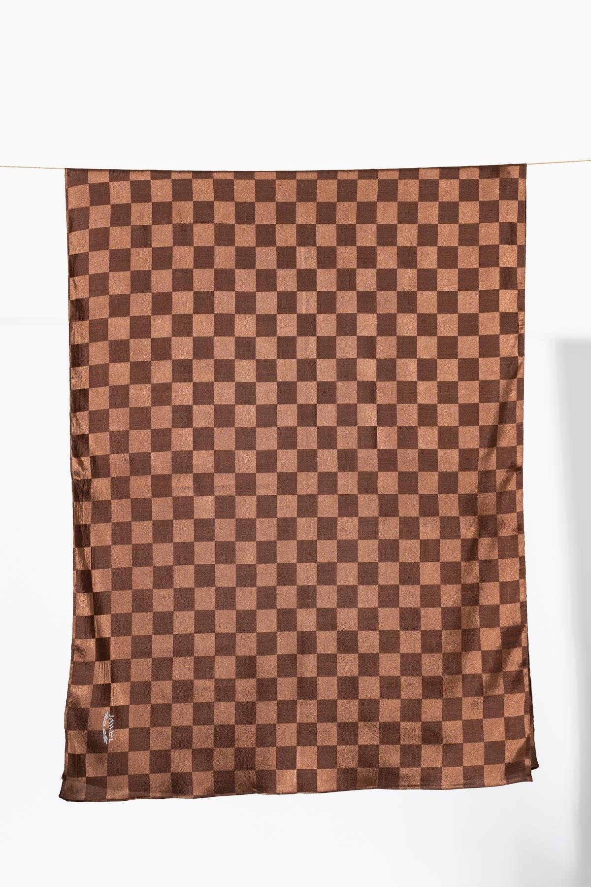 Kadın Dama Desenli Tesettür Jakarlı Şal 185x70 Cm KAHVE