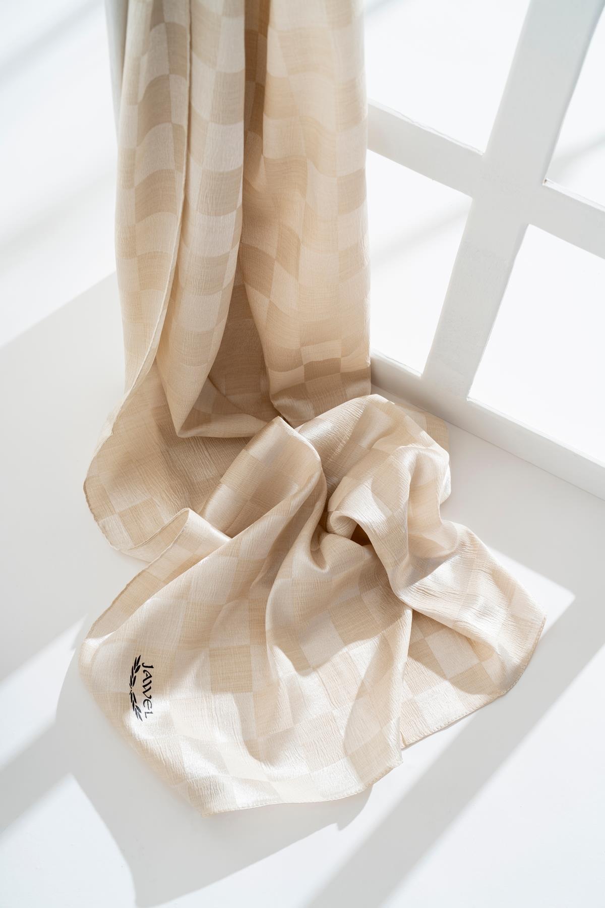 Kadın Dama Desenli Tesettür Jakarlı Şal 185x70 Cm KREM