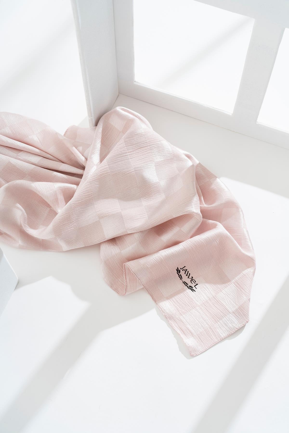 Kadın Dama Desenli Tesettür Jakarlı Şal 185x70 Cm PUDRA