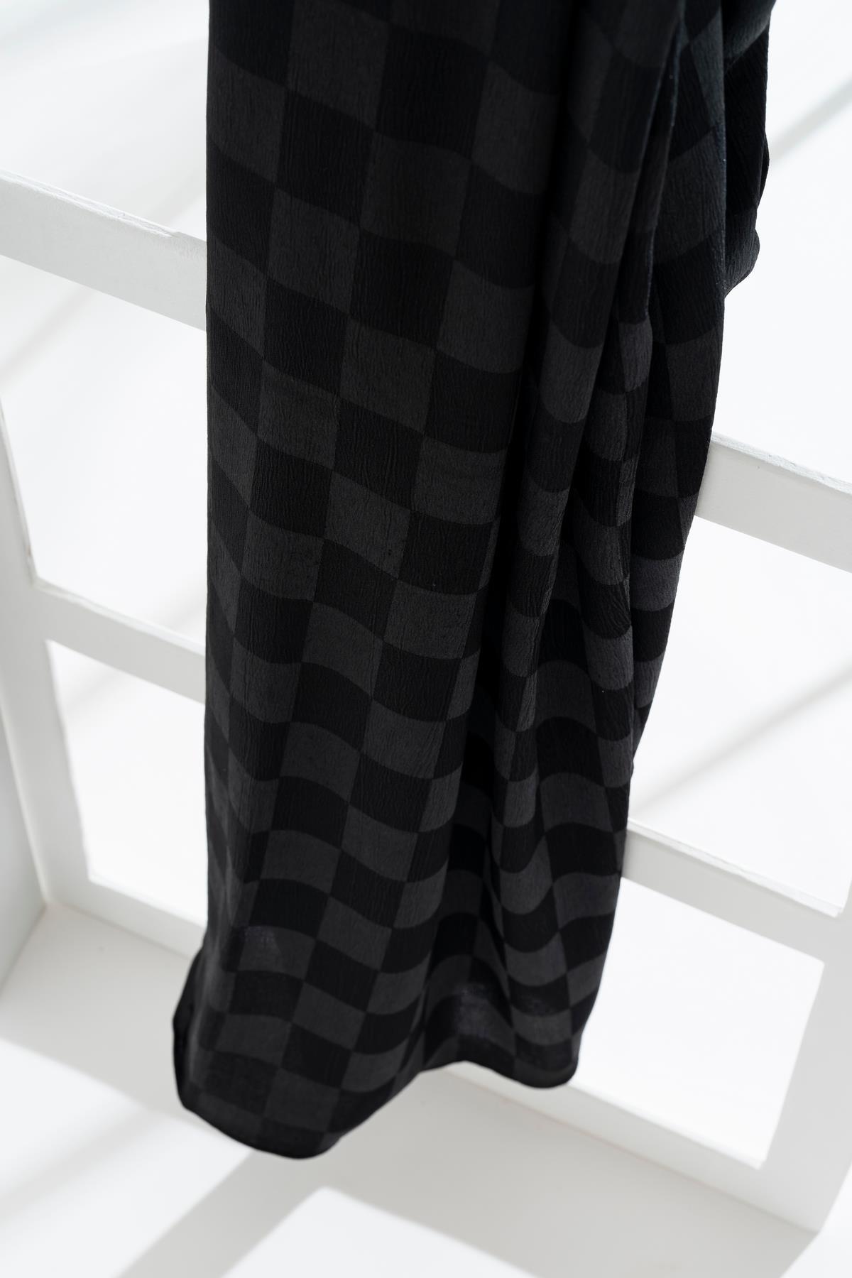 Kadın Dama Desenli Tesettür Jakarlı Şal 185x70 Cm SİYAH