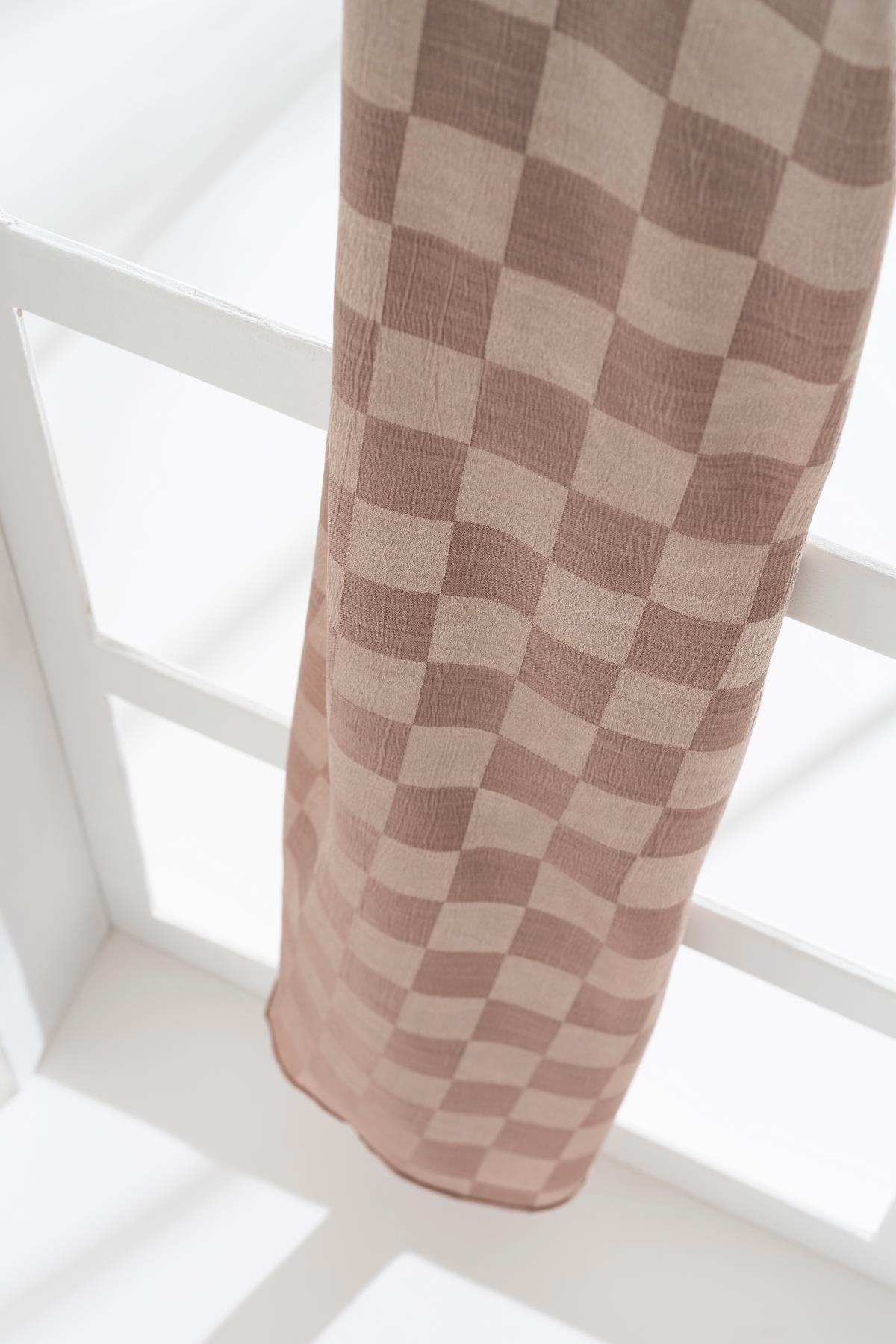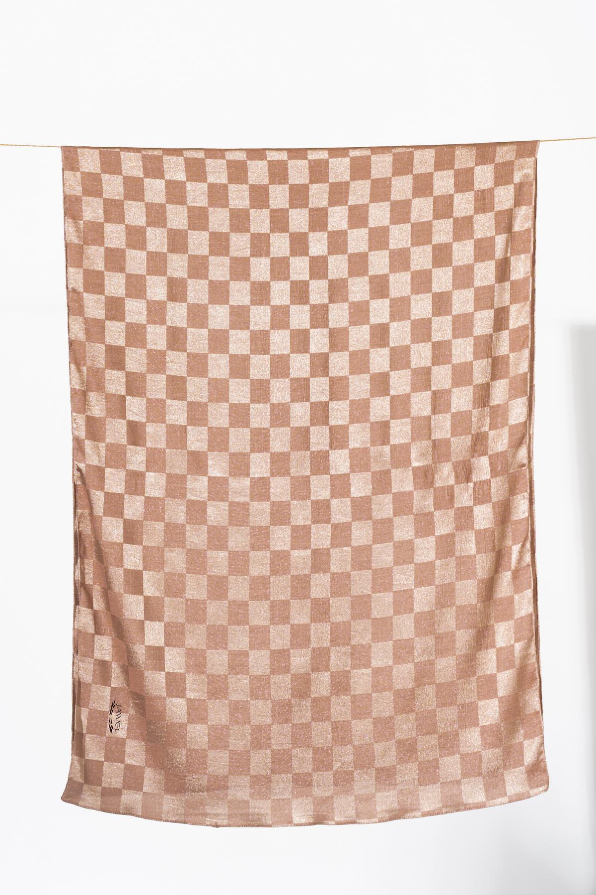 Kadın Dama Desenli Tesettür Jakarlı Şal 185x70 Cm AÇIK KAHVE