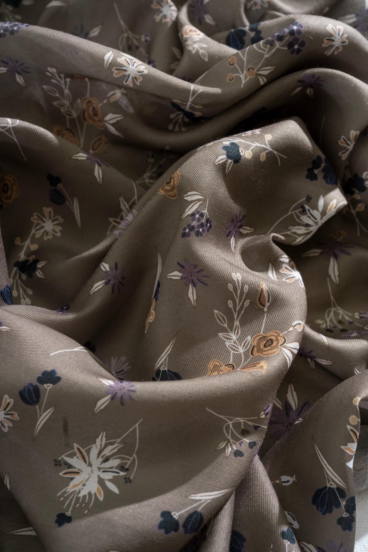 Kadın Digital Baskılı Çiçek Desen Soft Eşarp HAKİ LİLA