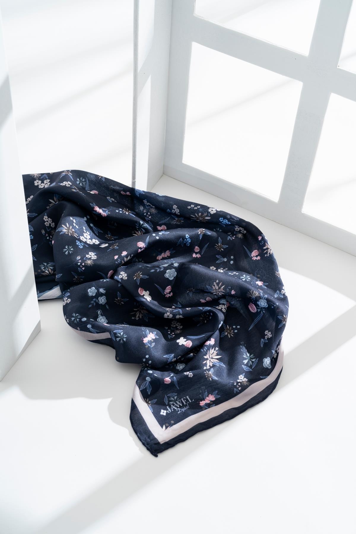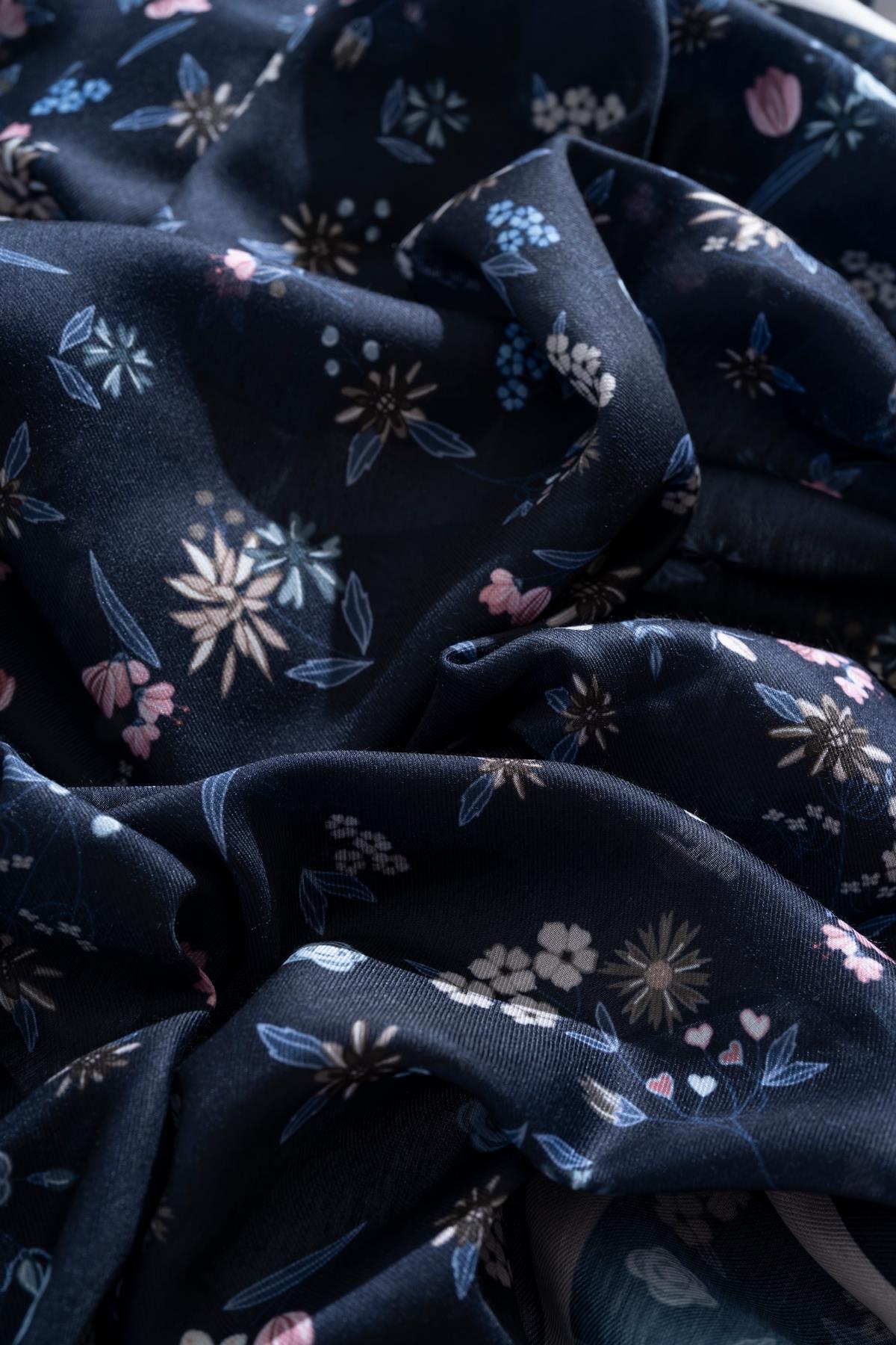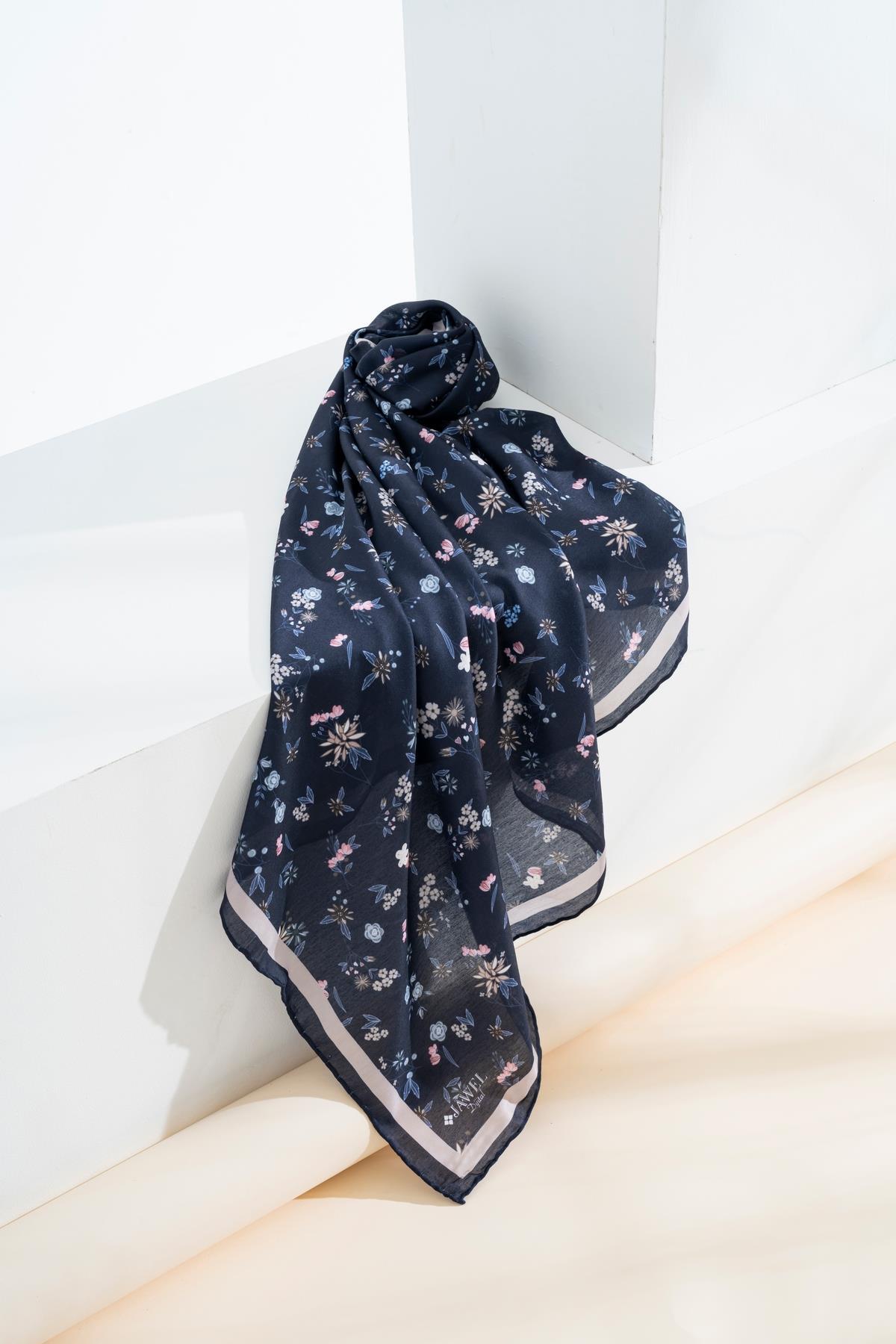 Kadın Digital Baskılı Çiçek Desen Soft Eşarp LACİVERT