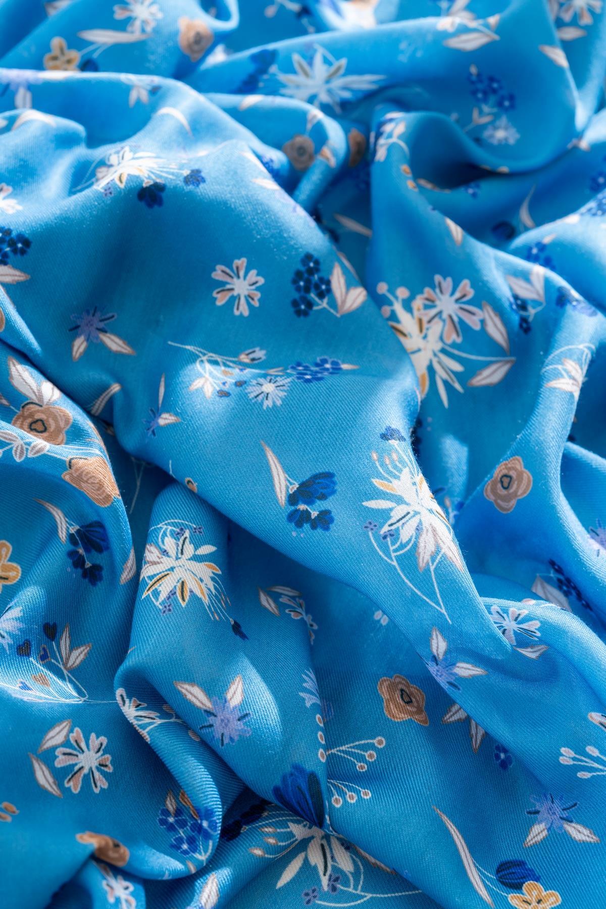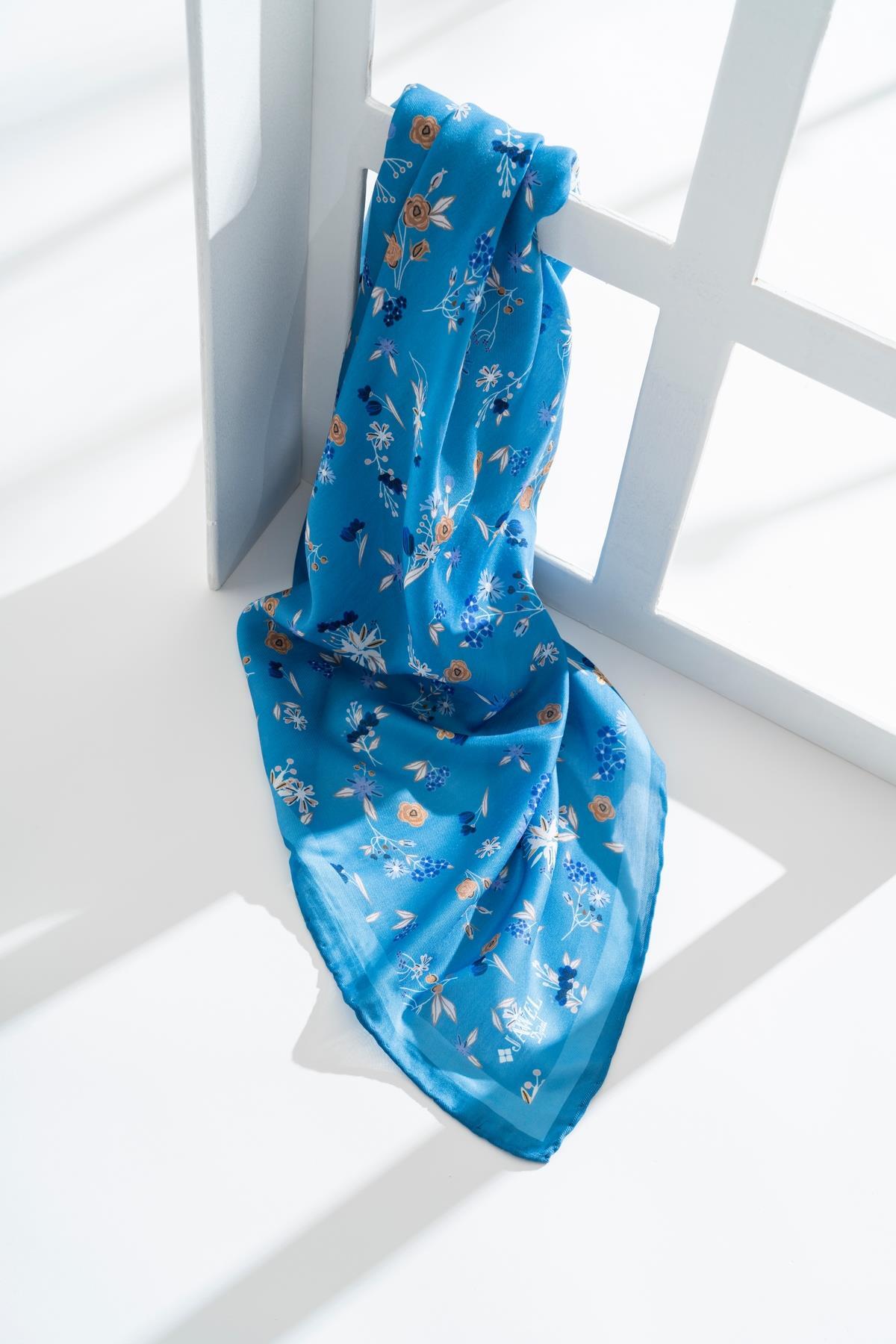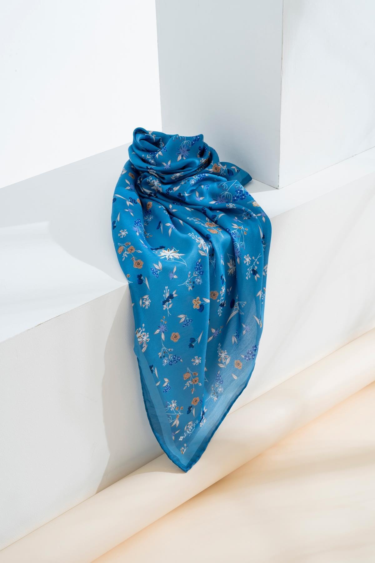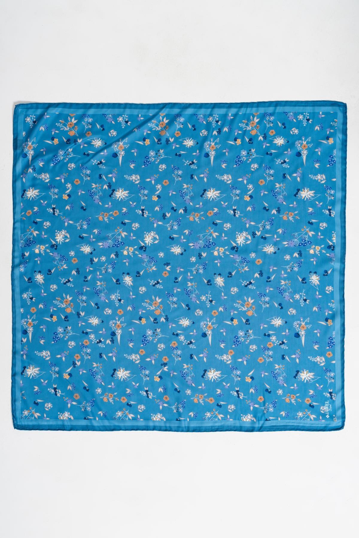 Kadın Digital Baskılı Çiçek Desen Soft Eşarp MAVİ