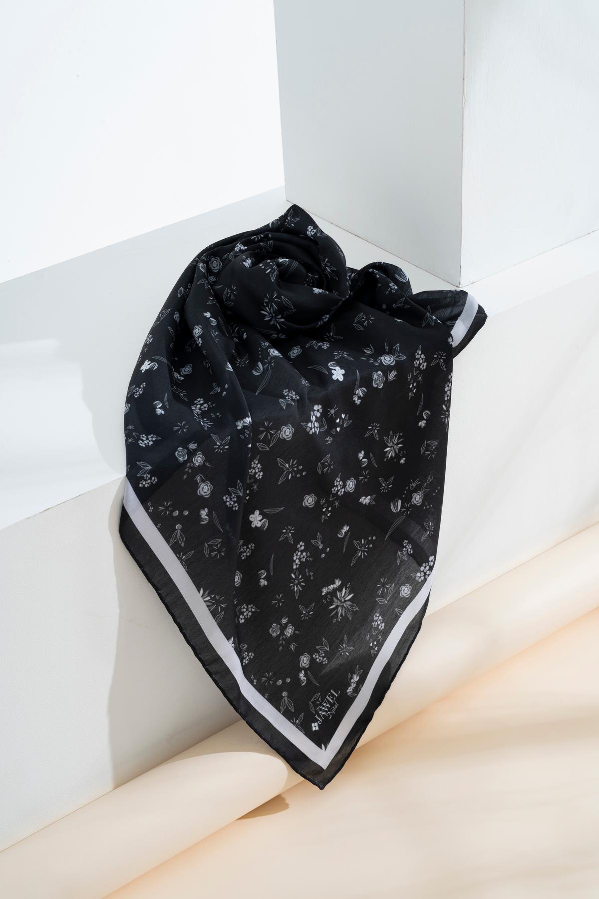 Kadın Digital Baskılı Çiçek Desen Soft Eşarp SİYAH