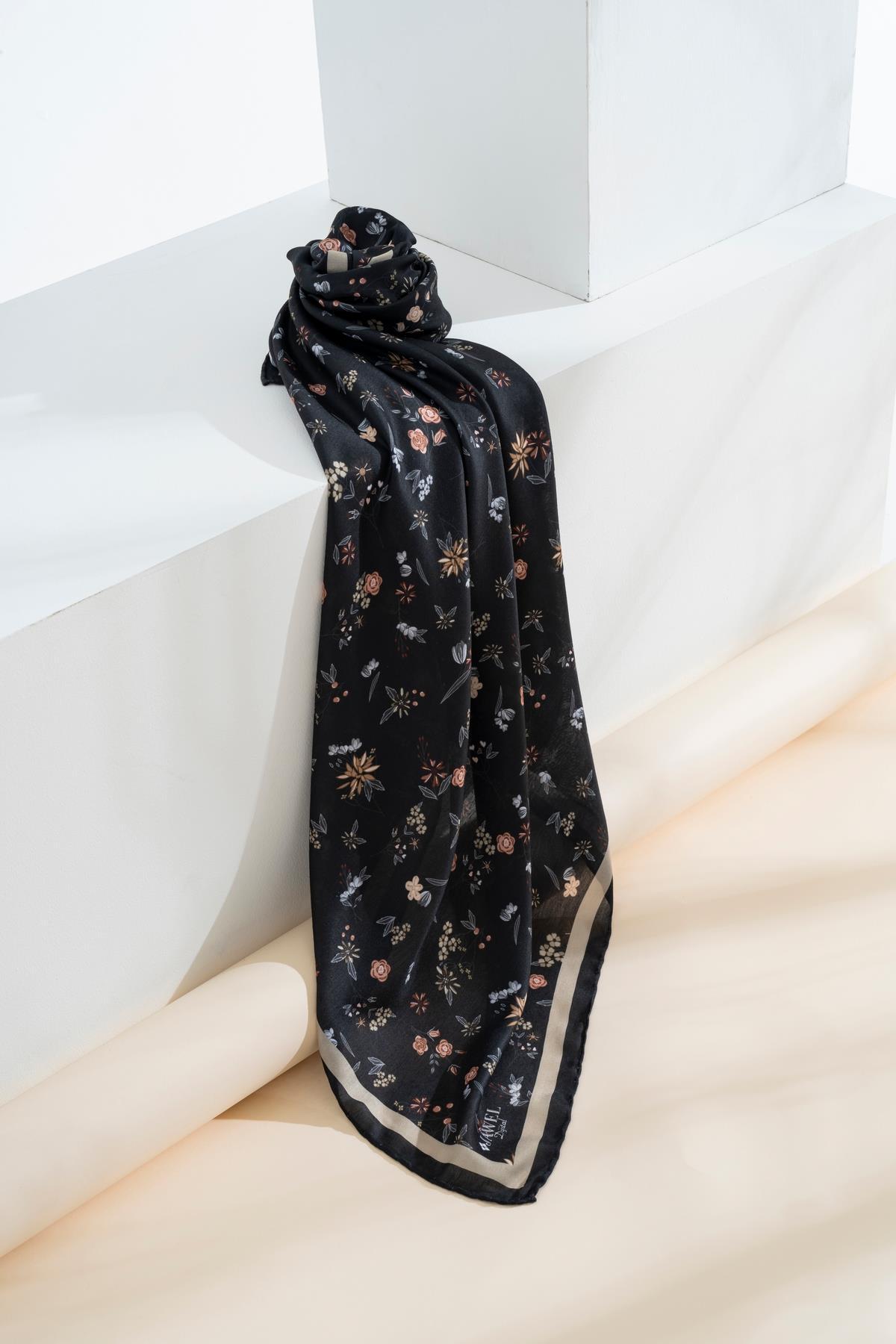 Kadın Digital Baskılı Çiçek Desen Soft Eşarp SİYAH-HAKİ