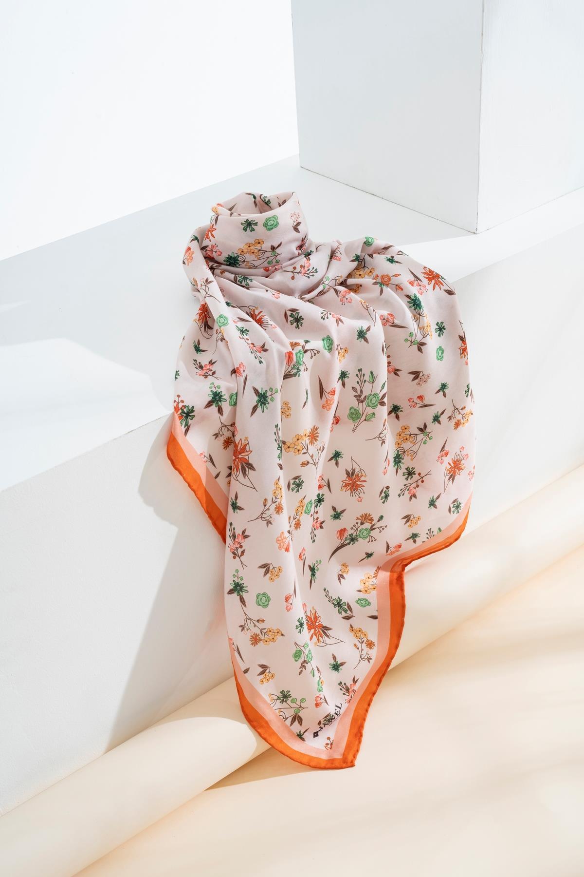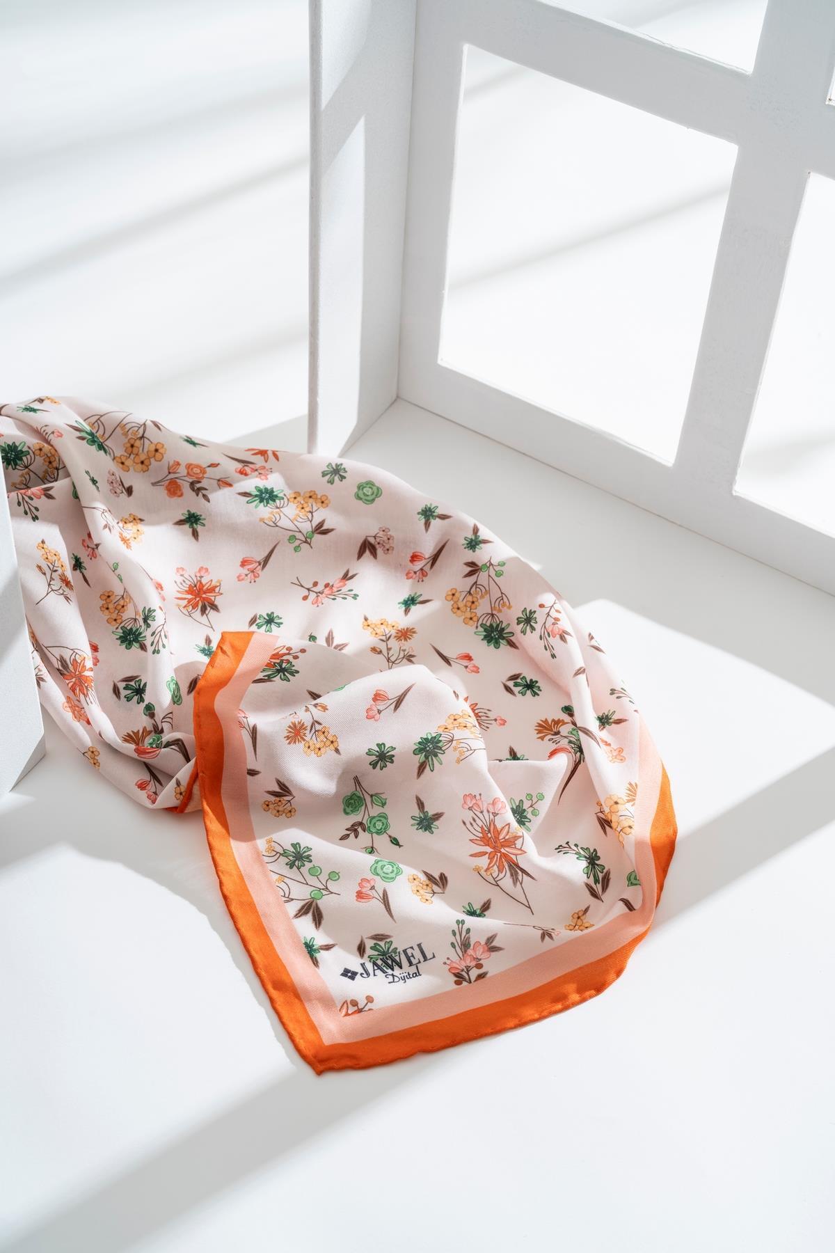 Kadın Digital Baskılı Çiçek Desen Soft Eşarp TURUNCU