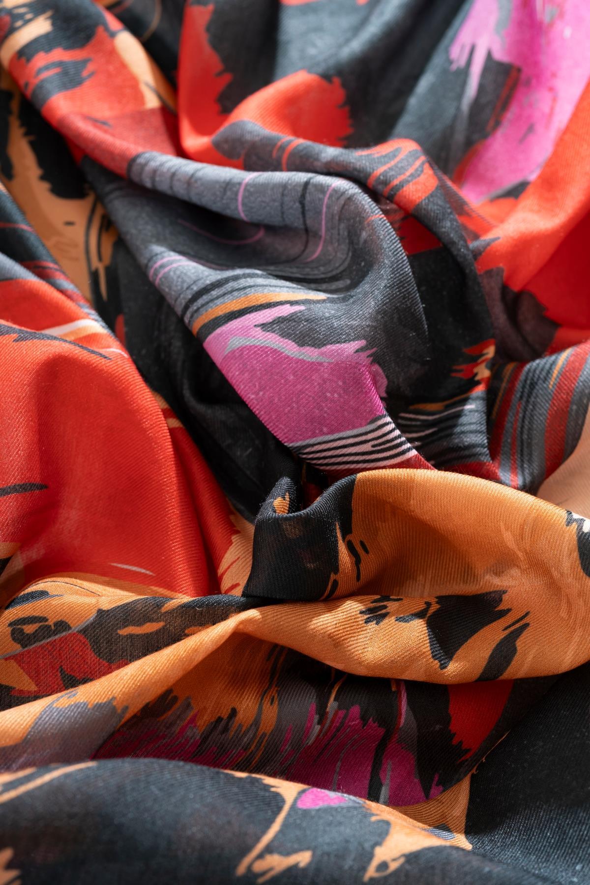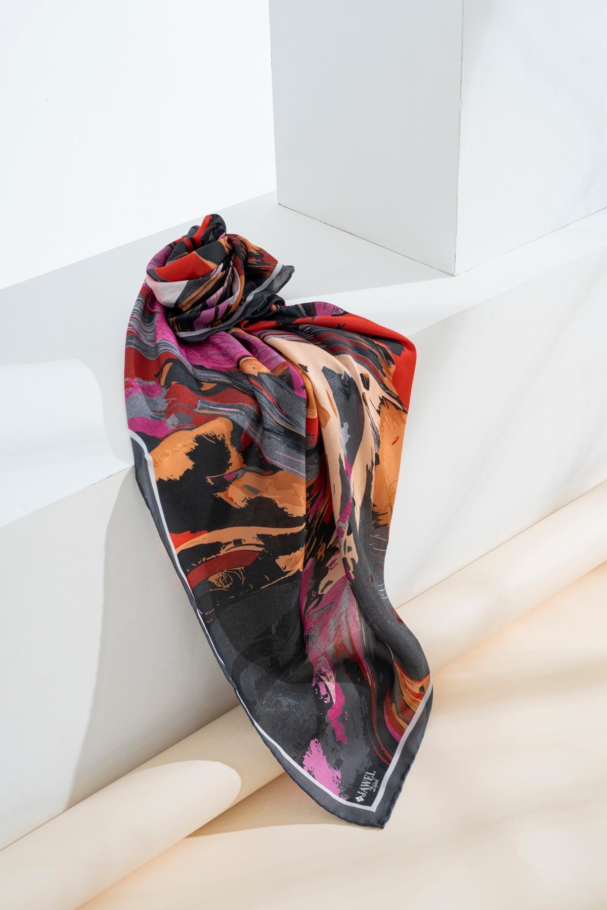 Kadın Digital Baskılı Fırça Desen Soft Eşarp 90x90 Cm SİYAH KAHVE
