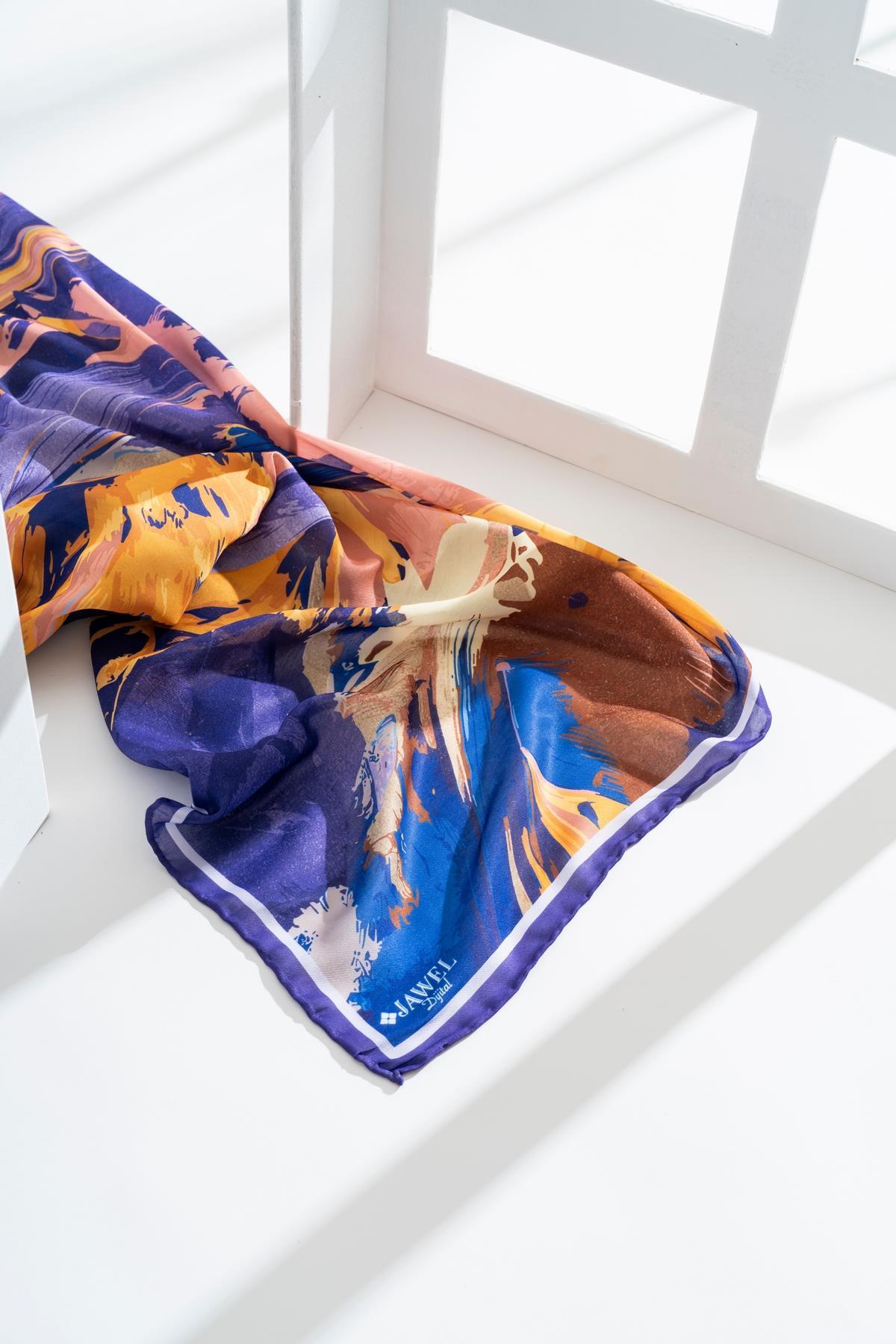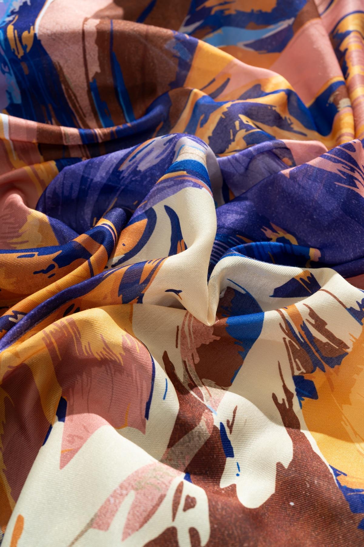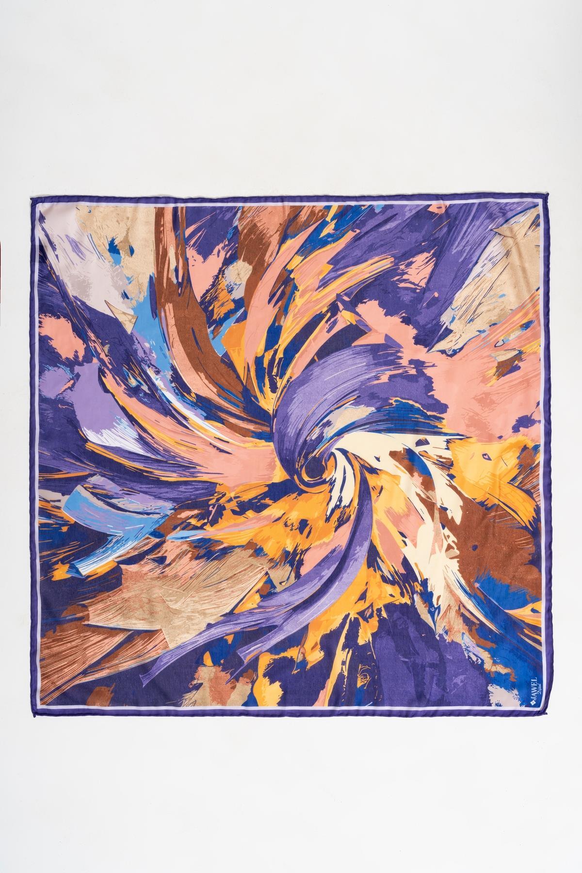 Kadın Digital Baskılı Fırça Desen Soft Eşarp 90x90 Cm MOR