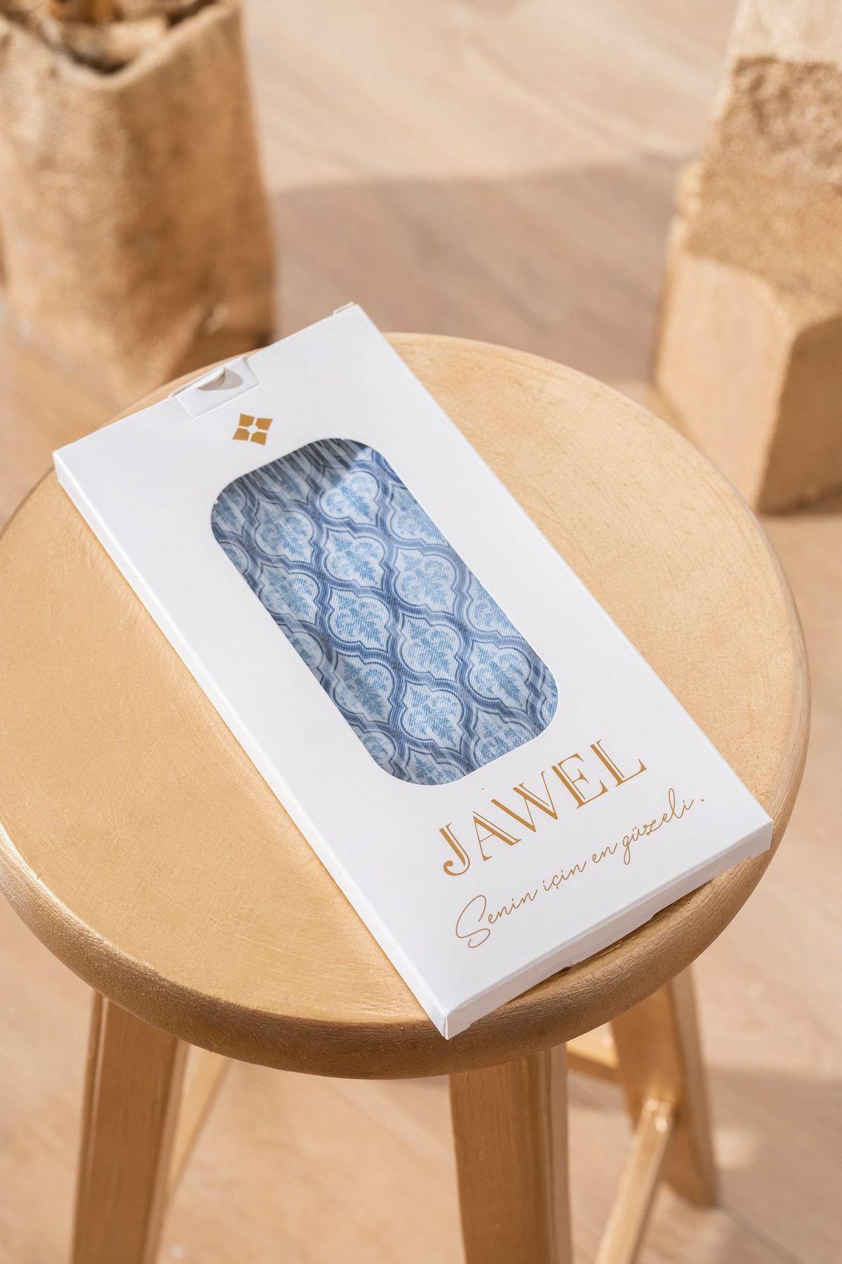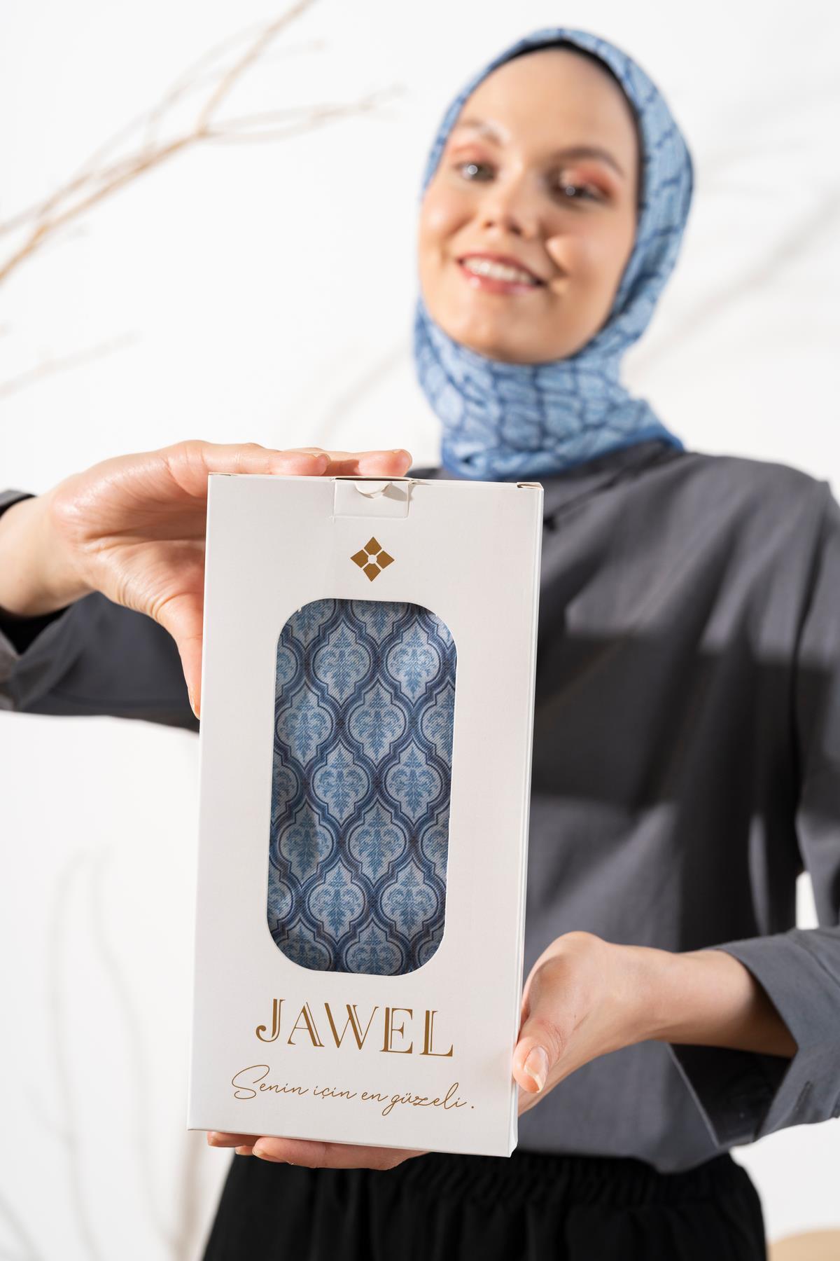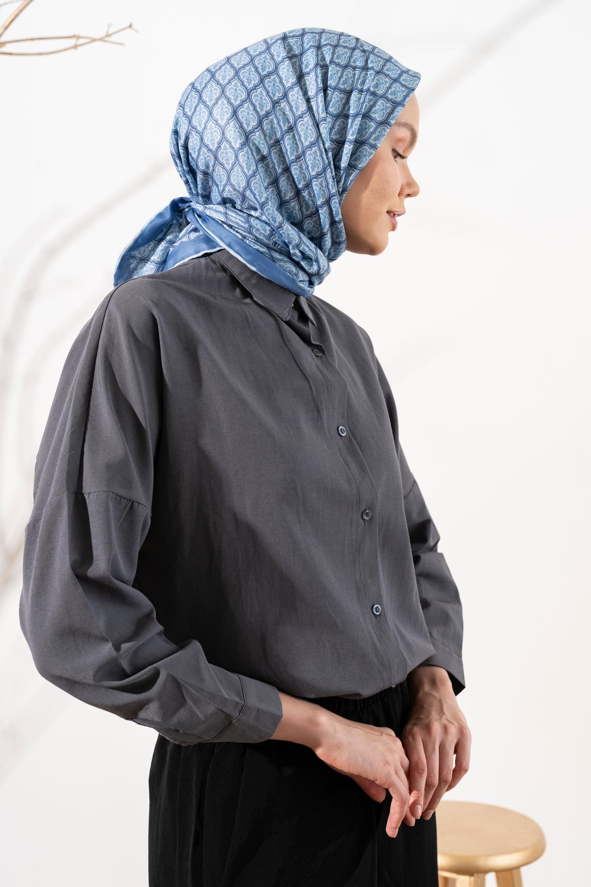 Kadın Küçük Etnik Desen Soft Eşarp BEBE MAVİ