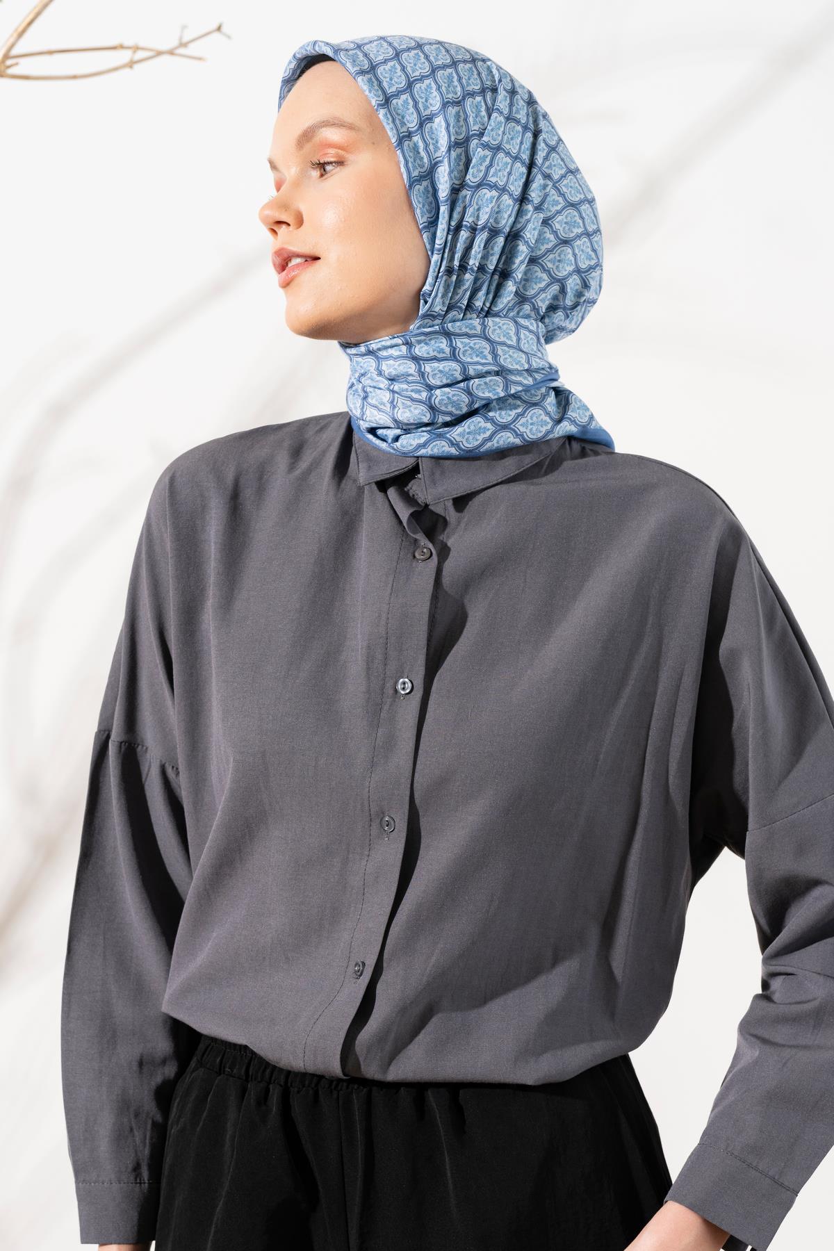 Kadın Küçük Etnik Desen Soft Eşarp KOYU İNDİGO