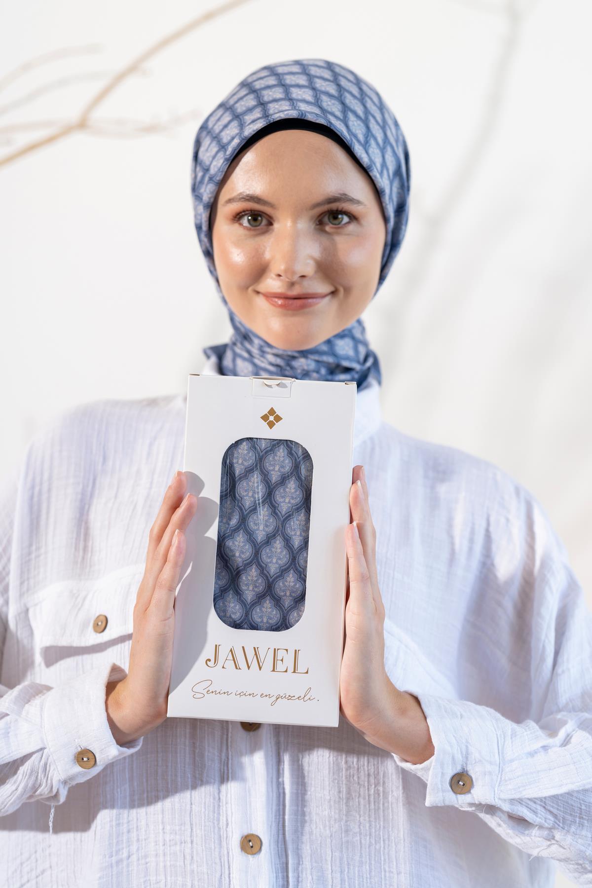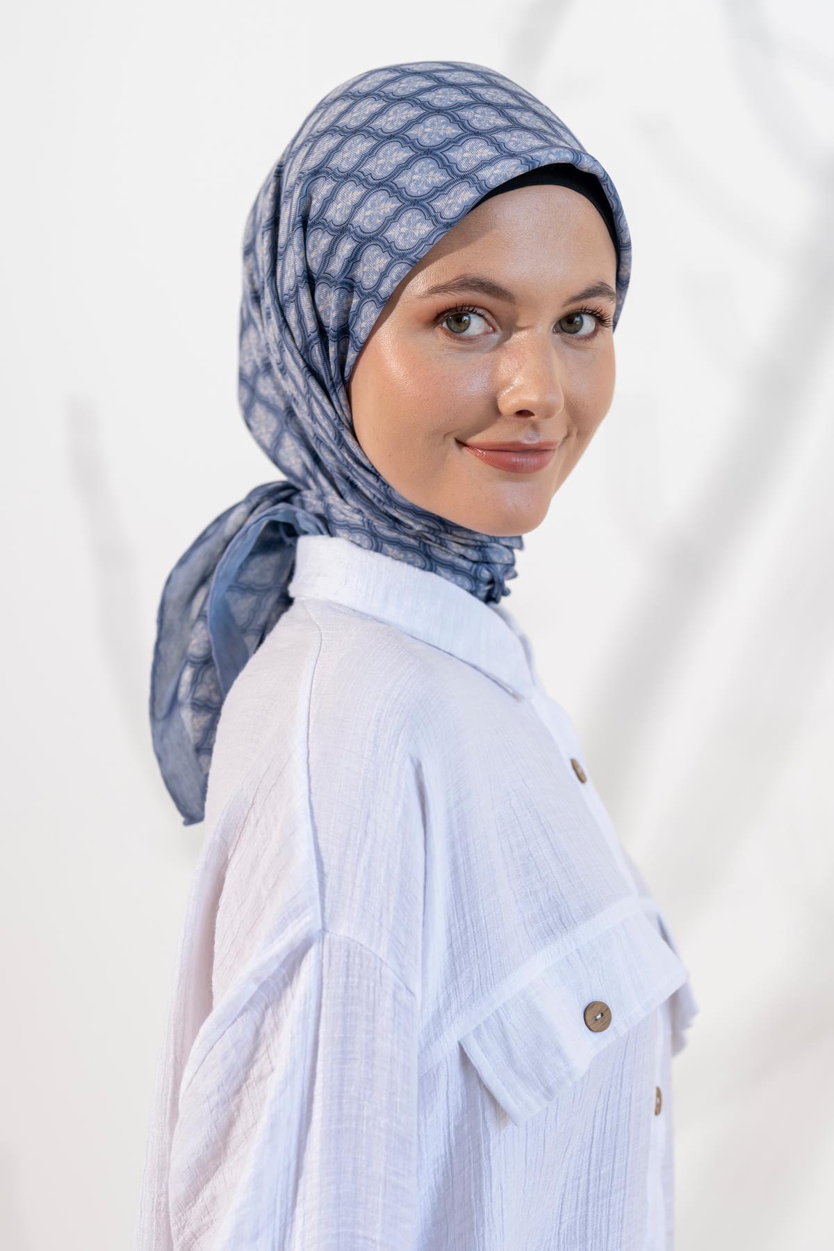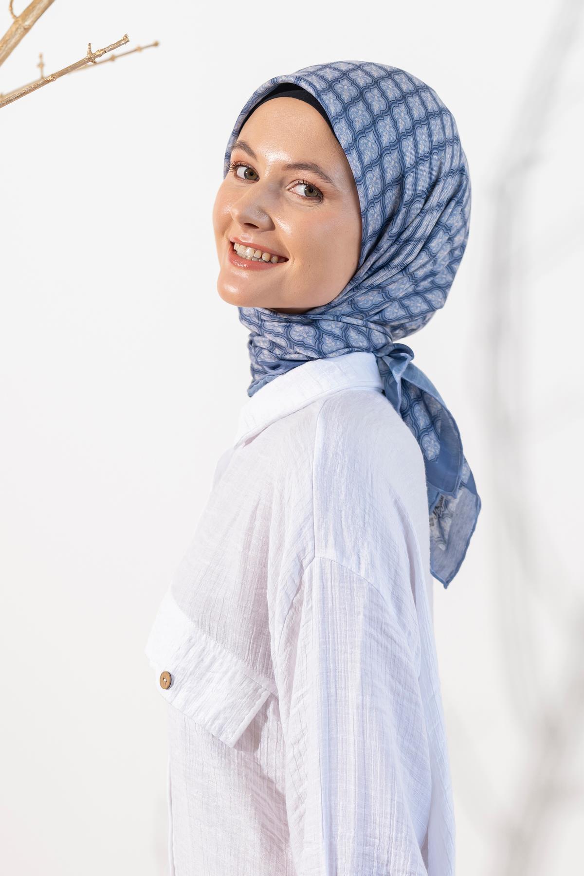 Kadın Küçük Etnik Desen Soft Eşarp KOYU İNDİGO