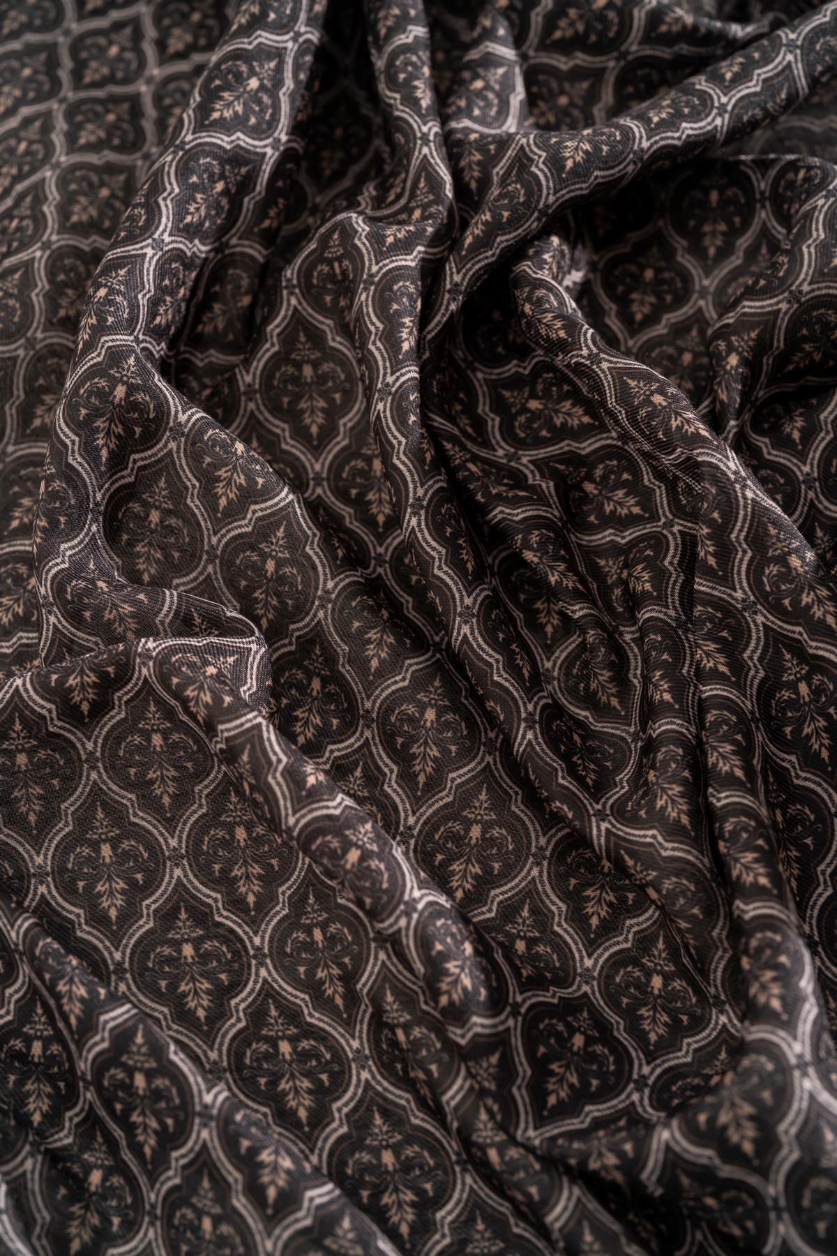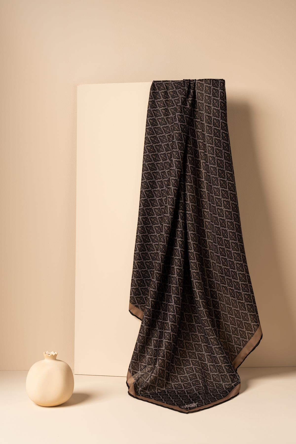 Kadın Küçük Etnik Desen Soft Eşarp SİYAH HARDAL