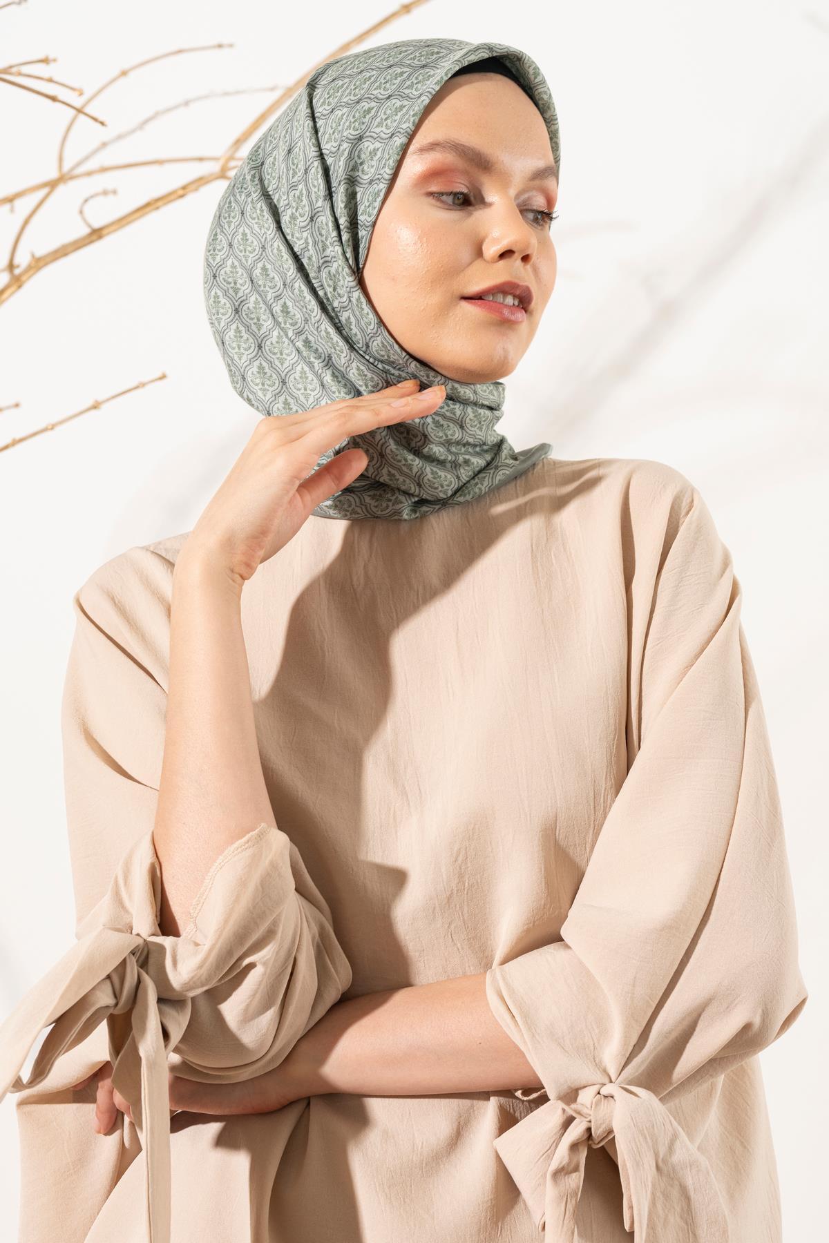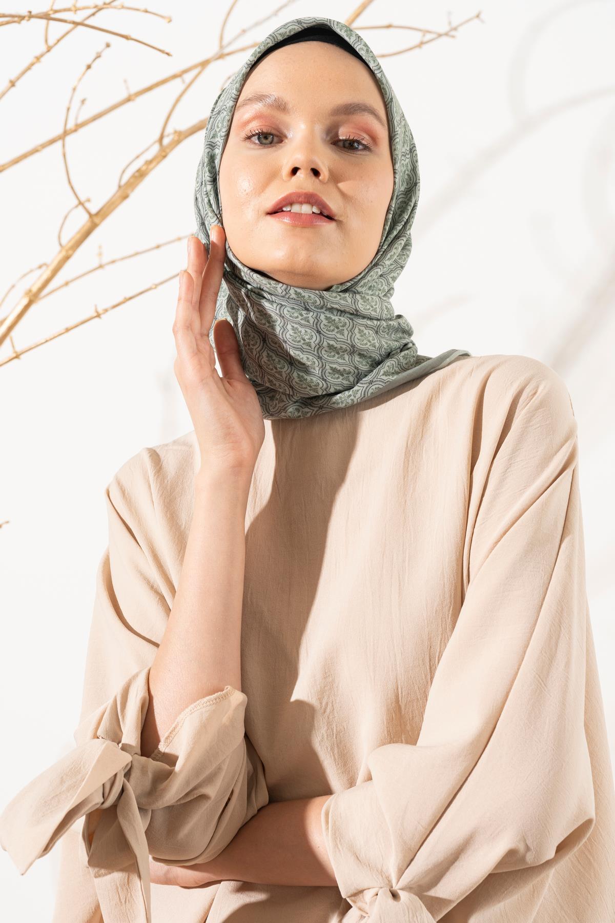 Kadın Küçük Etnik Desen Soft Eşarp SOFT YEŞİL