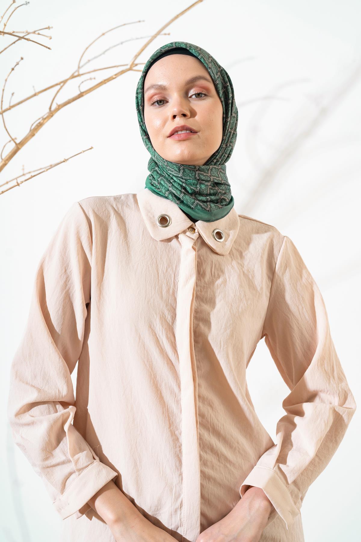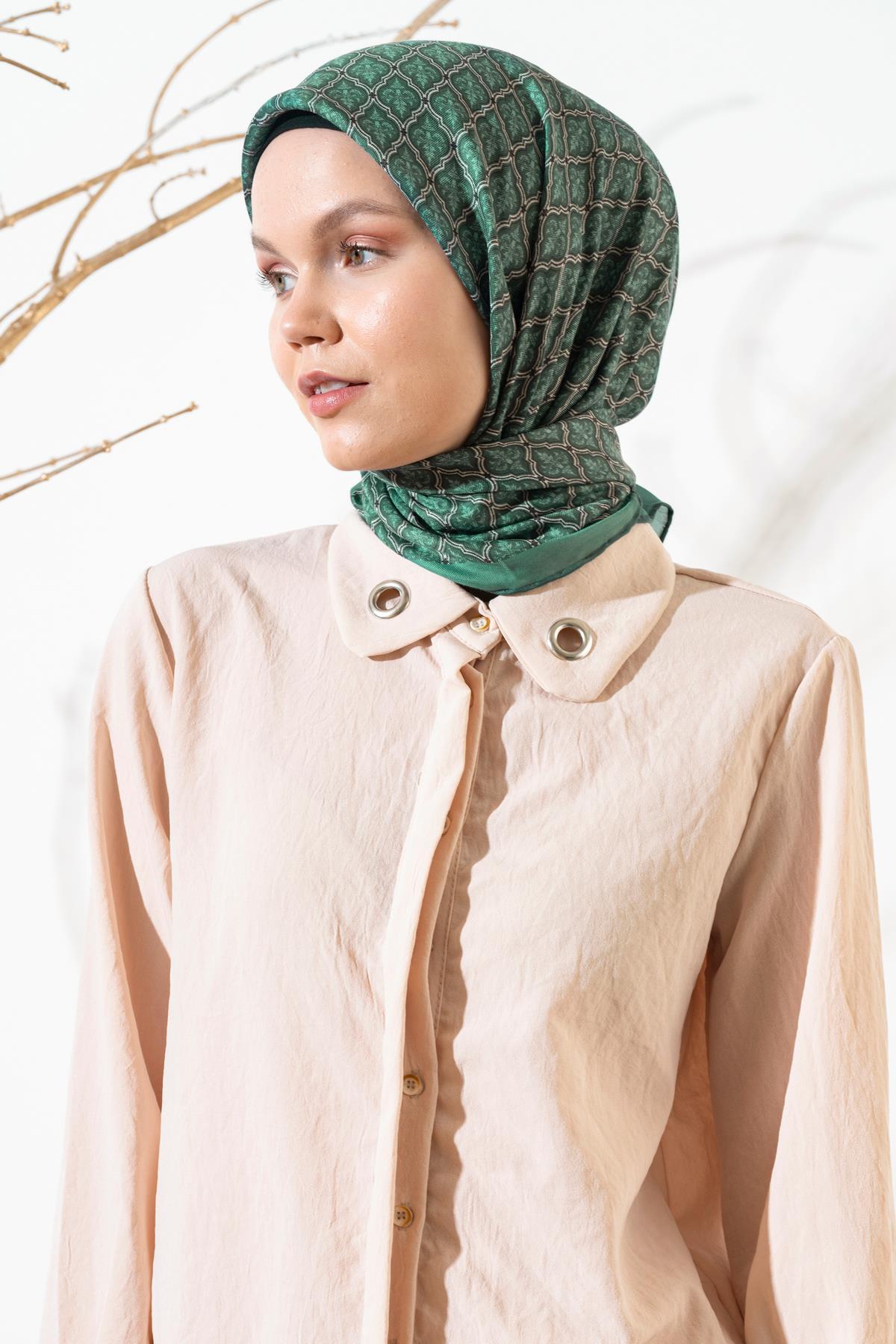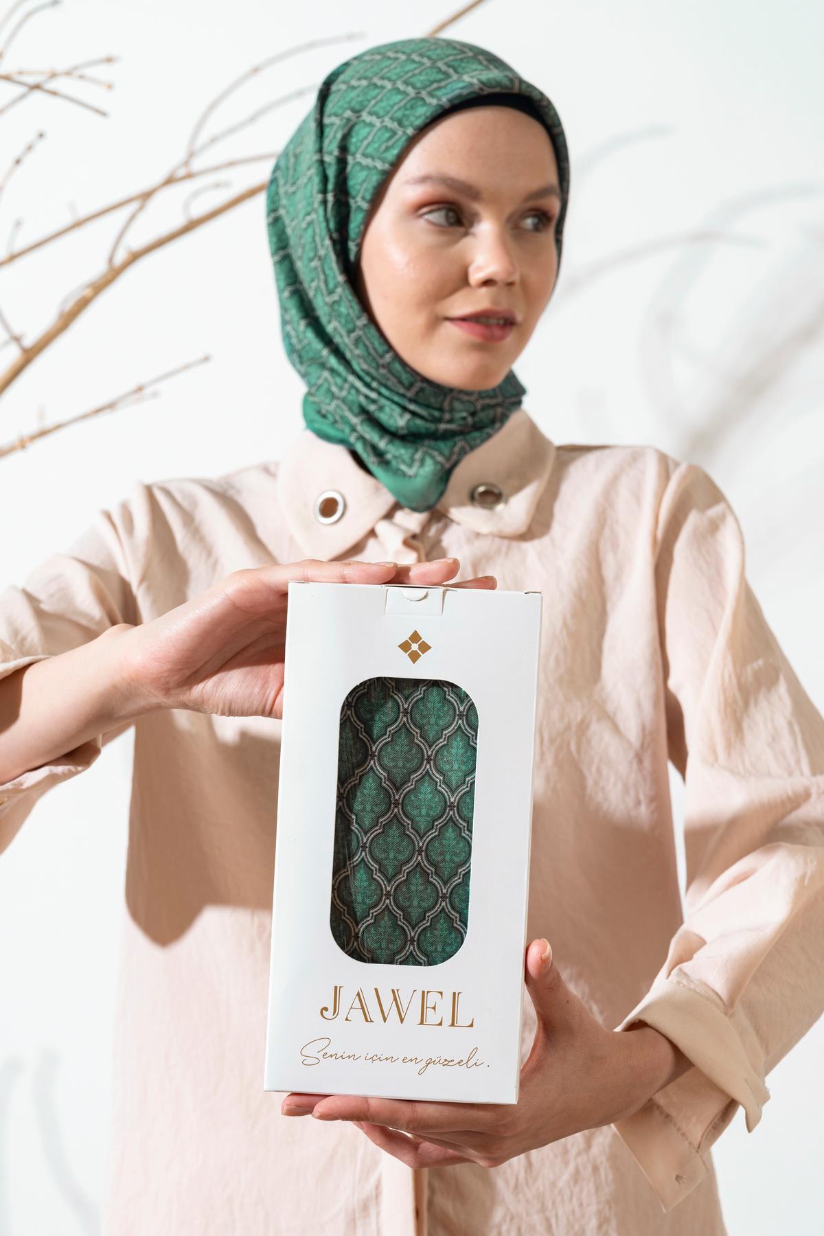 Kadın Küçük Etnik Desen Soft Eşarp ZÜMRÜT