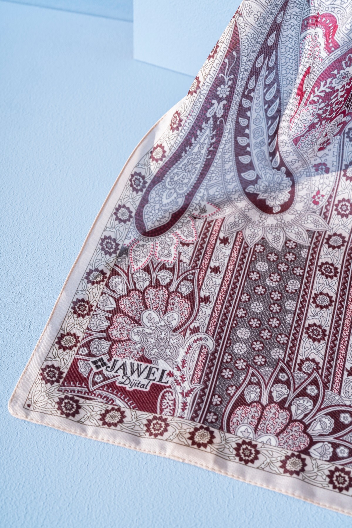 Kadın Etnik Desen Soft Şal Adessa KREM BORDO