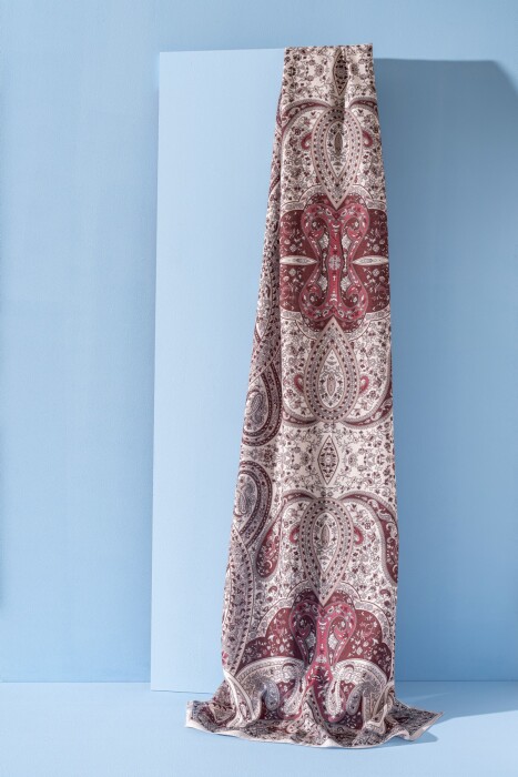 Kadın Etnik Desen Soft Şal Prusa 152.04.0003 KREM BORDO