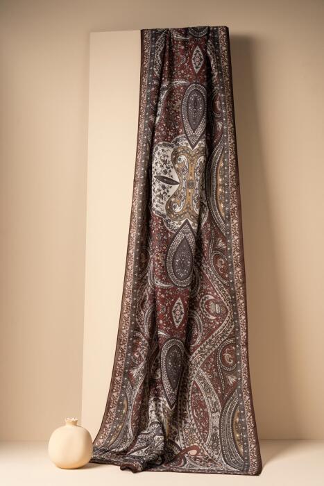 Kadın Etnik Desen Soft Şal Prusa 152.04.0003 KOYU KAHVE