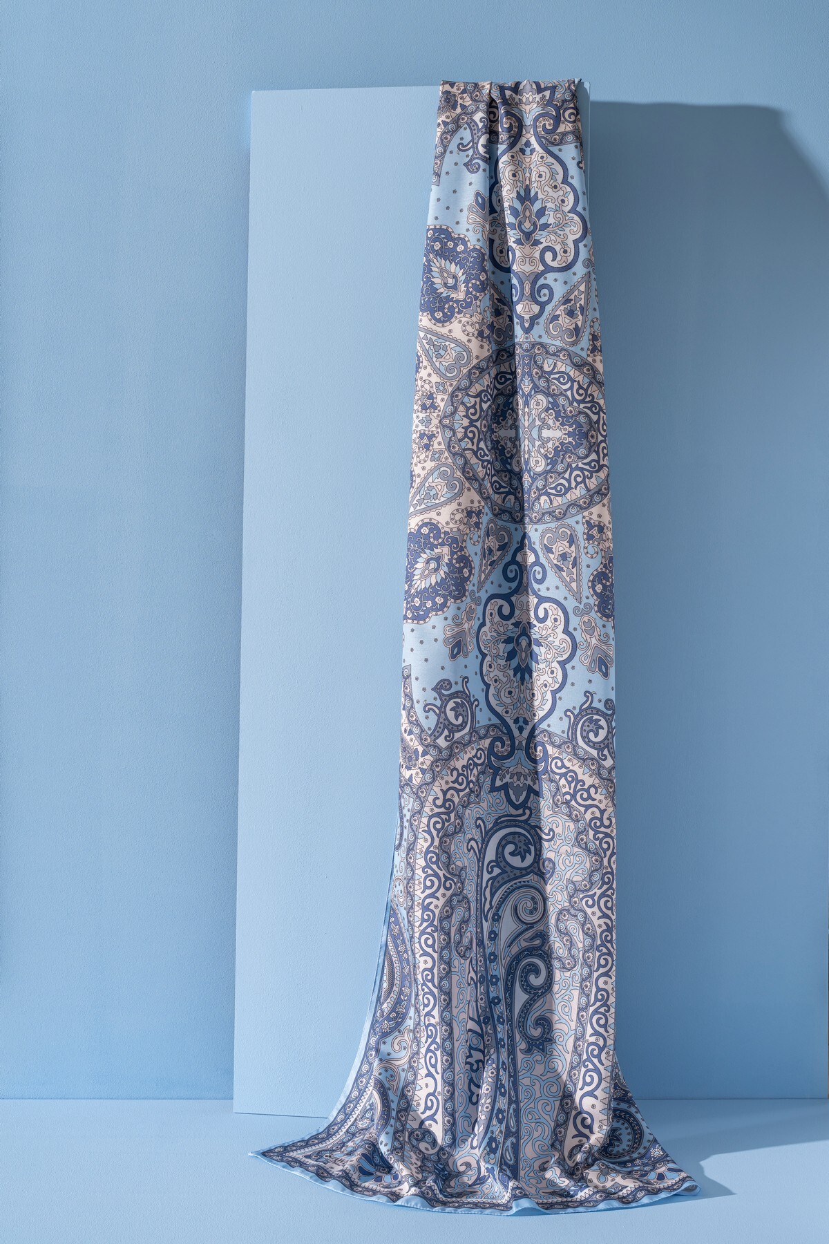 Kadın Etnik Desen Soft Tlos Şal BEBE MAVİ