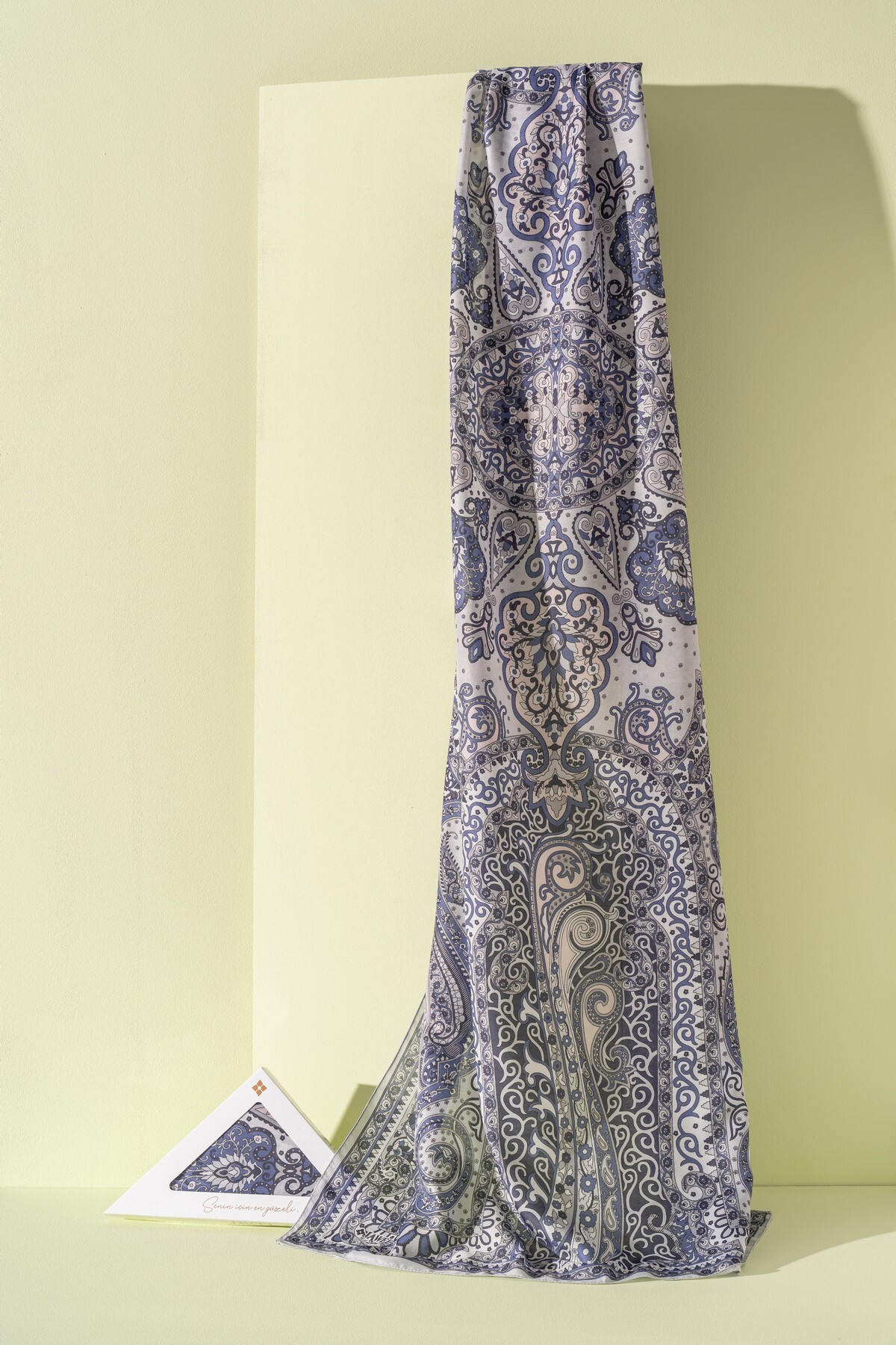 Jawel Kadın Etnik Desen Soft Tlos Şal BEBE MAVİ