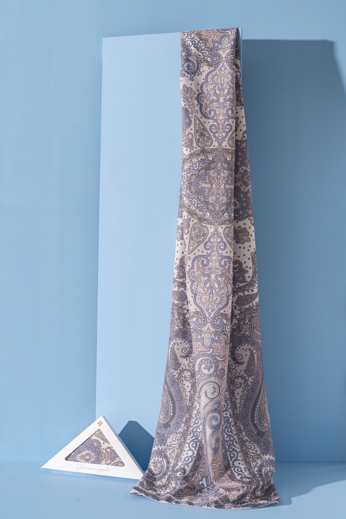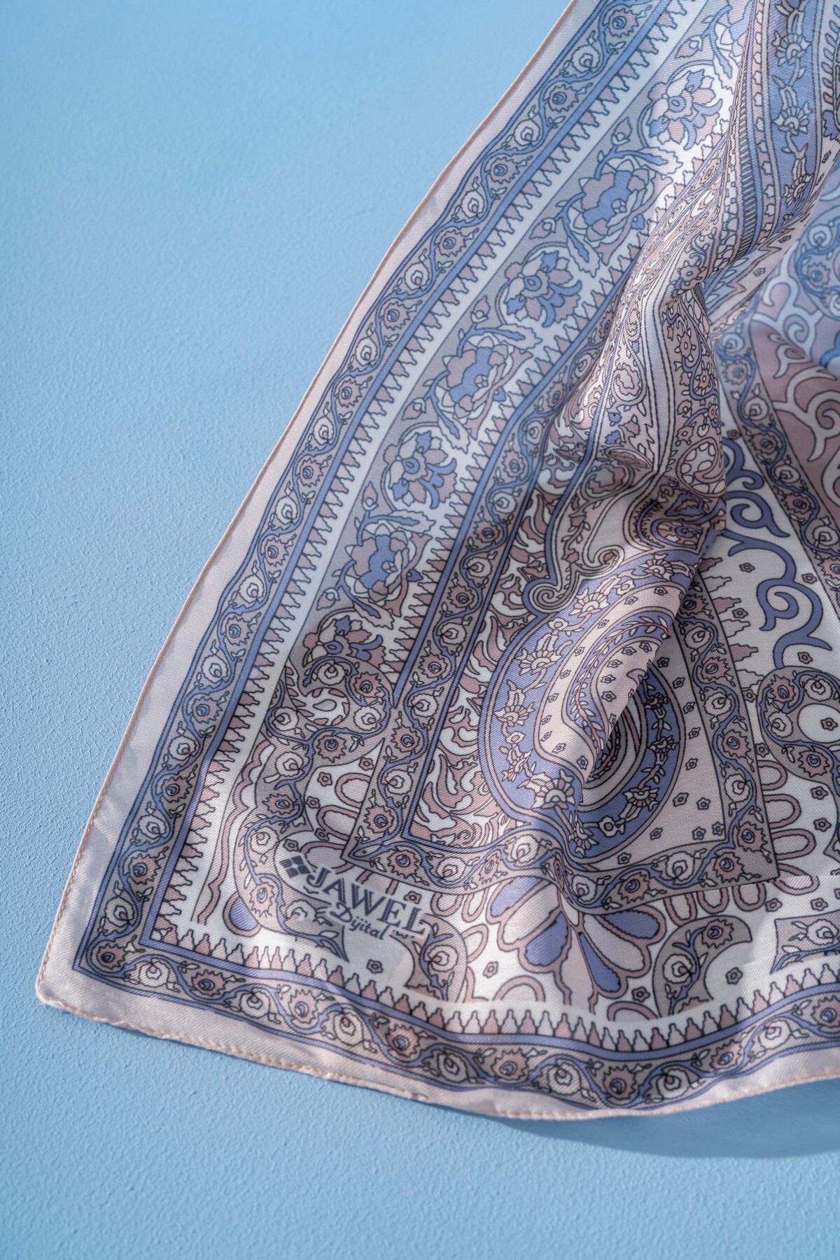 Jawel Kadın Etnik Desen Soft Tlos Şal BEBE MAVİ