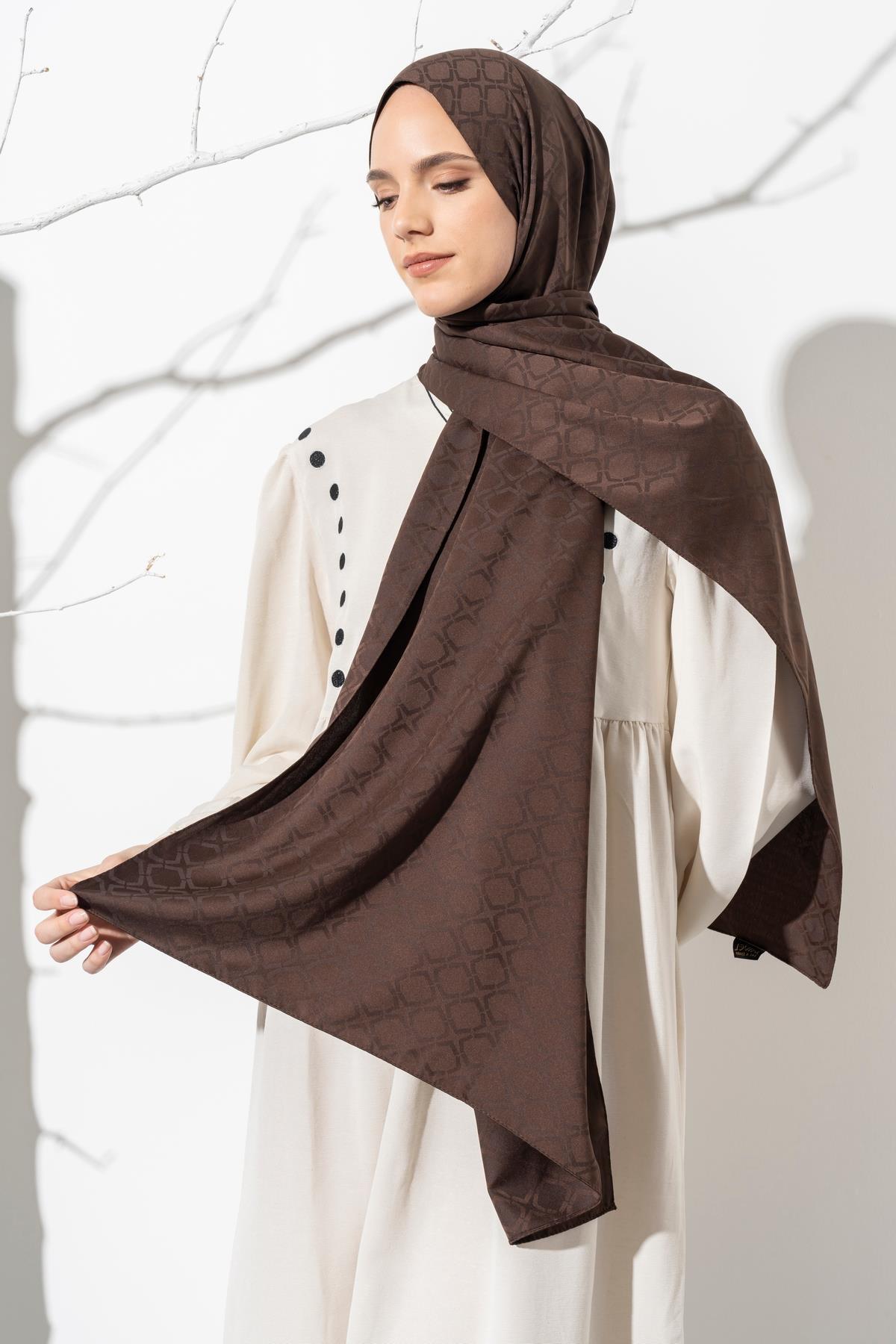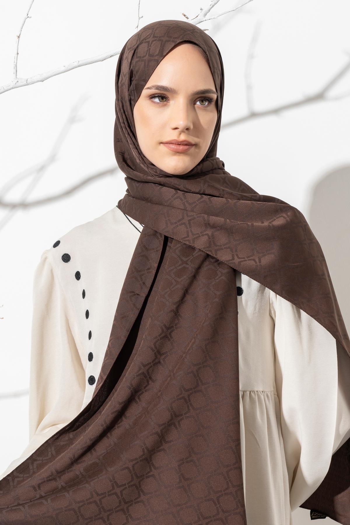 Kadın Geometrik Desen Jakarlı Şal KOYU VİZON