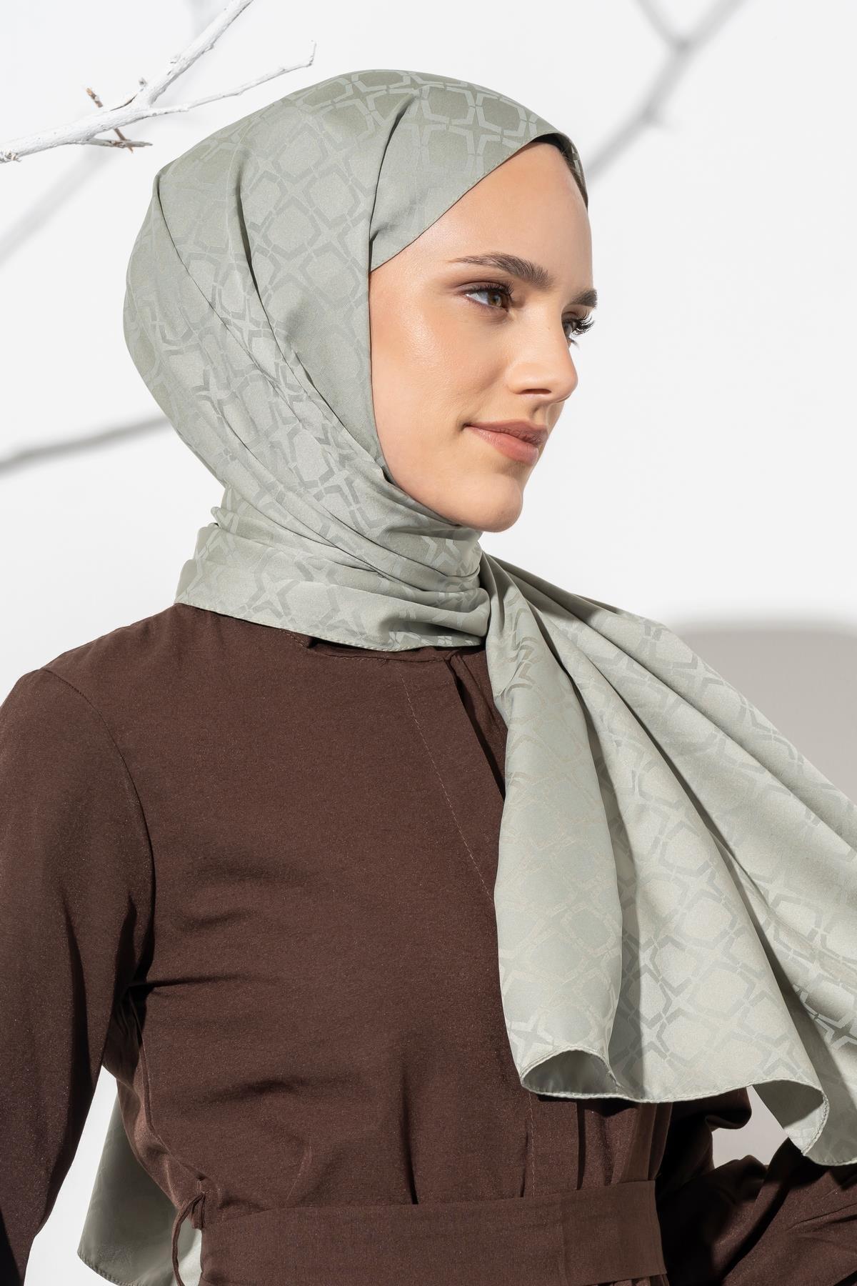 Kadın Geometrik Desen Jakarlı Şal YAĞ YEŞİLİ