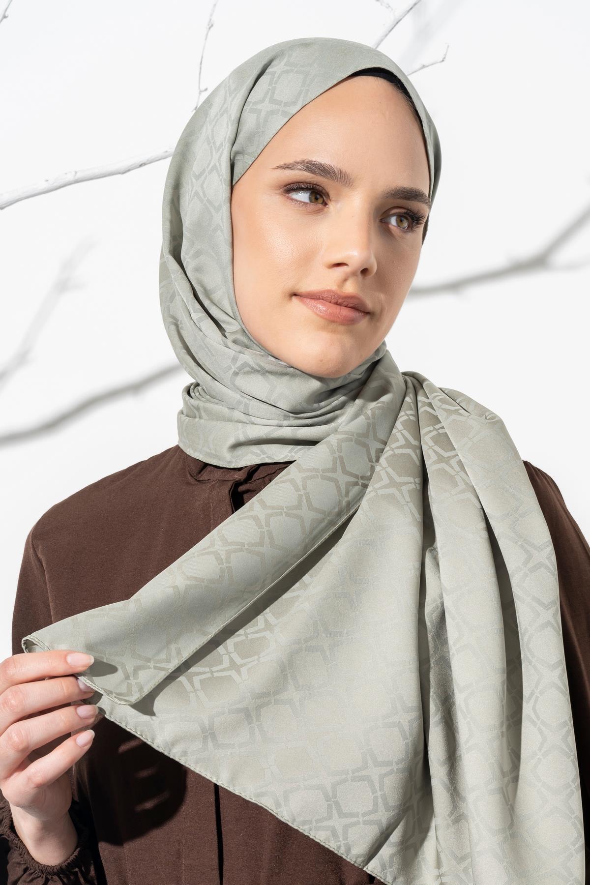 Kadın Geometrik Desen Jakarlı Şal AÇIK HAKİ