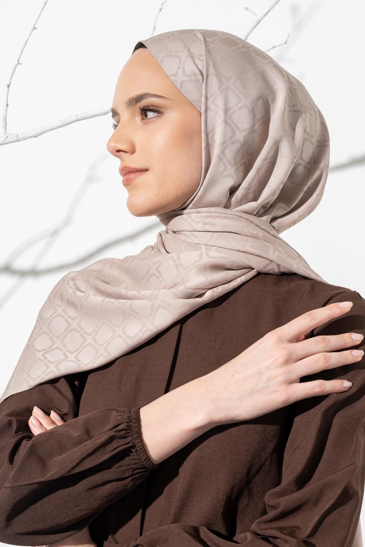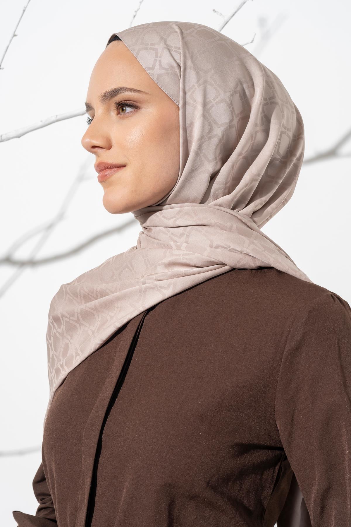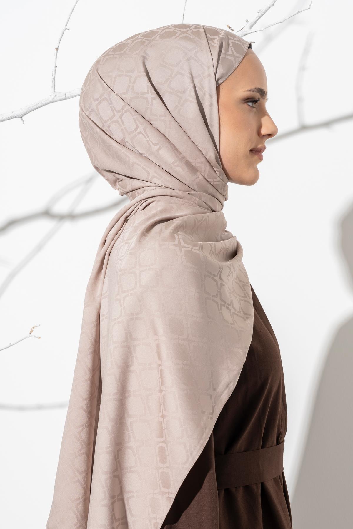 Kadın Geometrik Desen Jakarlı Şal AÇIK VİZON