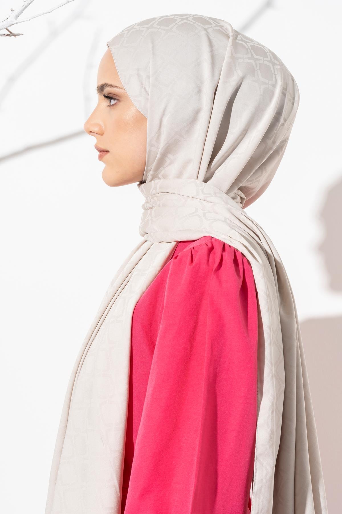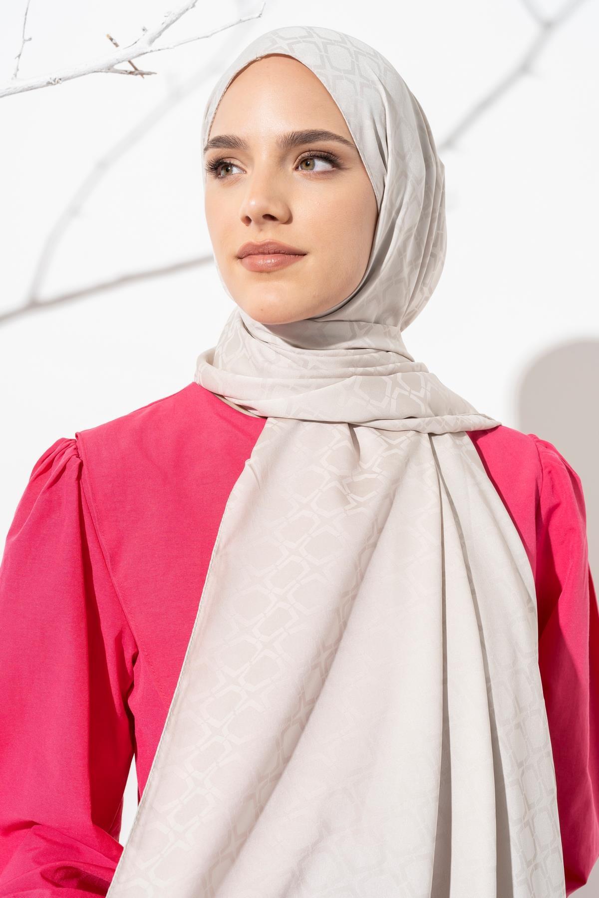 Kadın Geometrik Desen Jakarlı Şal AÇIK GRİ