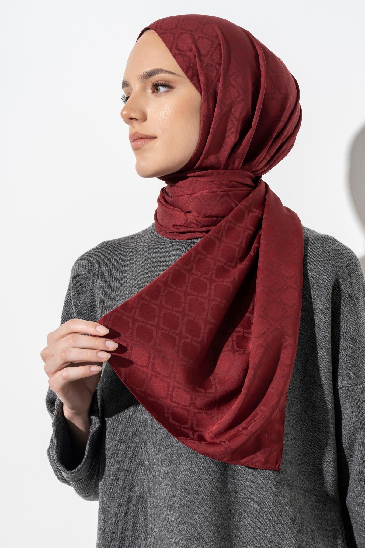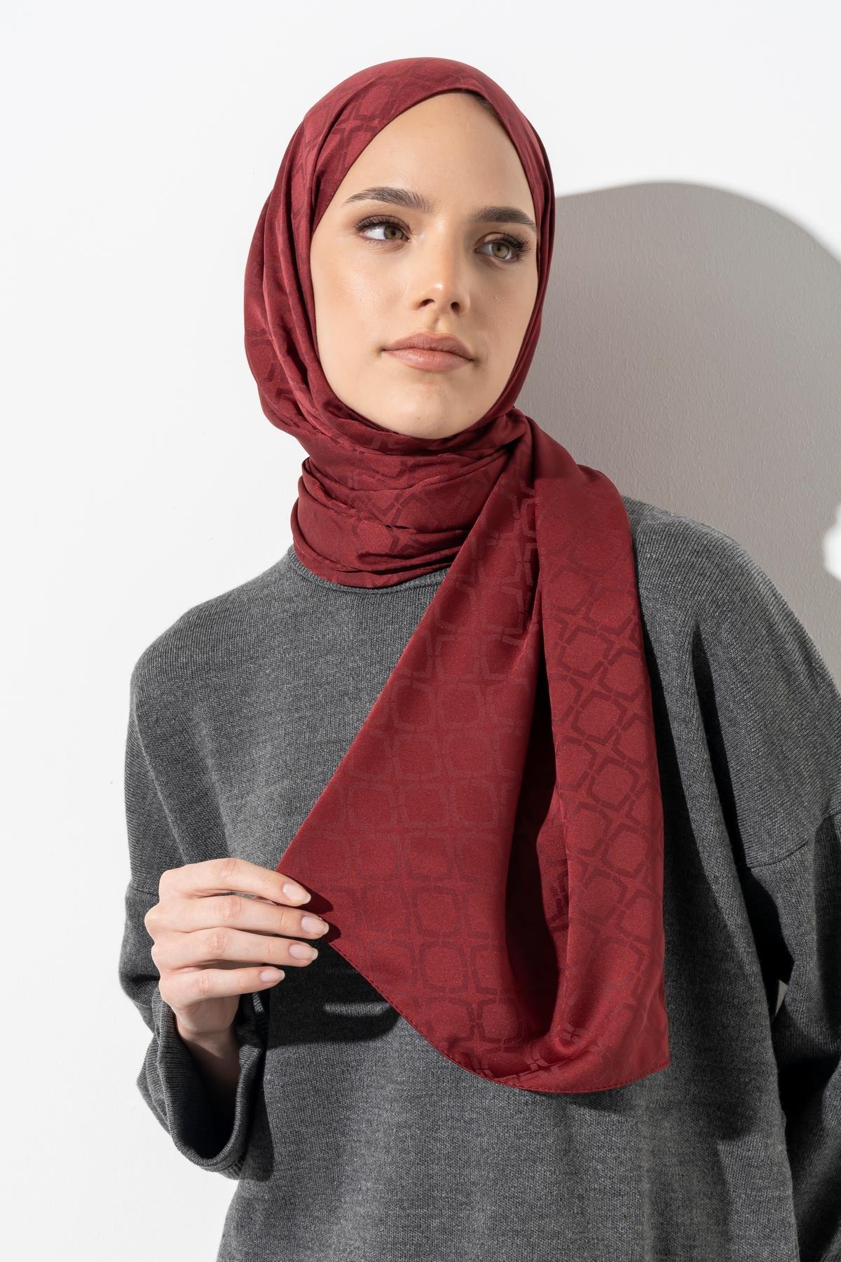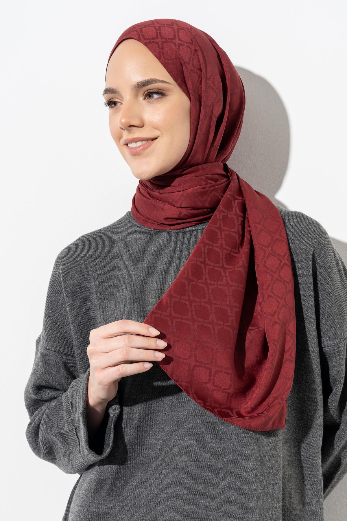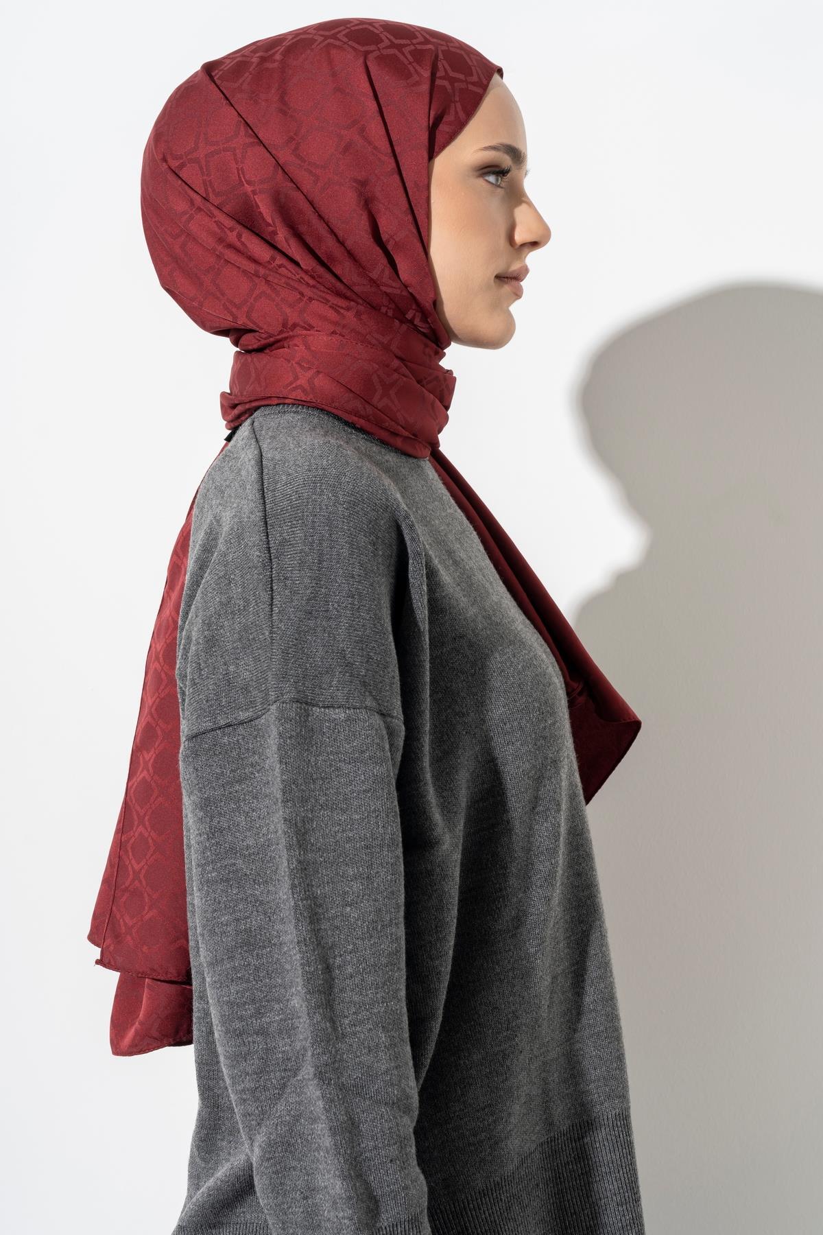 Kadın Geometrik Desen Jakarlı Şal BORDO