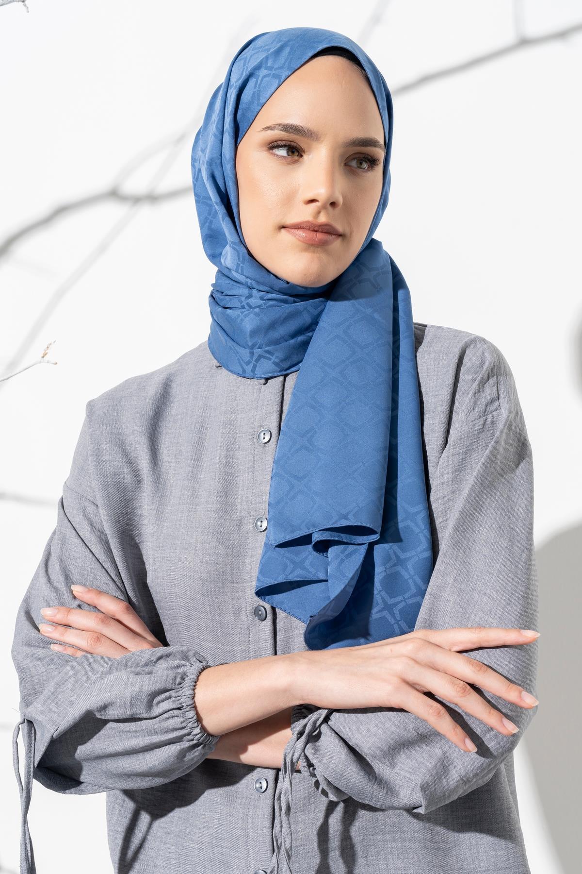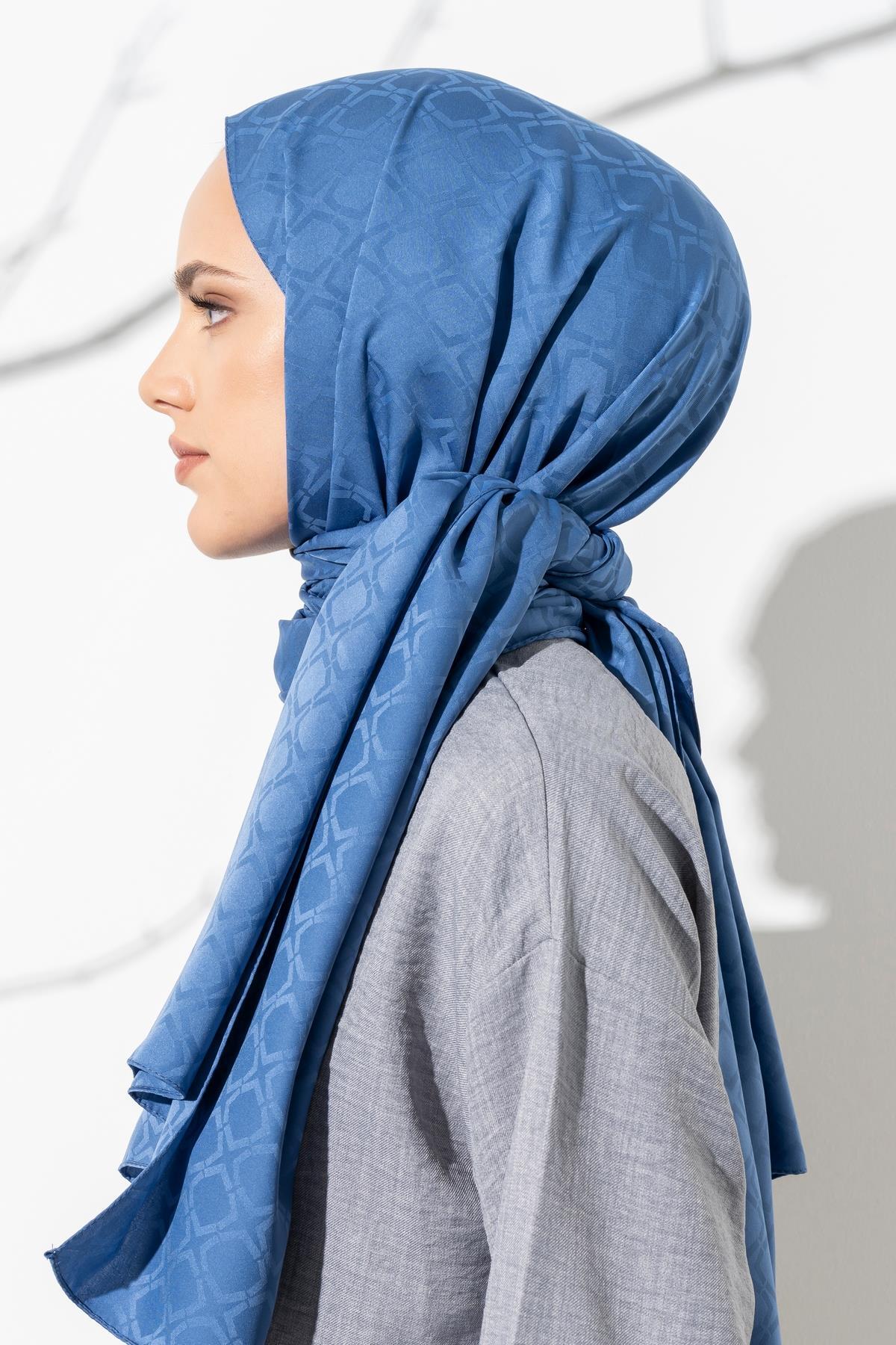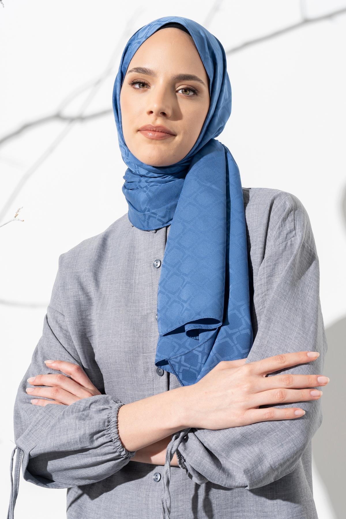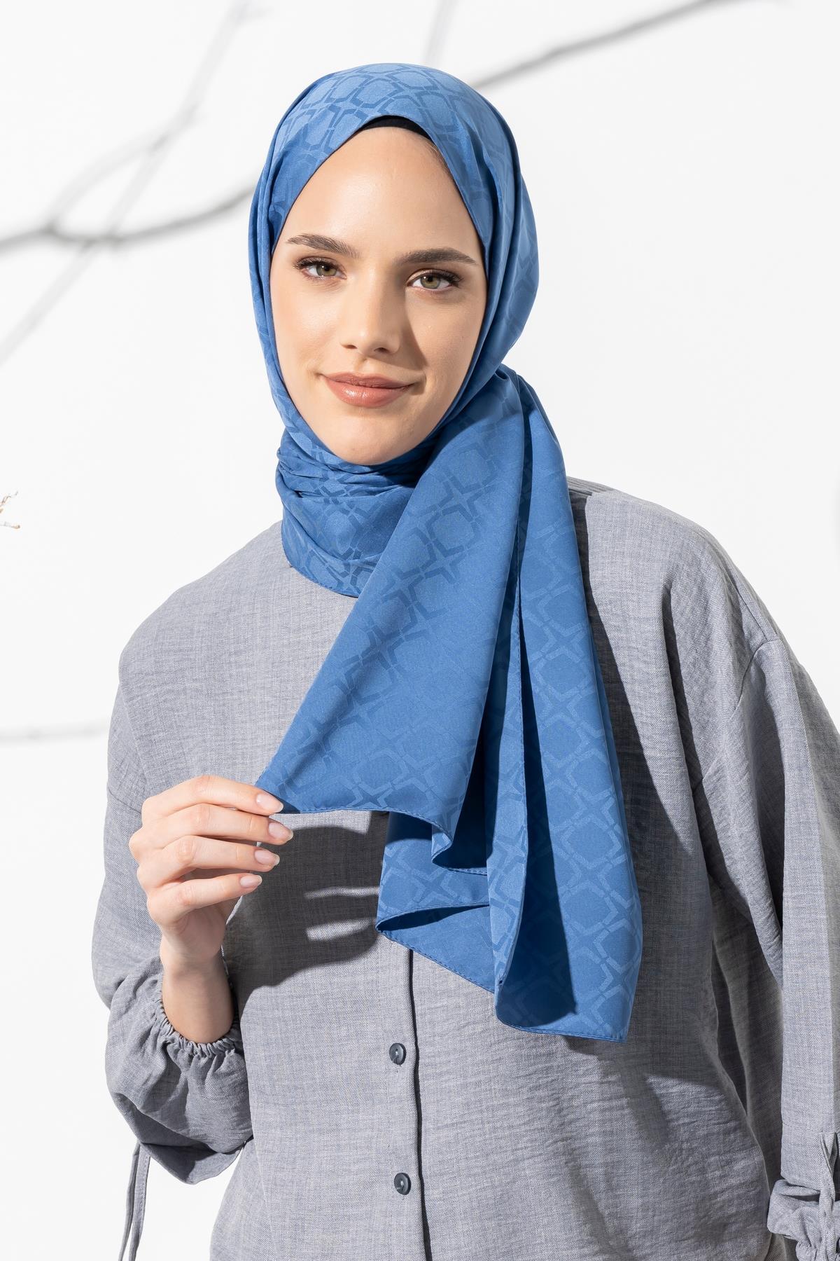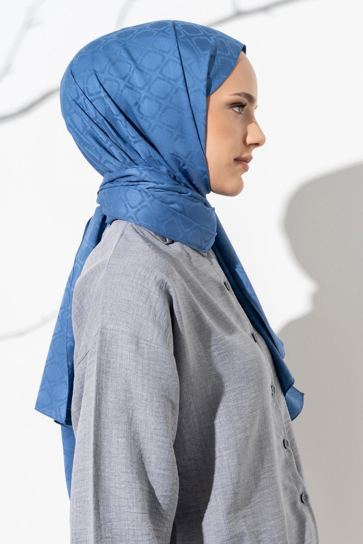 Kadın Geometrik Desen Jakarlı Şal İNDİGO