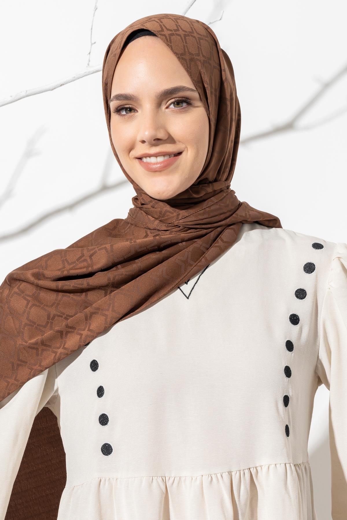Kadın Geometrik Desen Jakarlı Şal KAHVE