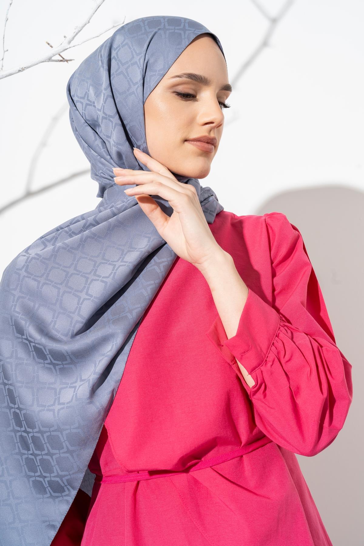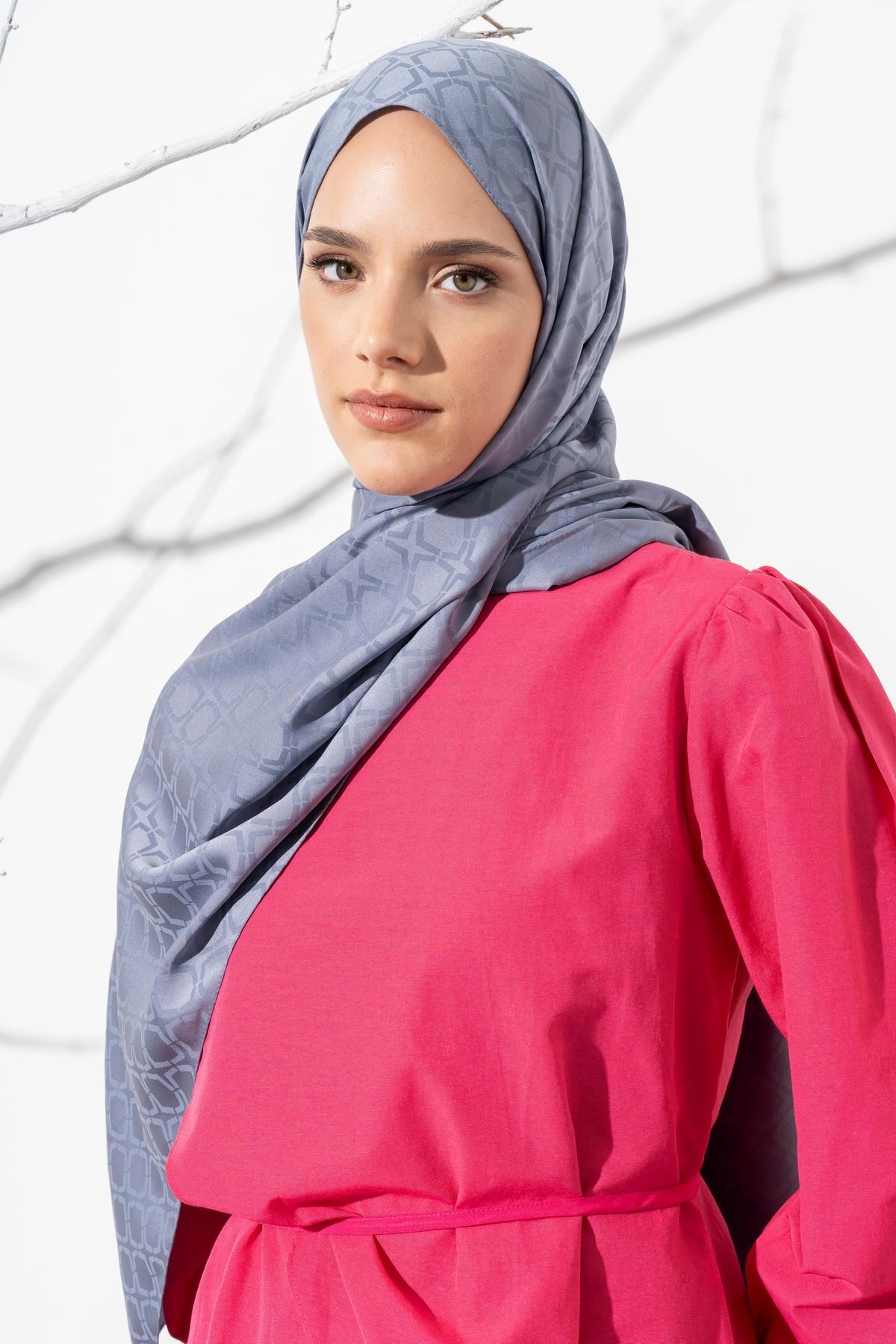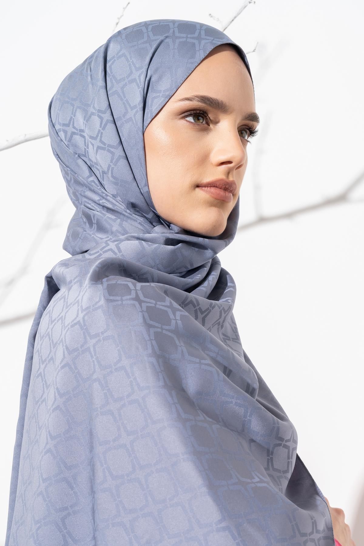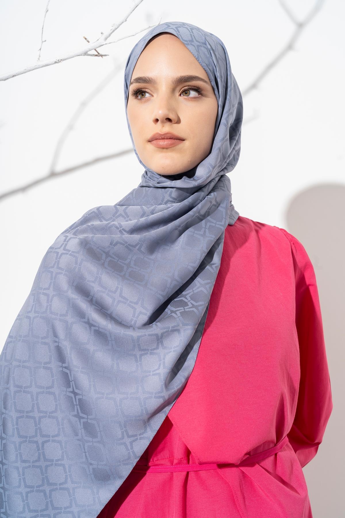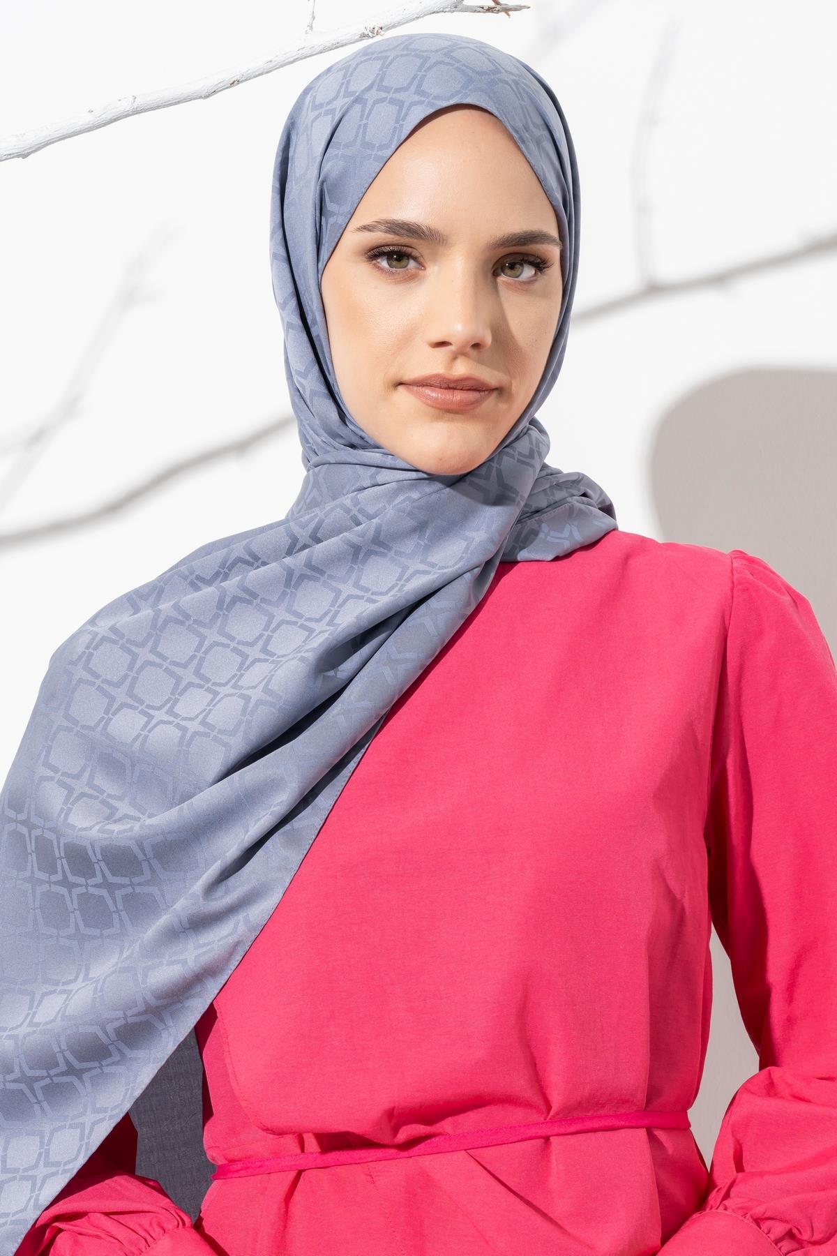 Kadın Geometrik Desen Jakarlı Şal AÇIK GRİ