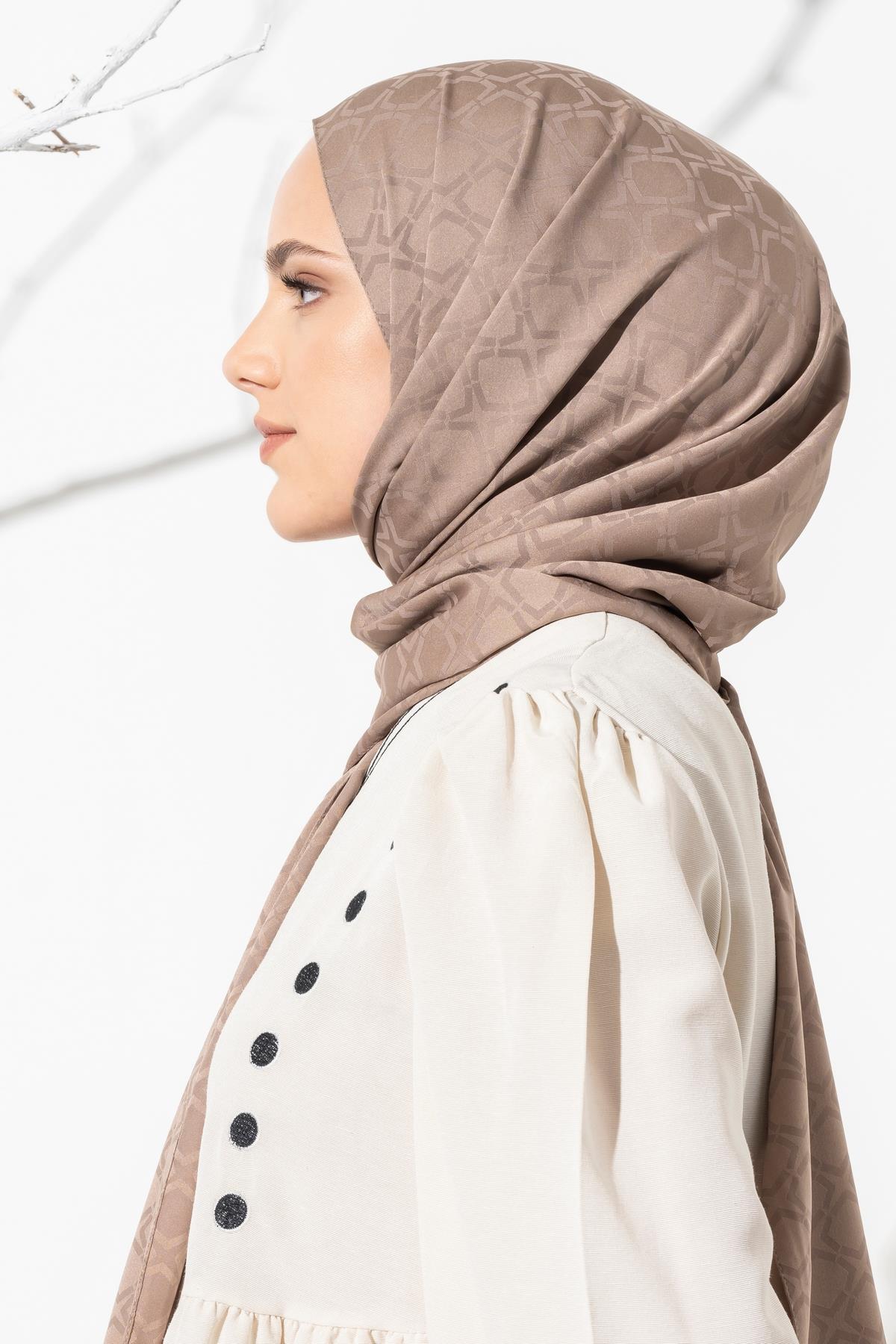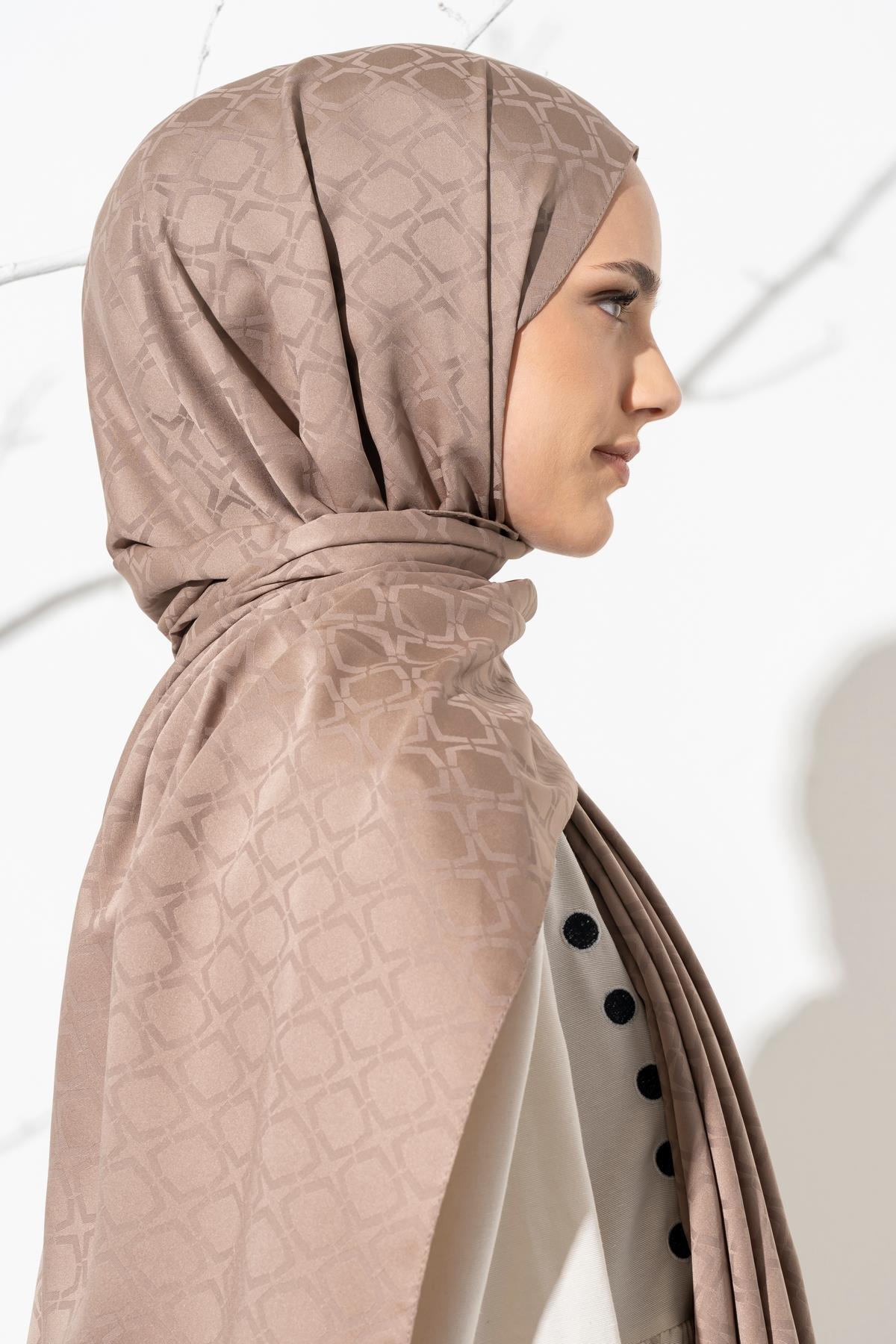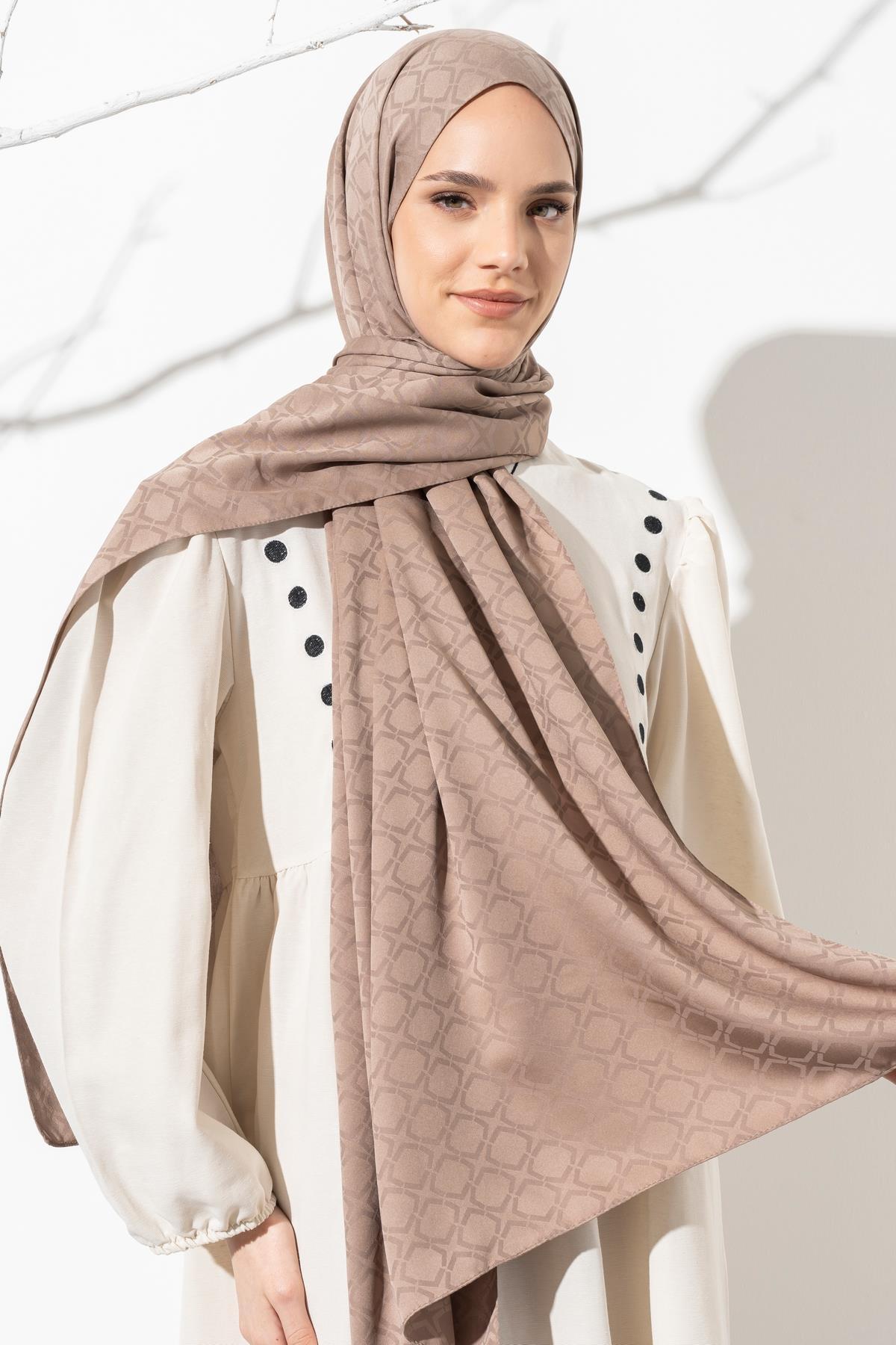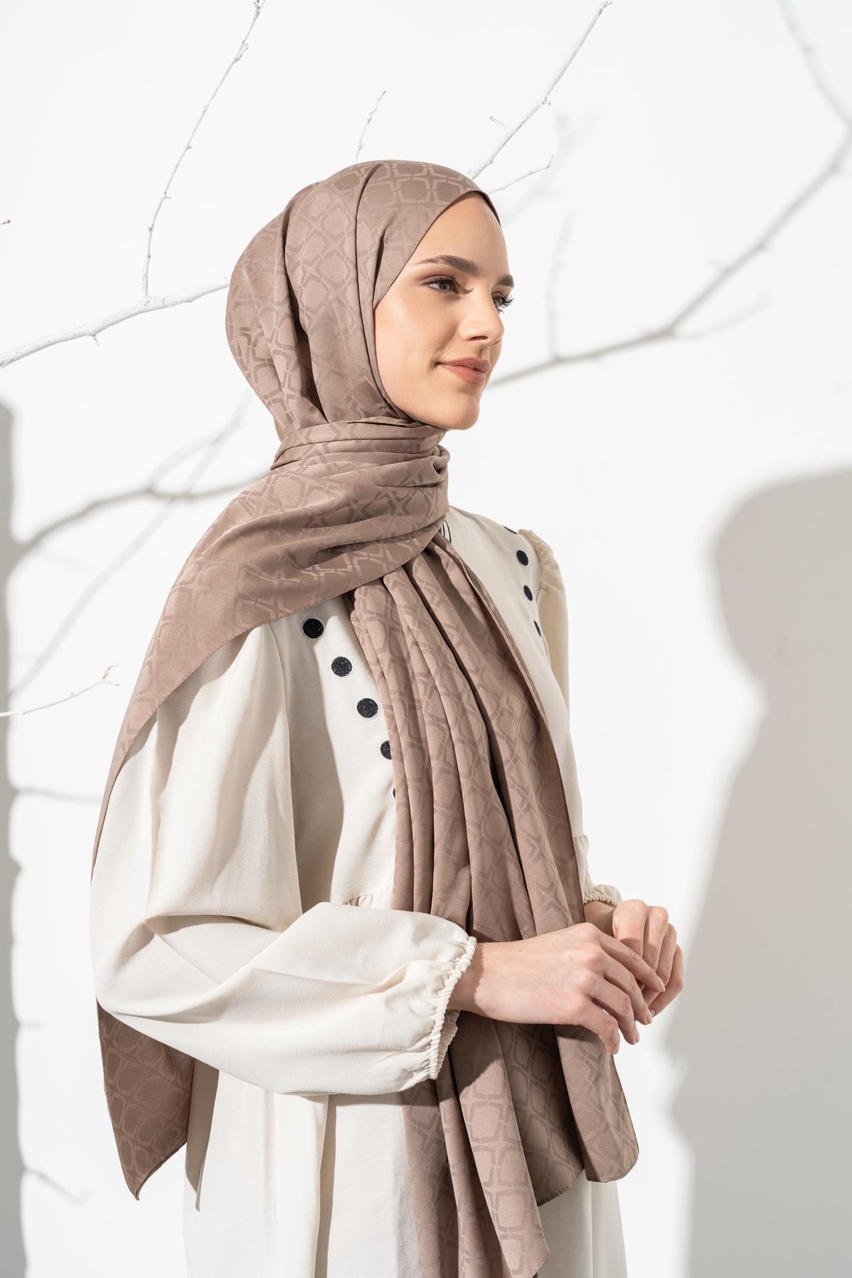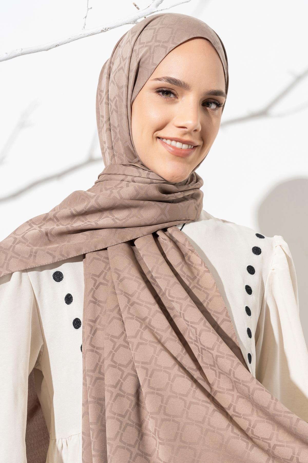 Kadın Geometrik Desen Jakarlı Şal VİZON