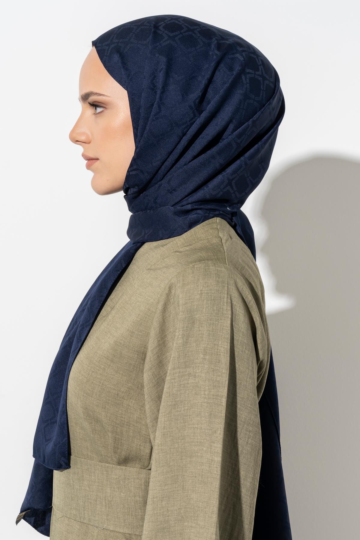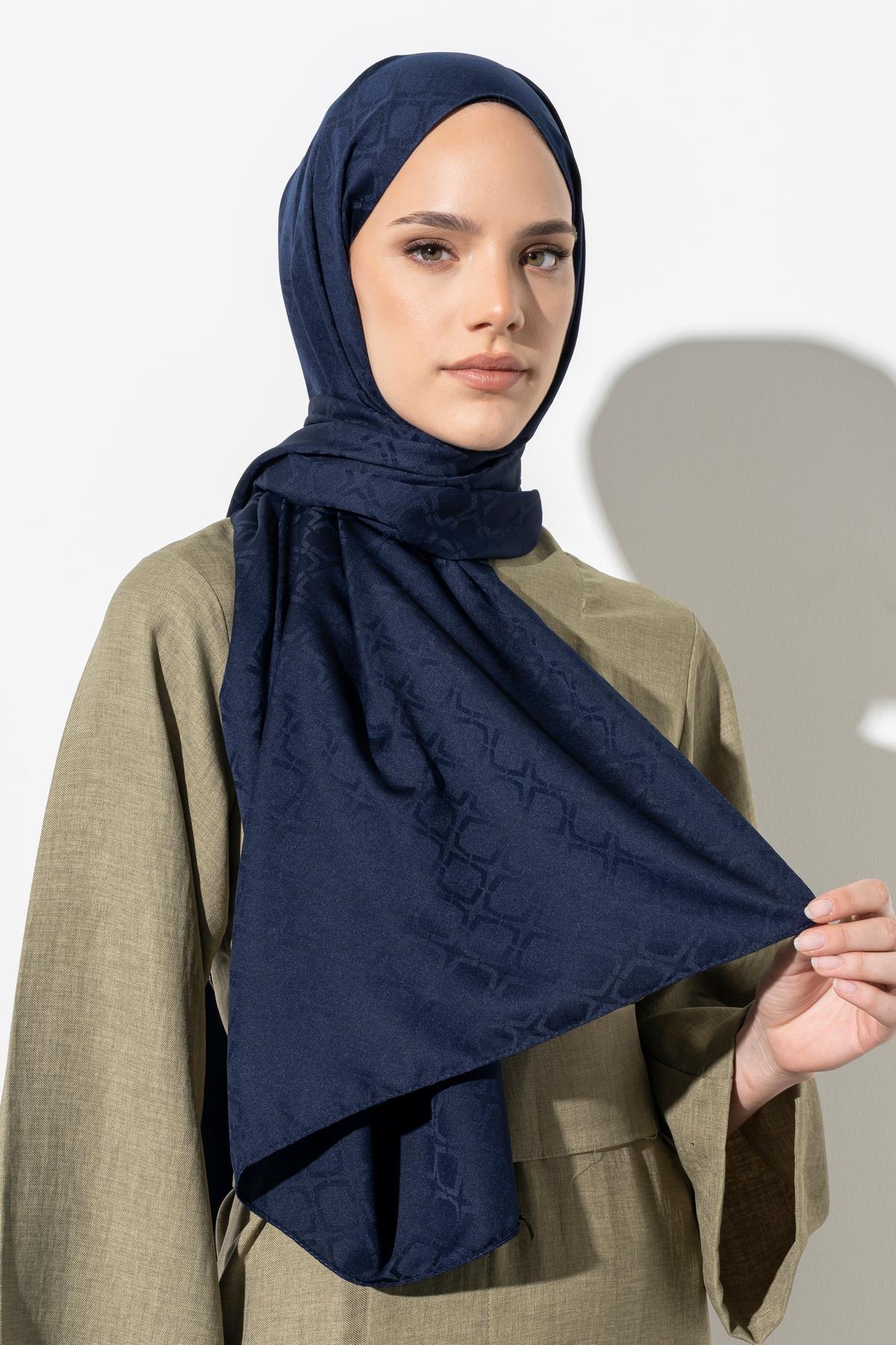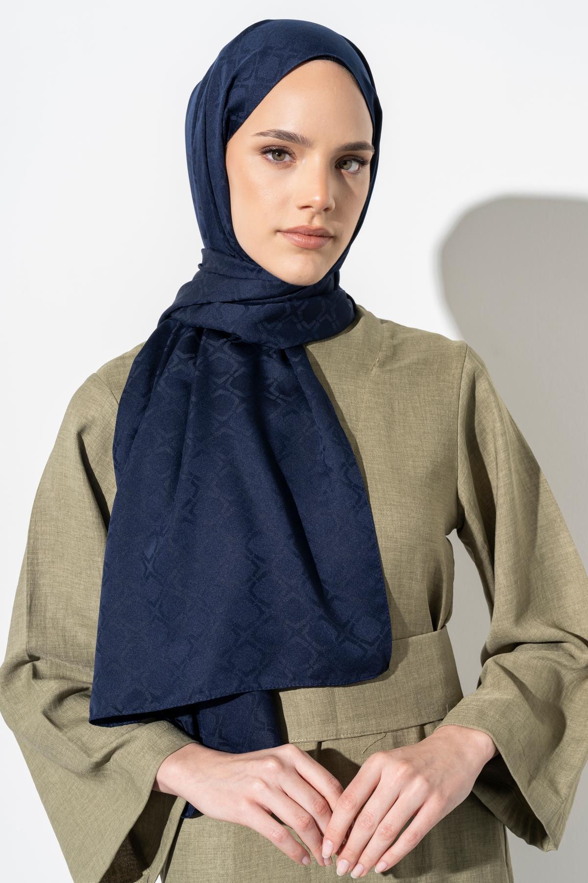 Kadın Geometrik Desen Jakarlı Şal LACİVERT